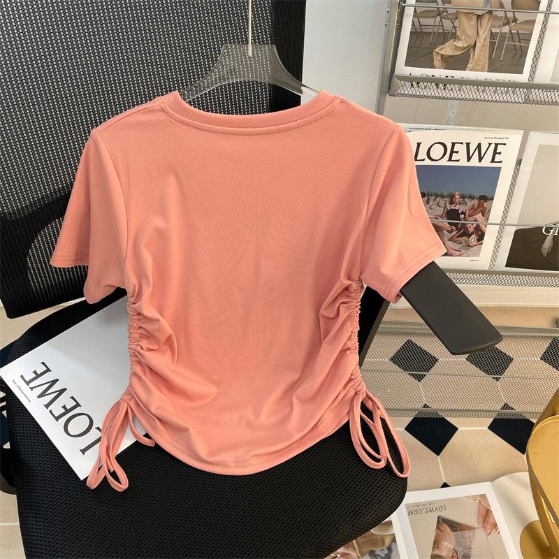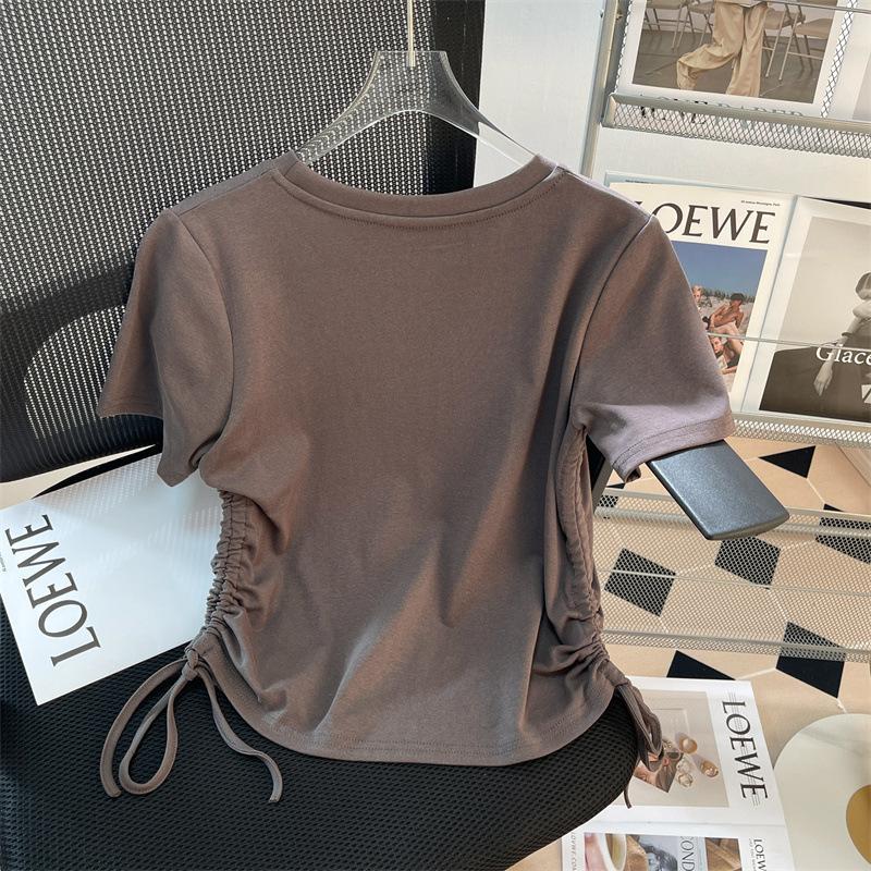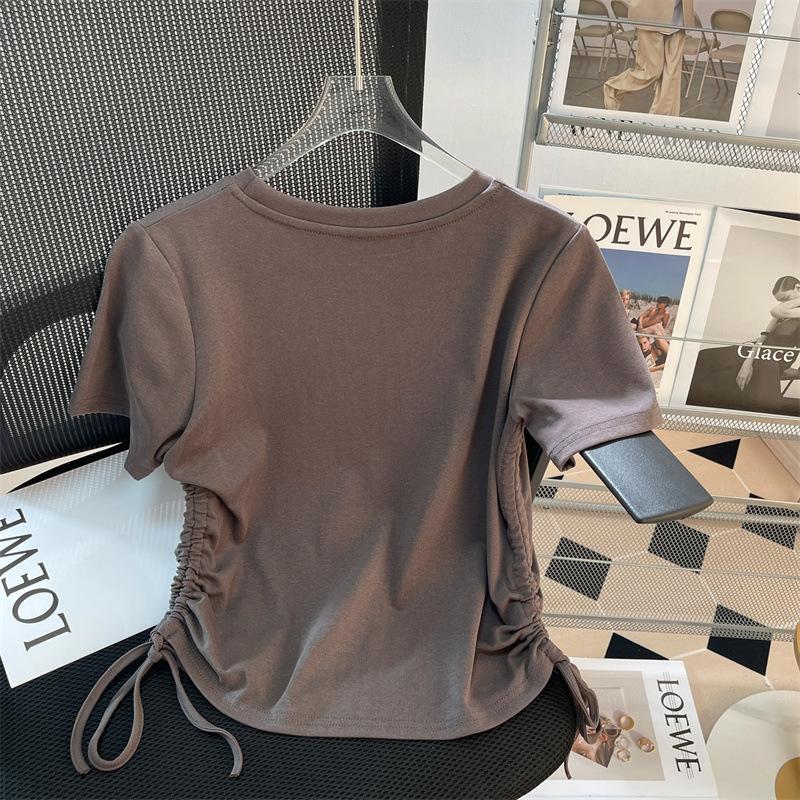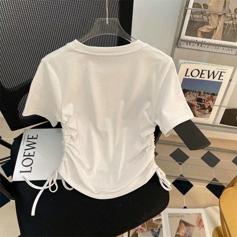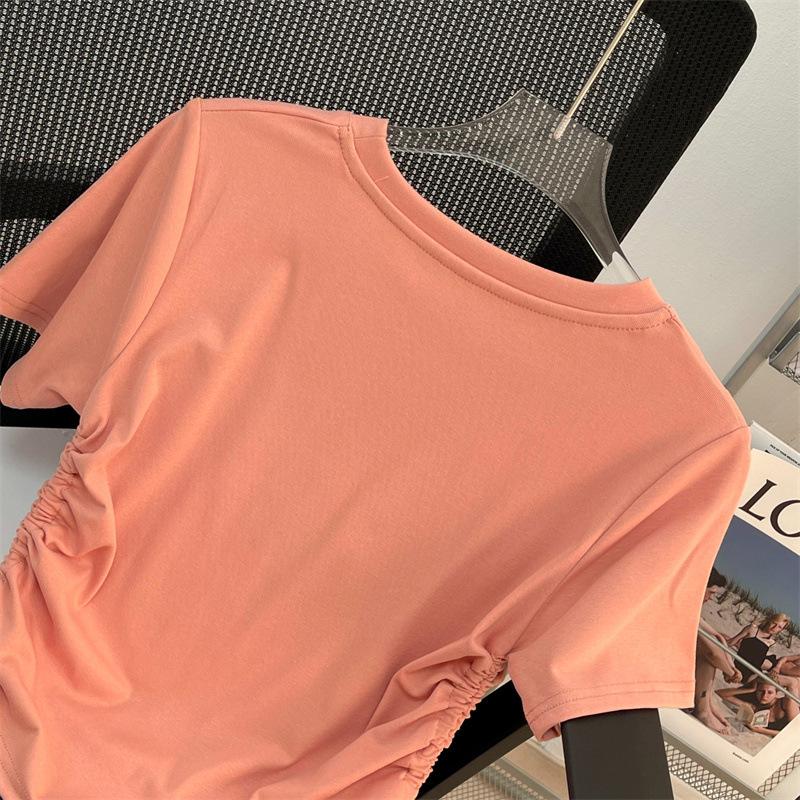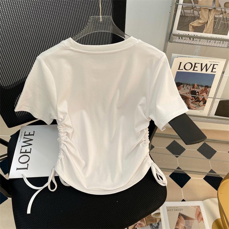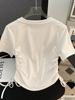 Camiseta de Algodón Puro de Manga Corta con Hombro Derecho Descubierto para Mujer Verano 2025 Nueva Camiseta Ajustada de Alta Gama Pequeña Moderna Reductora de Edad