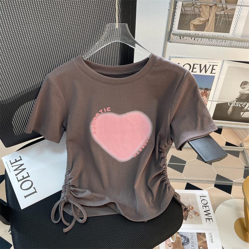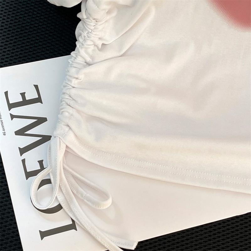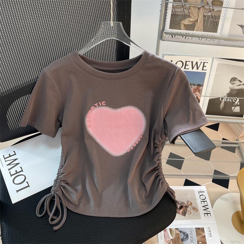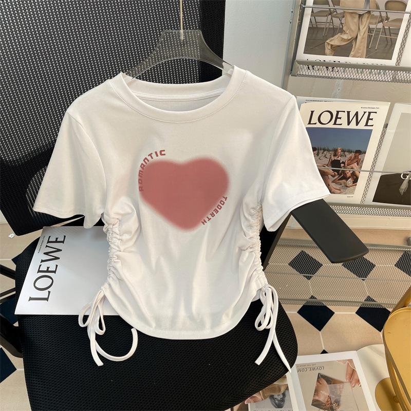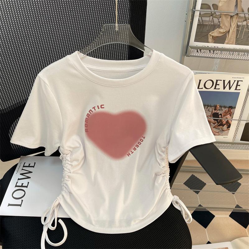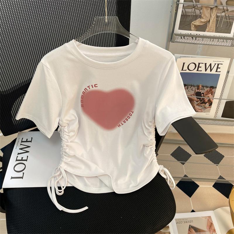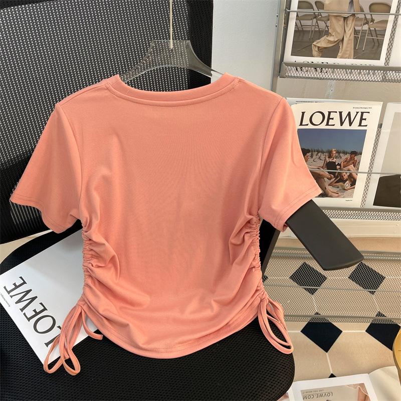 Camiseta de Algodón Puro de Manga Corta con Hombro Derecho Descubierto para Mujer Verano 2025 Nueva Camiseta Ajustada de Alta Gama Pequeña Moderna Reductora de Edad