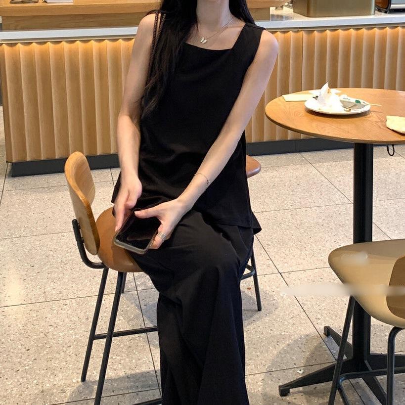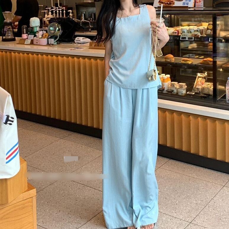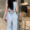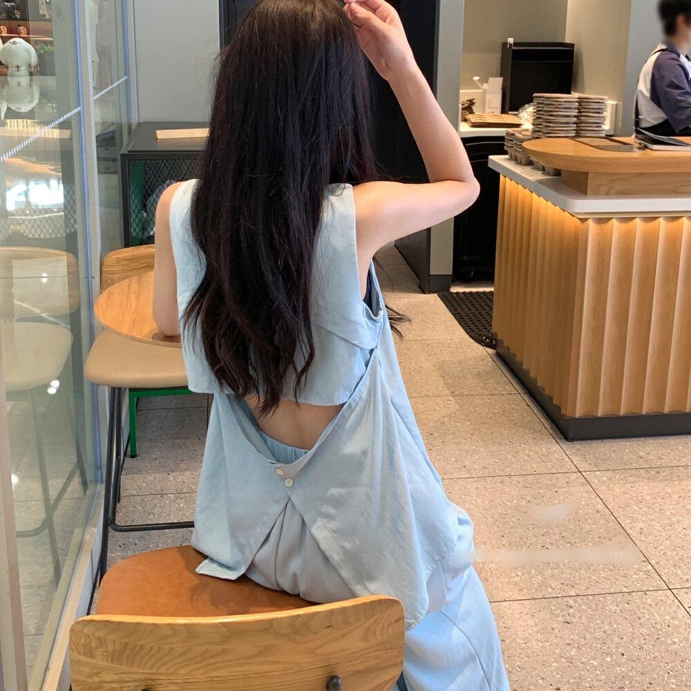 Traje de verano 2025, nuevo estilo coreano, estilo viajero, sin espalda, temperamento, sin mangas, camisa pequeña, pantalones casuales