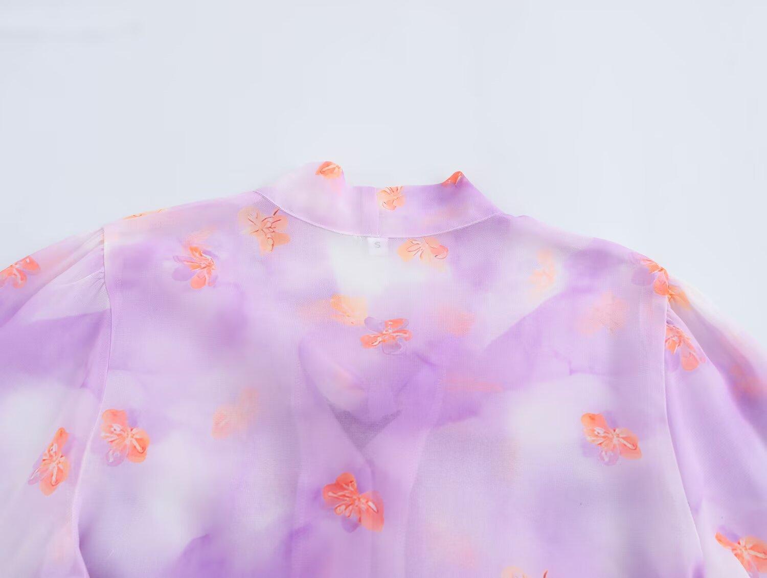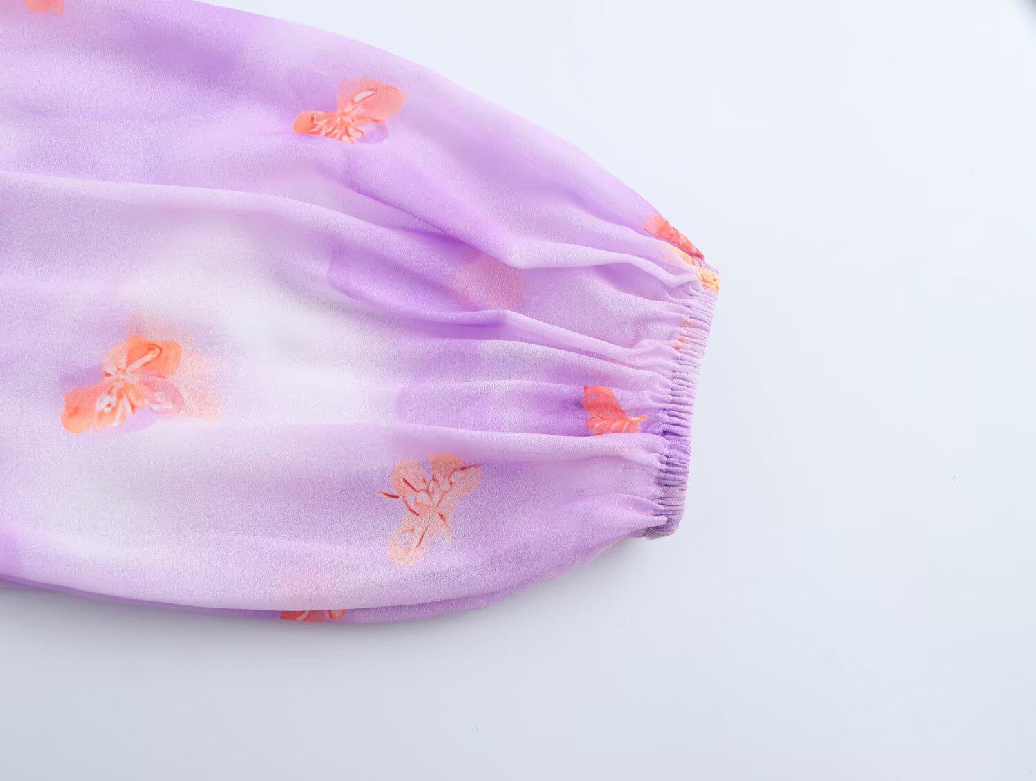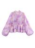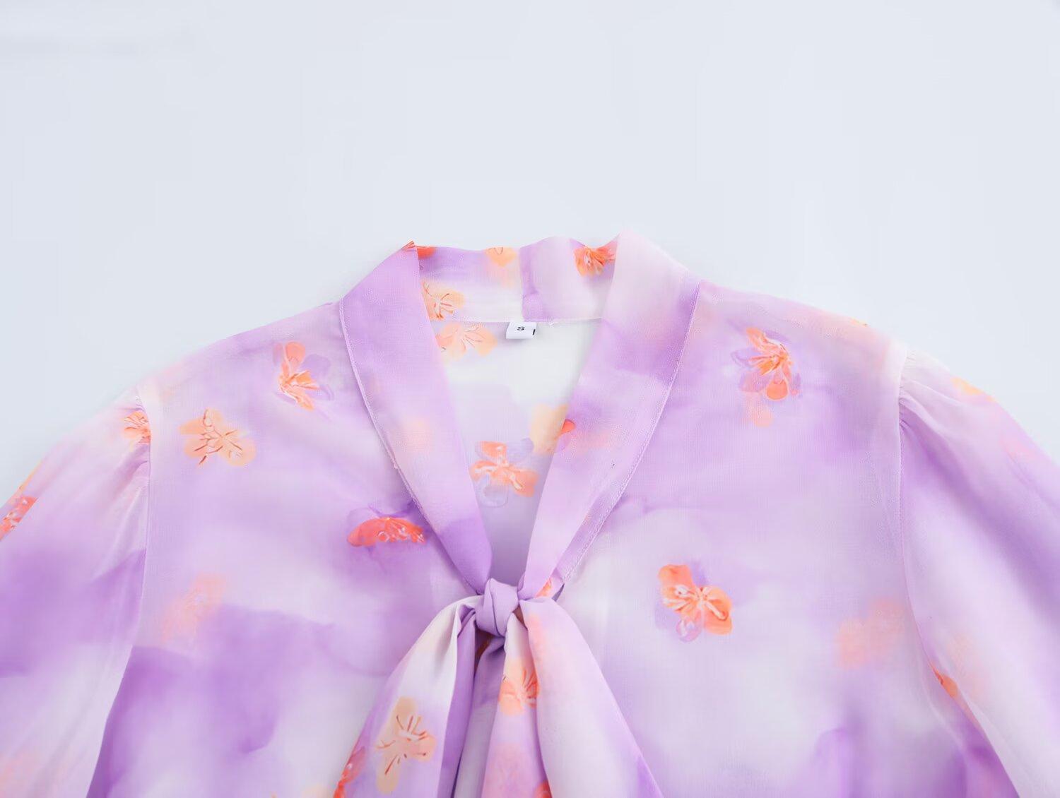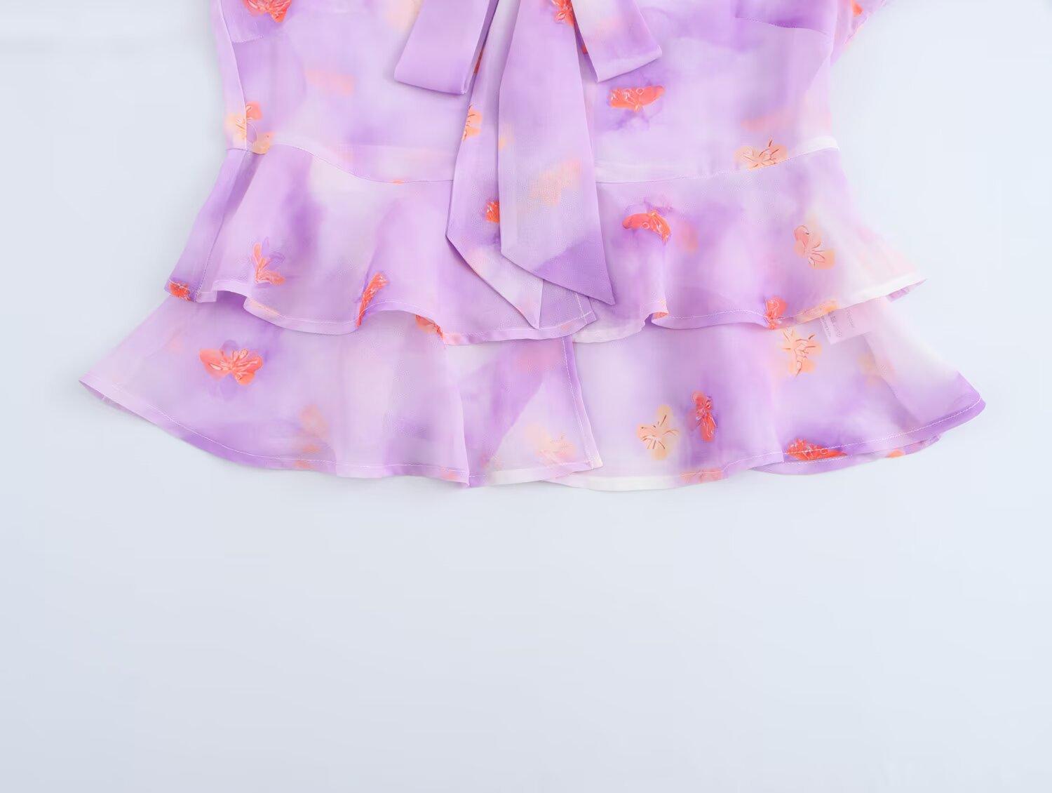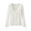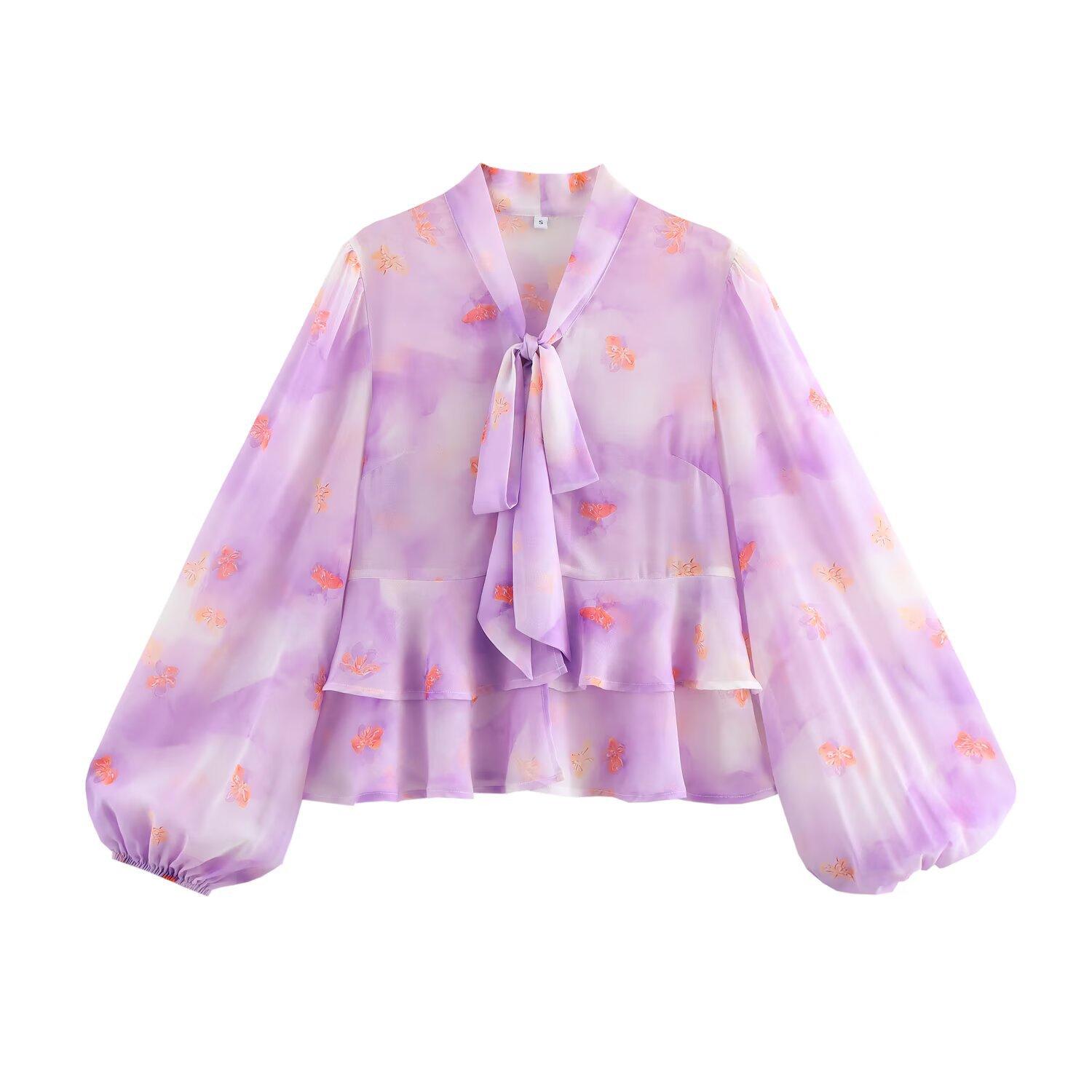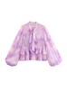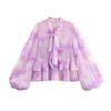 Blusa de gasa con volantes laminados y cordones para mujer europea y americana de primavera y verano 2025