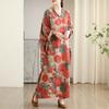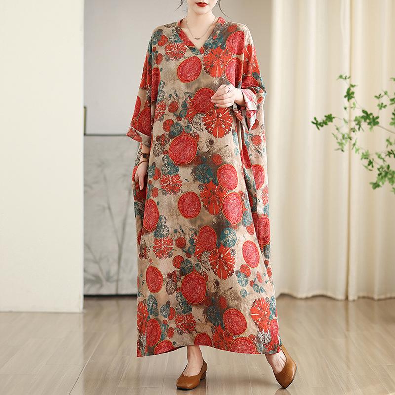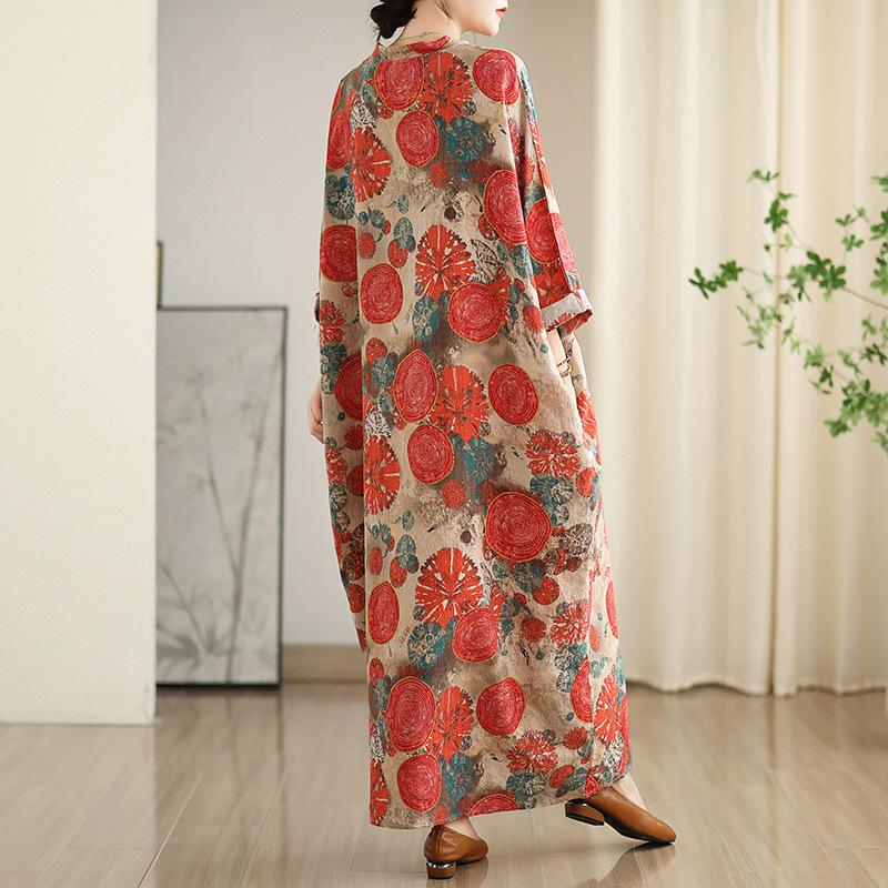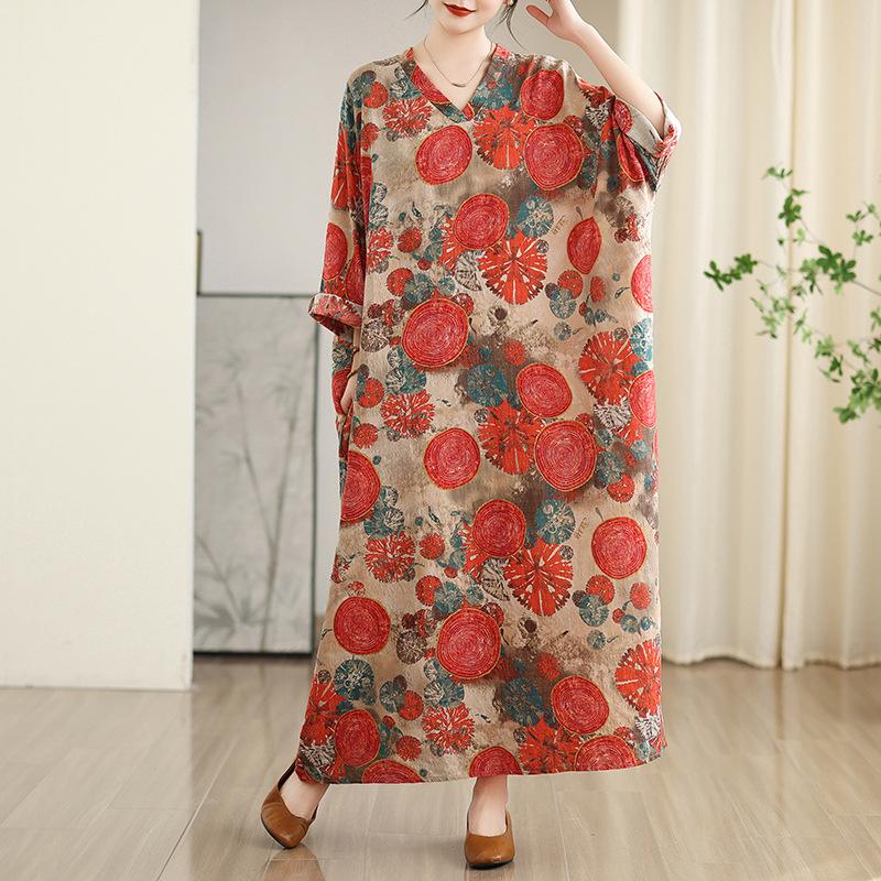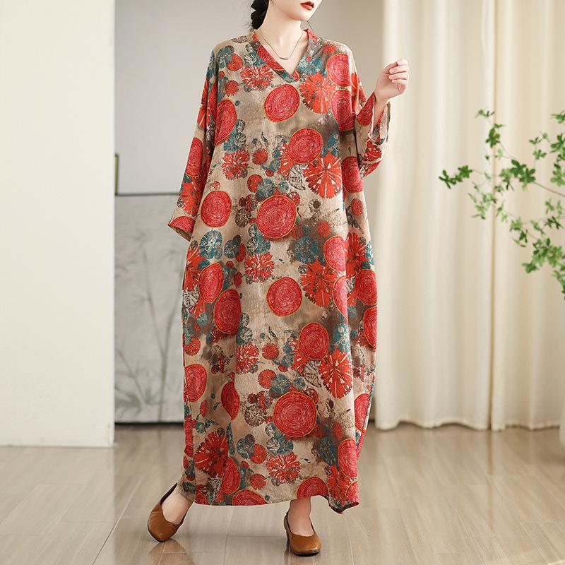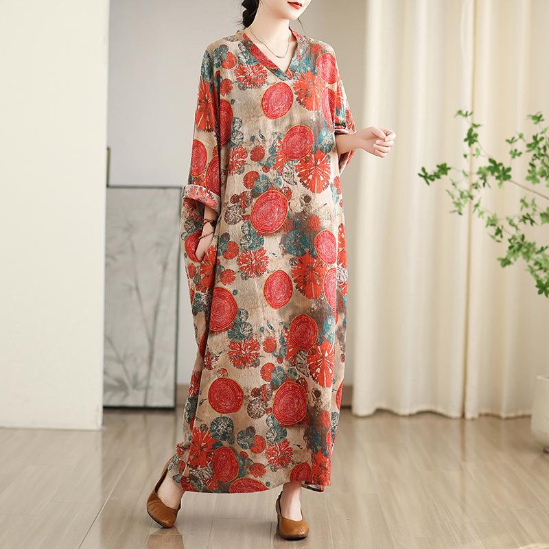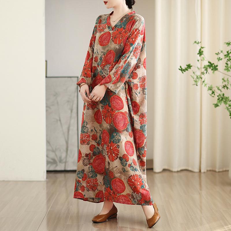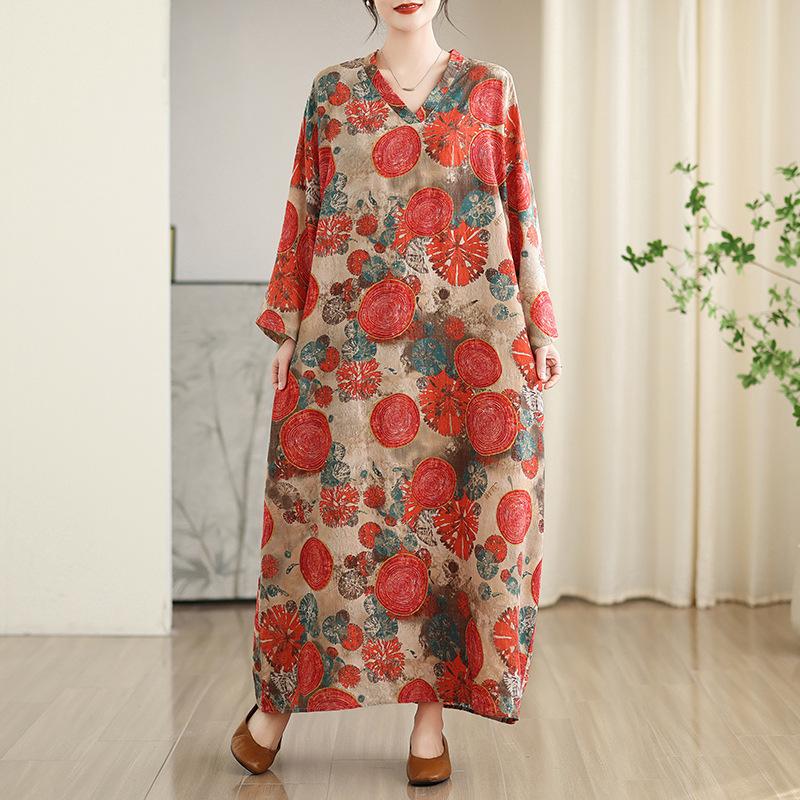 Vestido de algodón y lino con cuello en V, estilo retro, estilo festivo, de viaje, con falda larga y color, de principios de primavera de 2025.