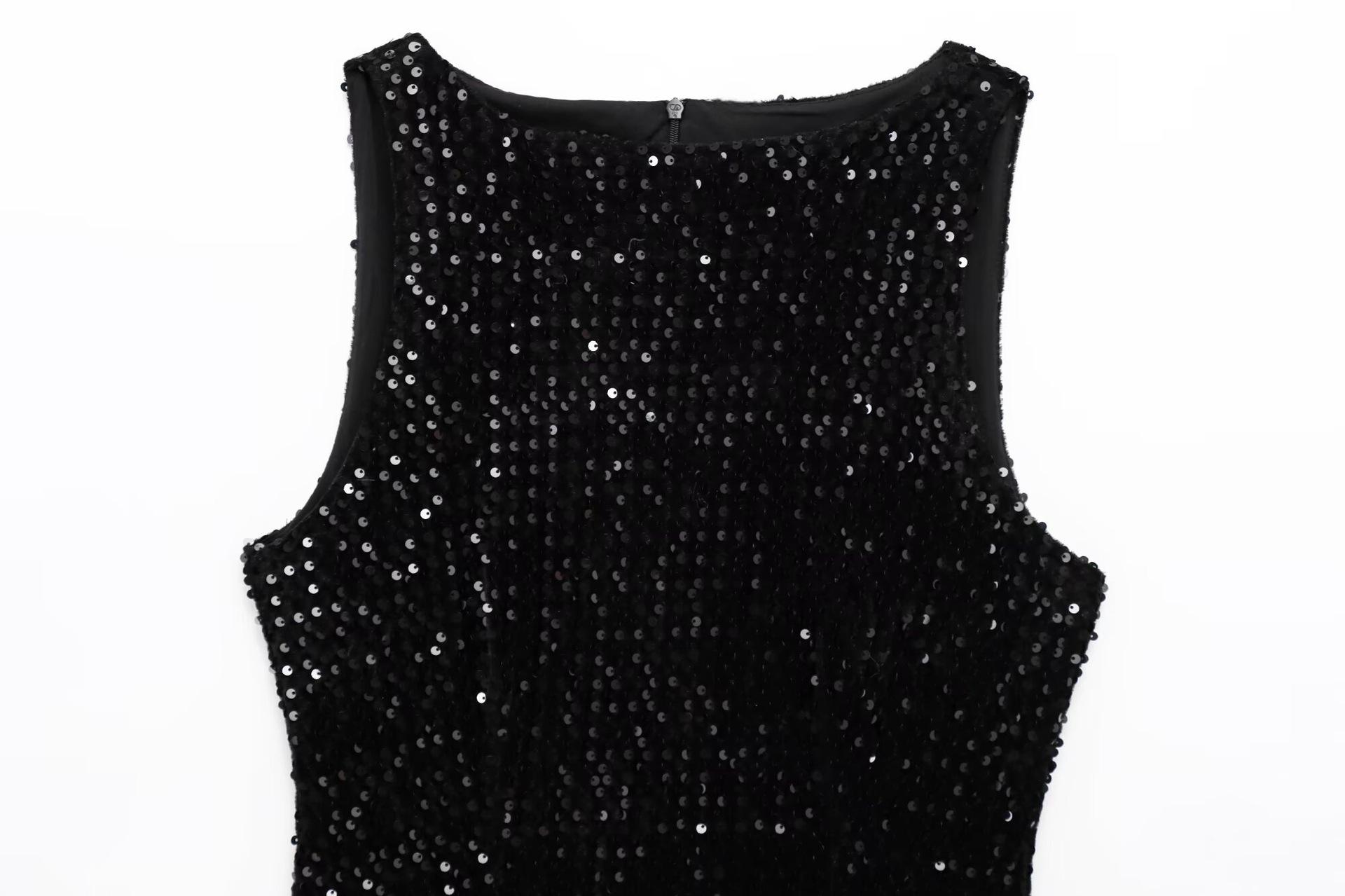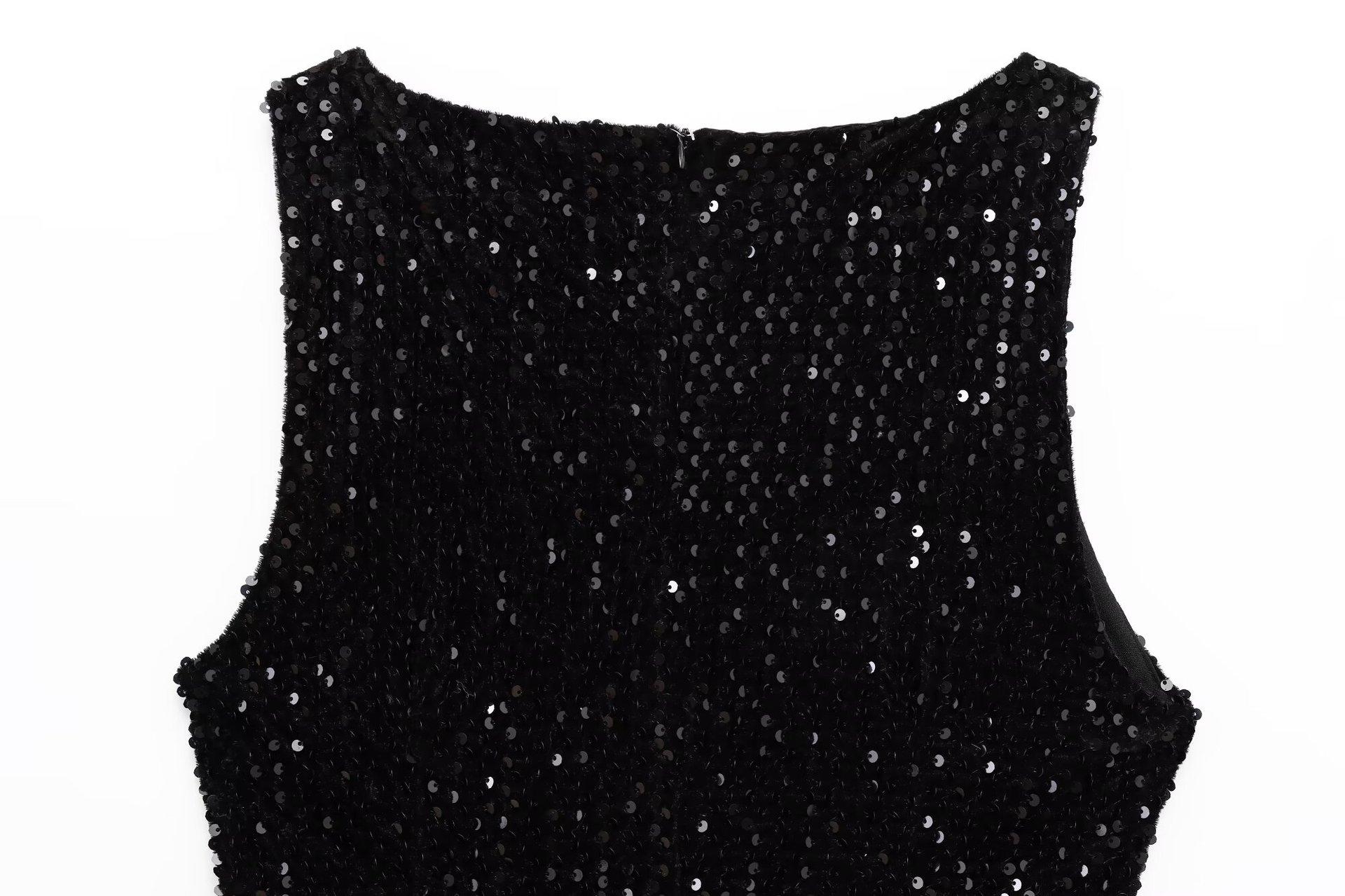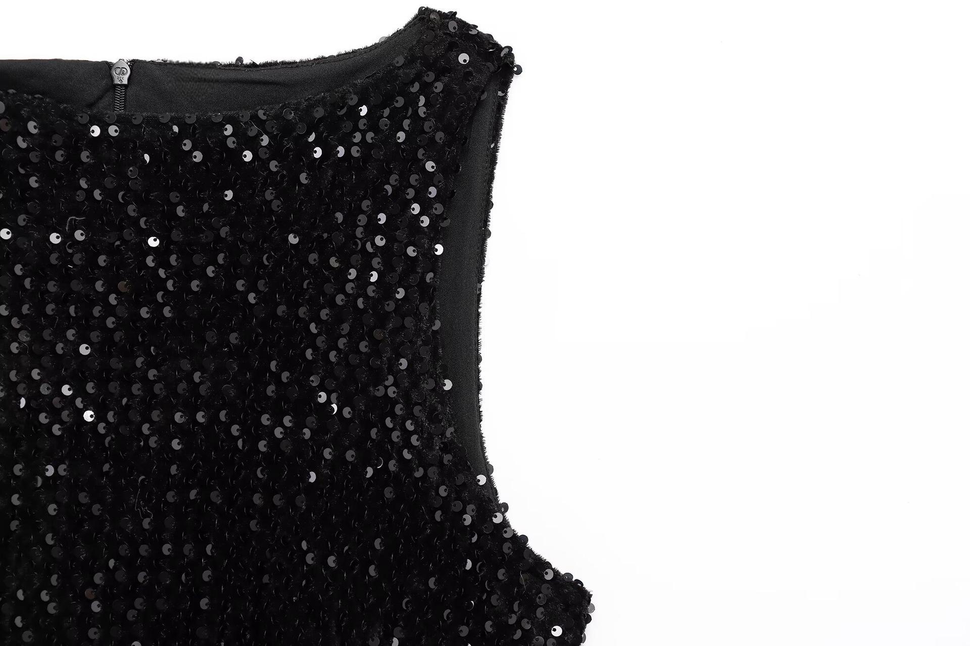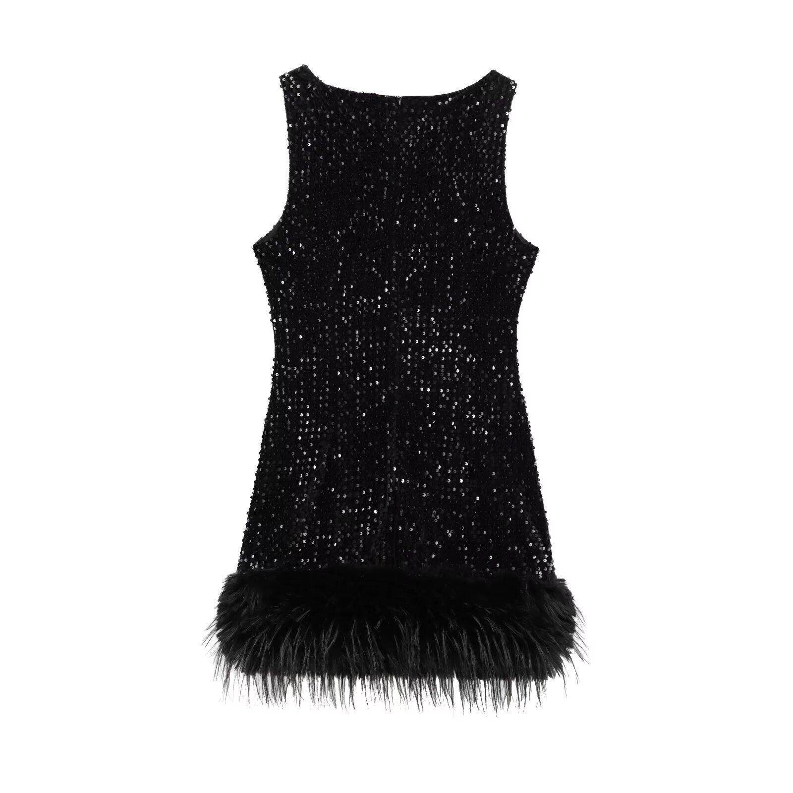 Ropa de Mujer Europea y Americana Transfronteriza 2025 Primavera Nuevo Vestido de Lujo con Lentejuelas y Plumas sin Mangas 4772227
