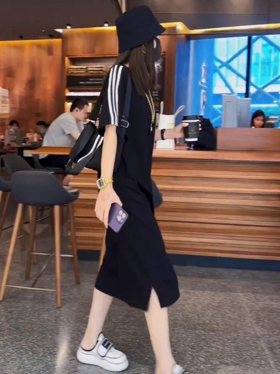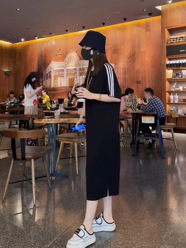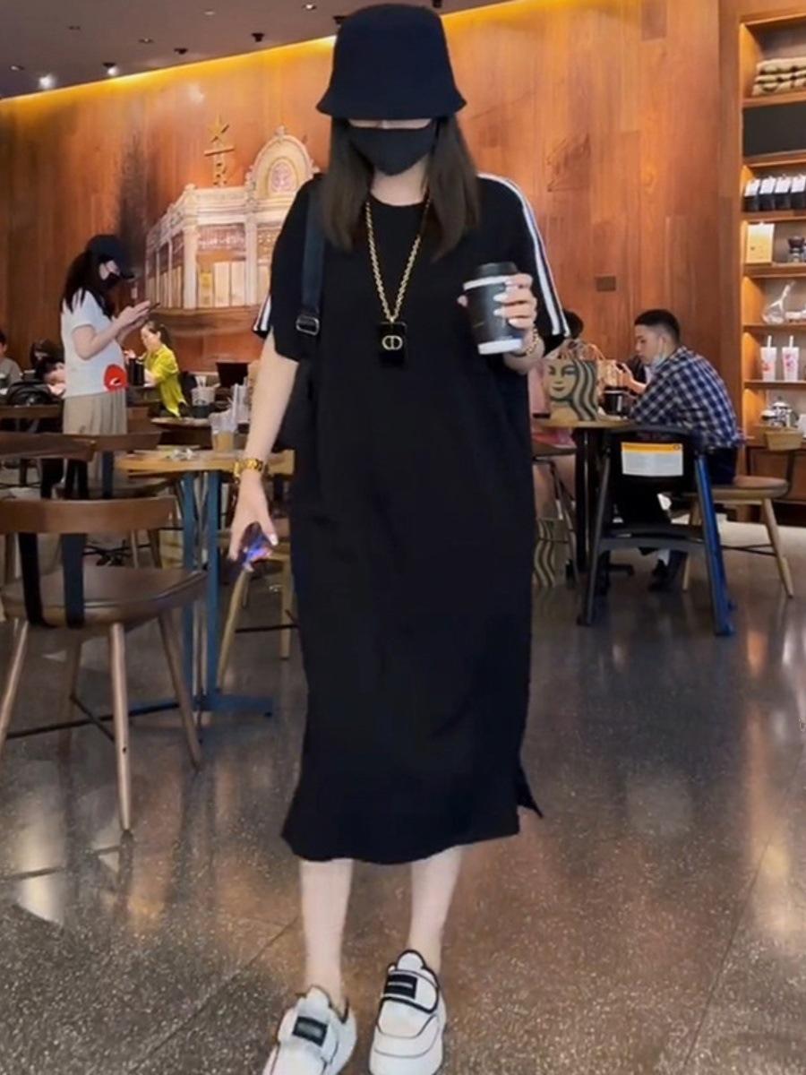 2025 Primavera y Verano Nuevo Vestido Camiseta de Moda y de Alta Gama por Encima de la Rodilla para Mujer Talla Grande Vestido Slim de Largo Medio