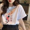 Camiseta informal de estilo europeo y americano con estampado de letras americanas, cuello redondo, de algodón, de manga corta, estilo retro, holgada y elegante, combinable con todo.