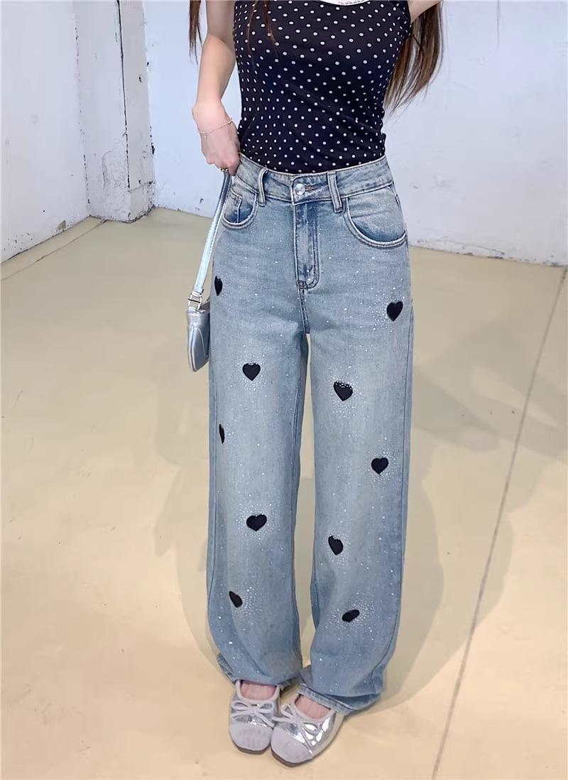 Pantalones vaqueros para niños 2025, nuevo diseño, pantalones holgados de pierna recta, pantalones anchos de moda para mujer.