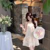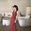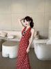Foto real verano 2025 versión coreana de deseo puro chica hot cuello halter floral espalda descubierta plegado ambiente festivo vestido mujer