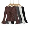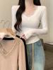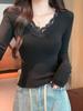 Otoño 2024 Nuevo Slim-fit Adelgazante Puro Cuello en V Encaje Manga Larga Camiseta para Mujer Nicho Elegante Camiseta Base Top