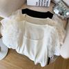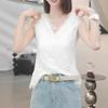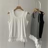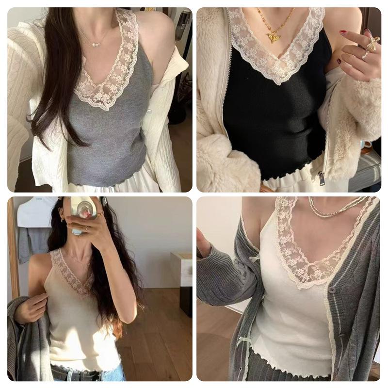 Top de punto sin mangas, ajustado, con encaje y escote en V estilo francés, primavera/verano 2025