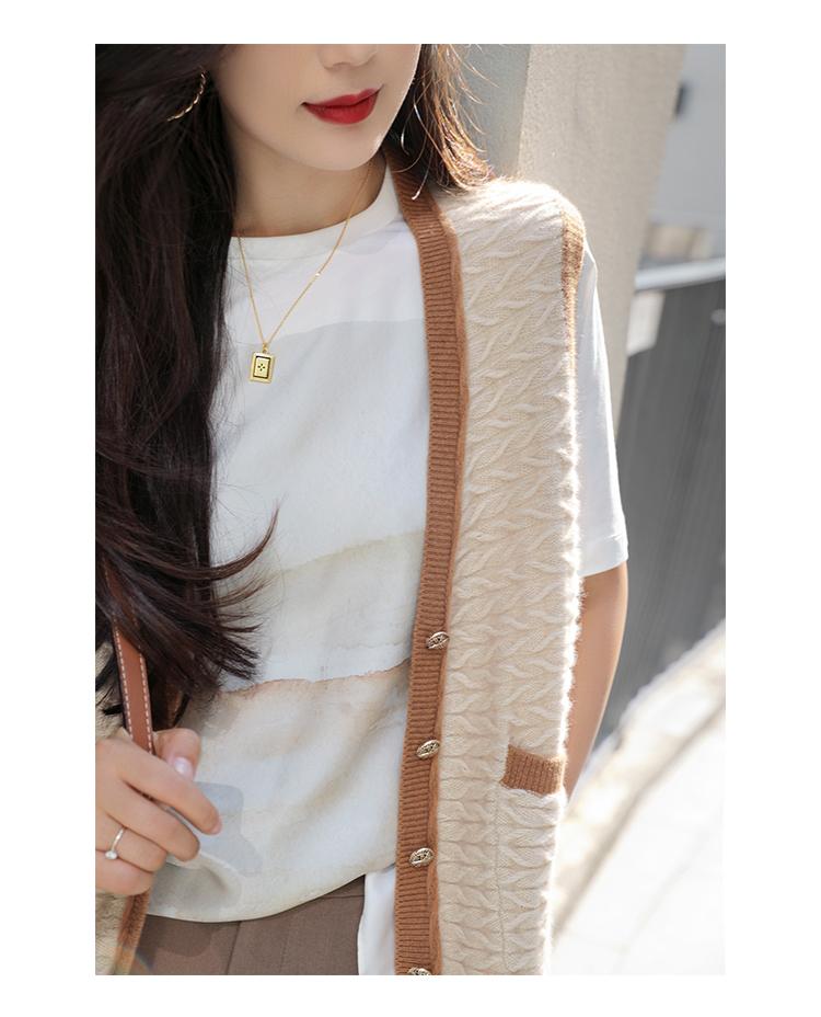 (Para prendas de punto de alta gama, no lavar a máquina. Lavar en seco si es posible. No remojar en agua tibia. Si necesita lavar a mano, use detergente para lana de seda de alta gama para frotar suavemente y lavar a mano. Por favor, secar en plano al sol. No secar verticalmente para evitar la deformación.)