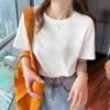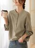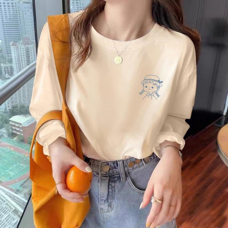 Camiseta de manga larga de algodón para mujer, otoño 2024, sencilla, holgada, combinable, estilo coreano, con estampado