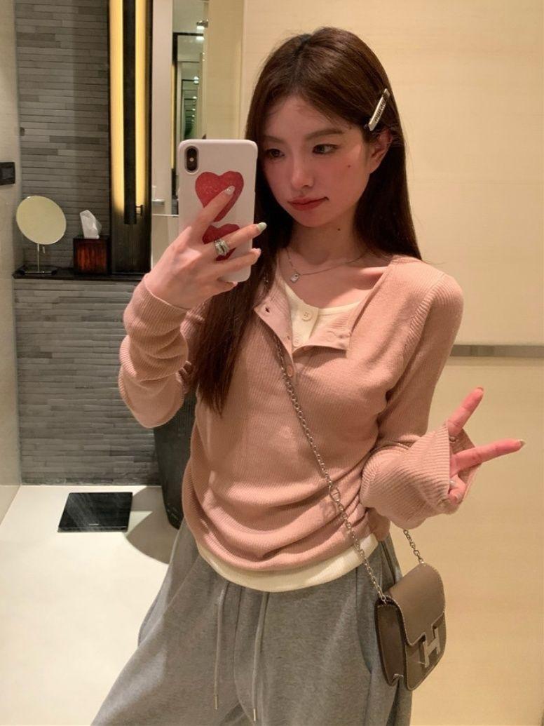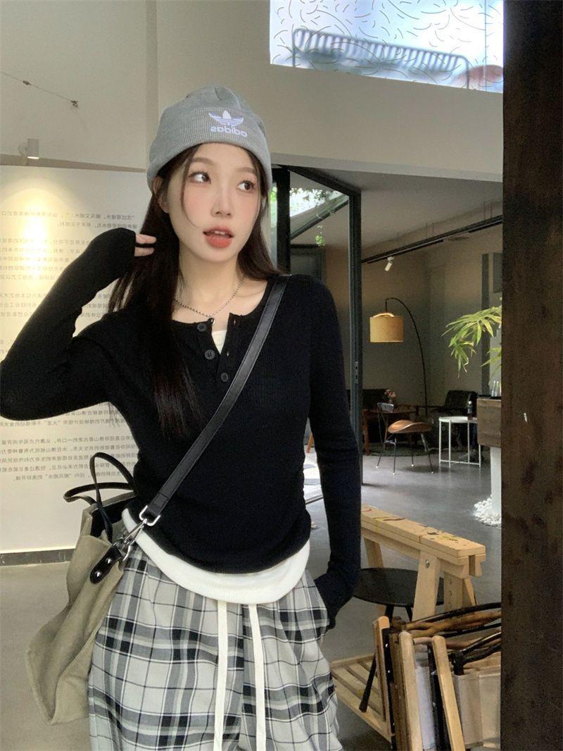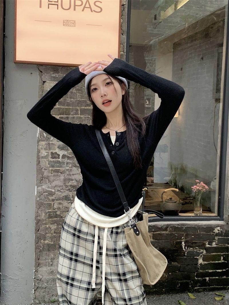Otoño Falso Dos Piezas Ajustado Adelgazante Combinable Manga Larga Camiseta Deseo Puro Sexy Chica Picante Moda Nicho Top Ins Mujeres