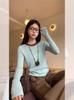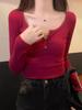 Camiseta de manga larga de punto con cuello redondo y contraste de color, de Sweet Spice Girl, sexy, suave, encerada, ajustada, a la moda, para todo tipo de combinaciones, Pure Desire Top Ins