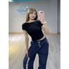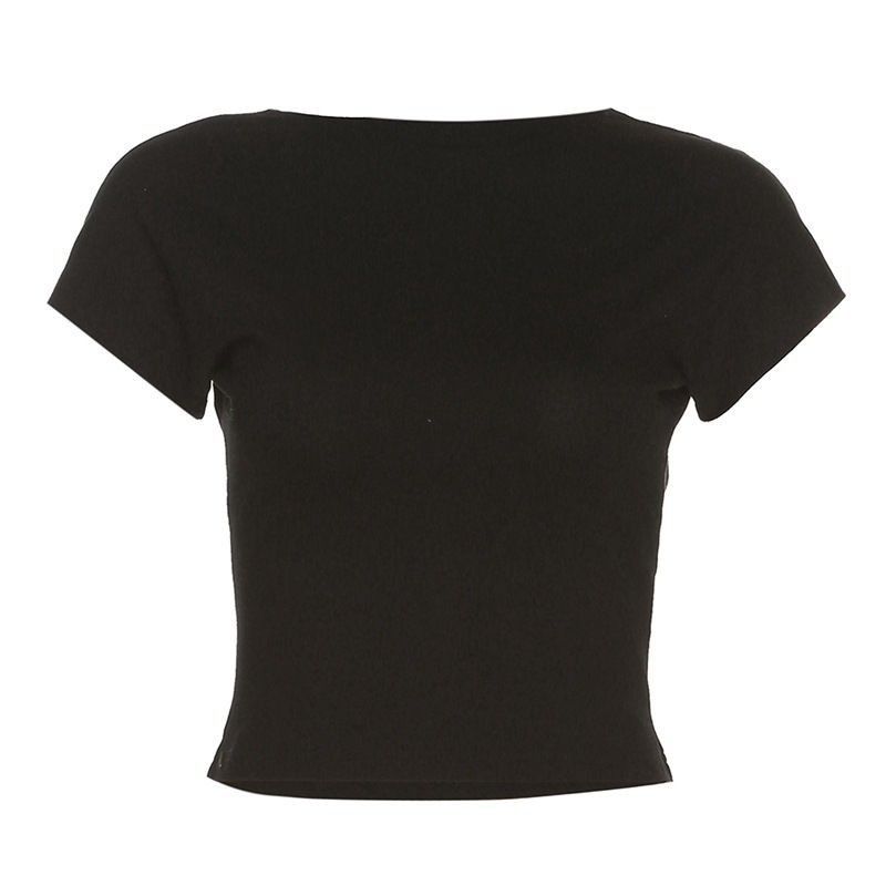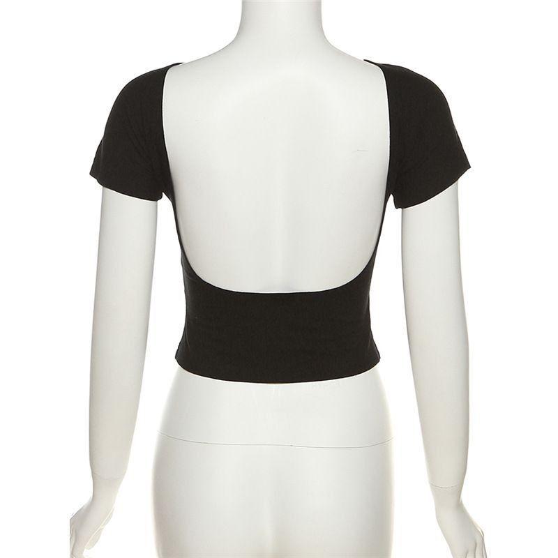 Camiseta sexy de manga corta sin espalda para chicas calientes, nuevo estilo, Pure Desire, nicho chic, top ajustado único con cintura ajustada y reductora.