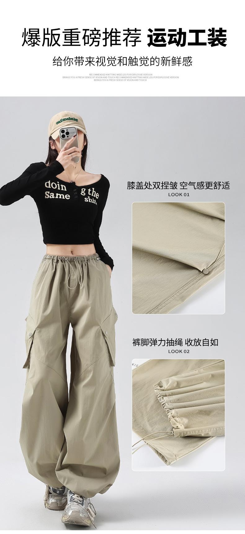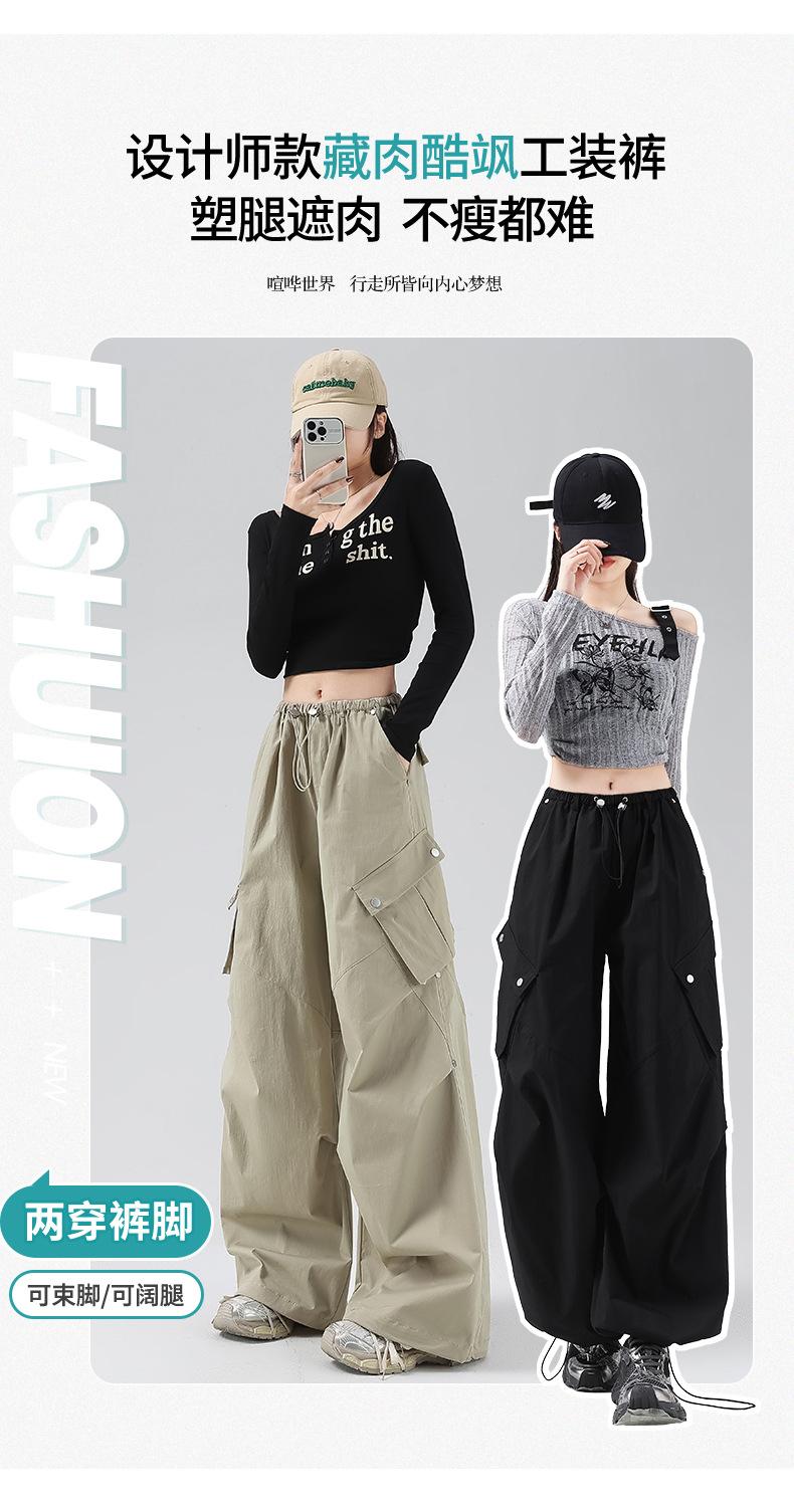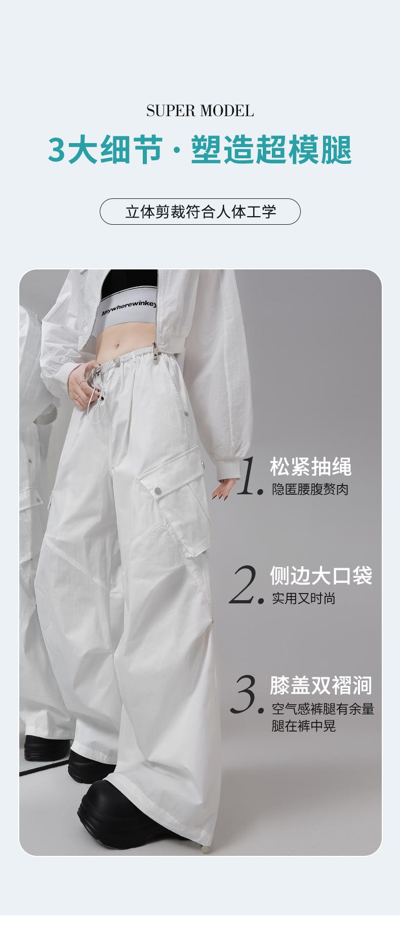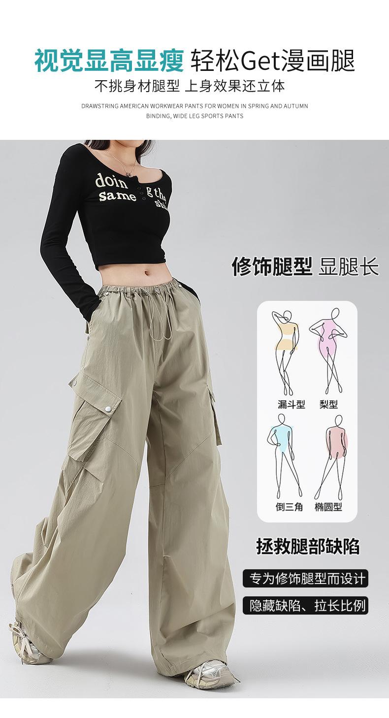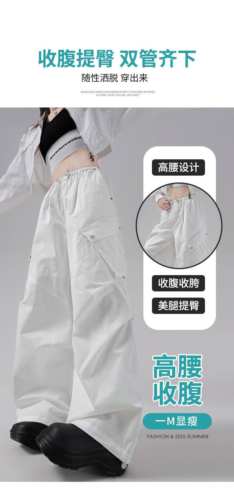 Mono de paracaídas americano para mujer, primavera y verano 2025, nuevo, cintura alta, pierna ancha, recto, informal, con punta para exteriores, pantalones deportivos