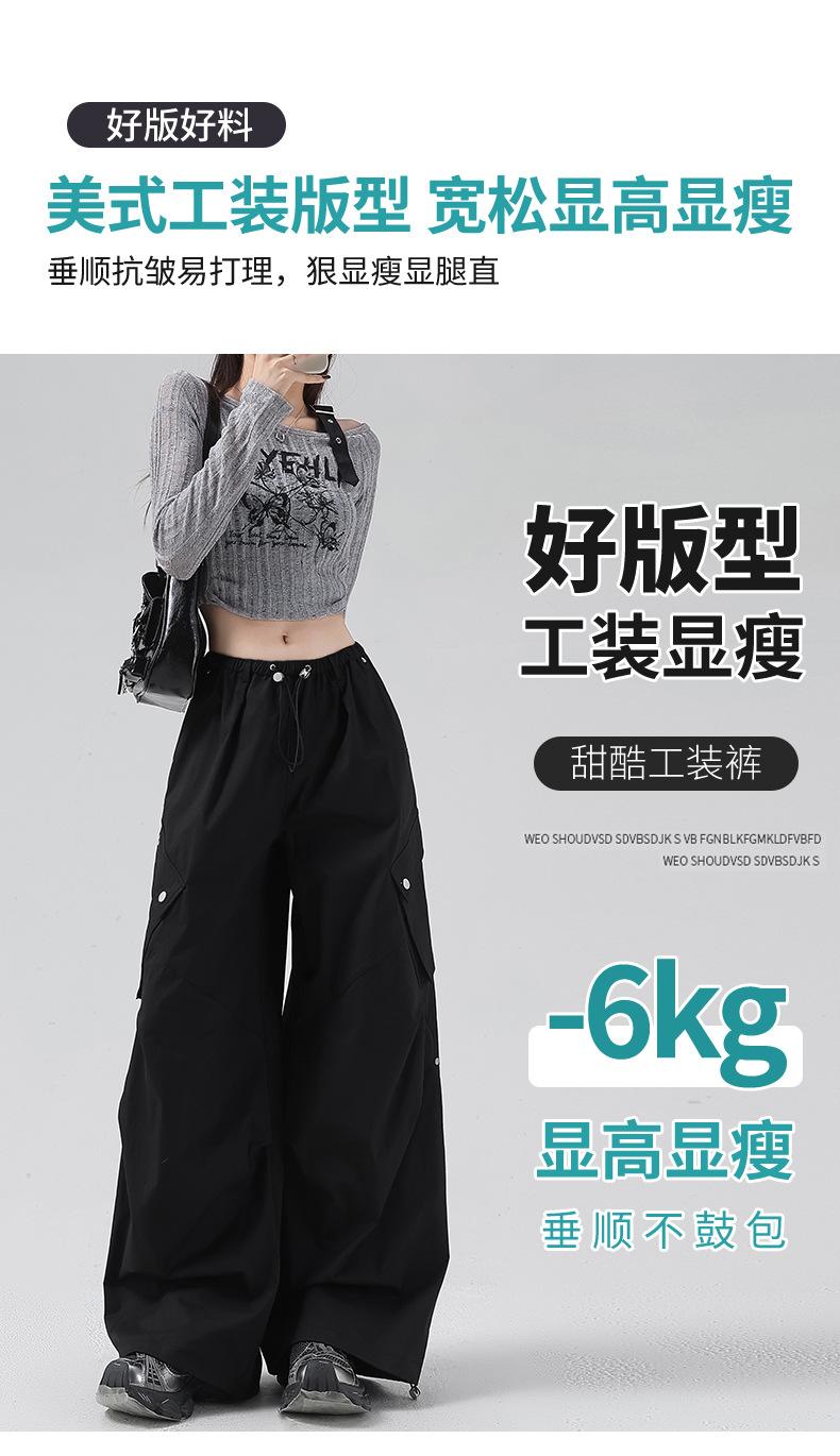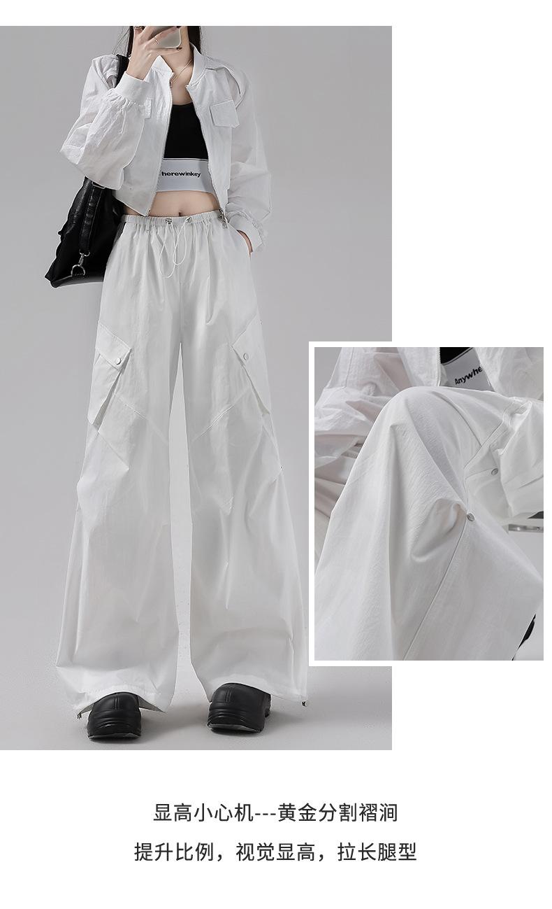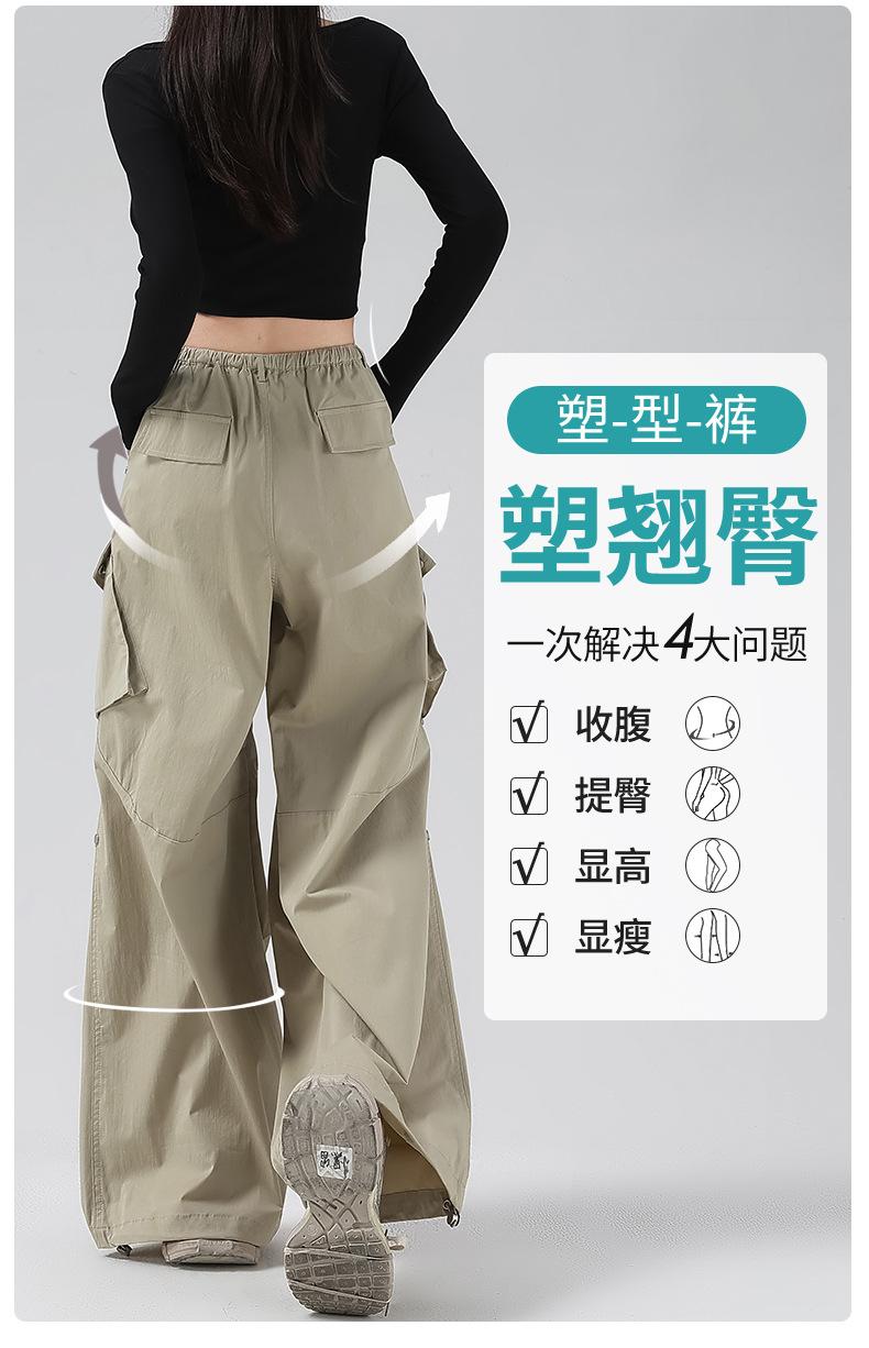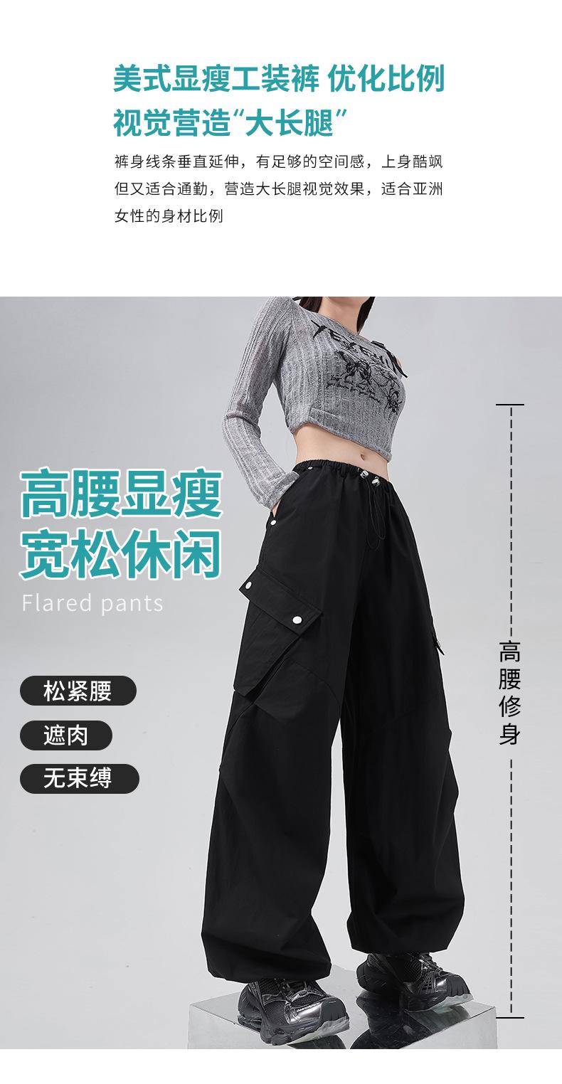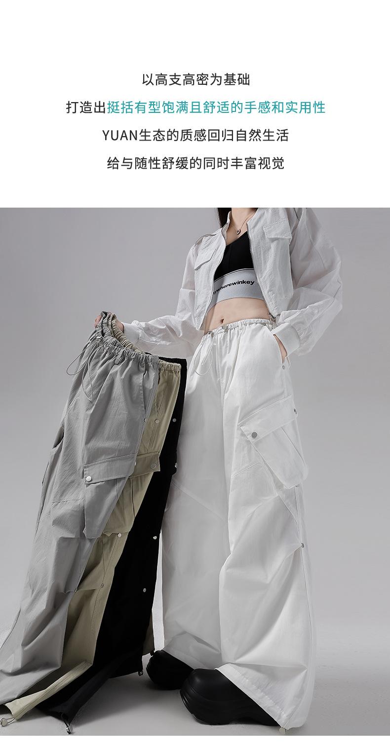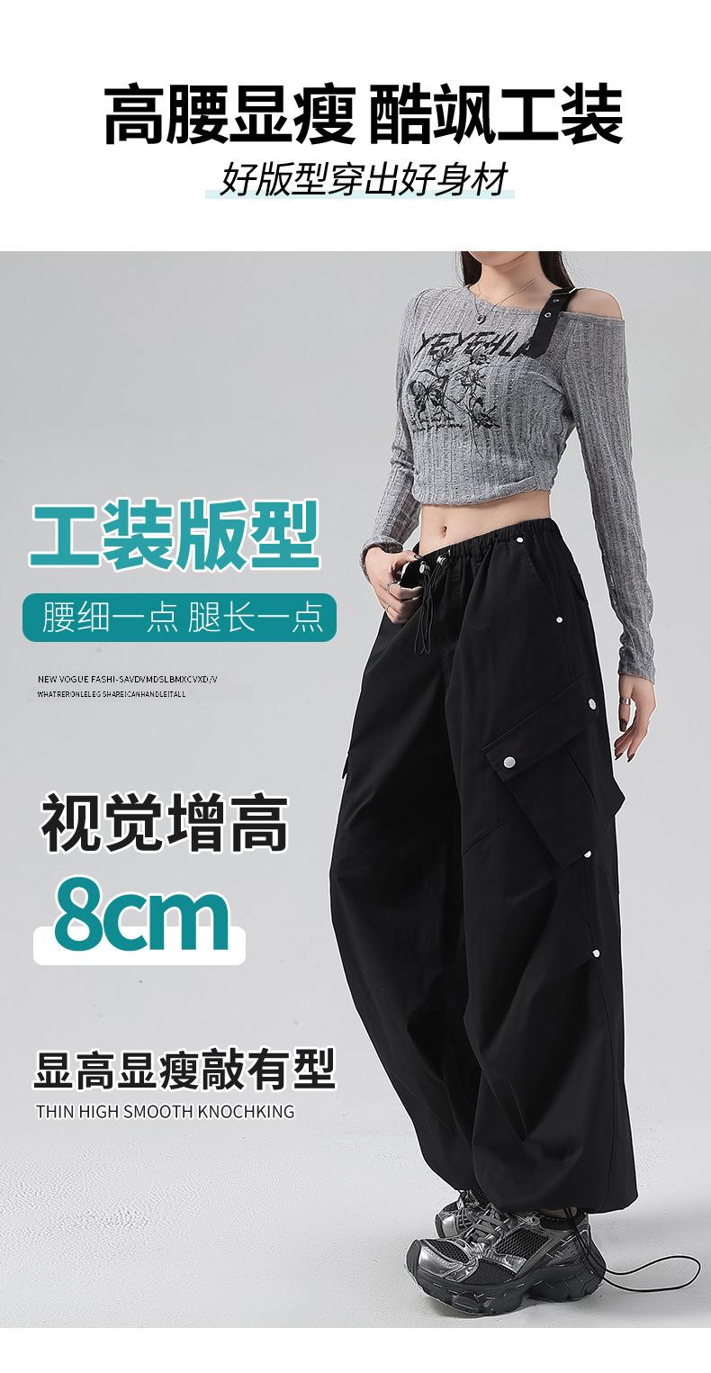 Mono de paracaídas americano para mujer, primavera y verano 2025, nuevo, cintura alta, pierna ancha, recto, informal, con punta para exteriores, pantalones deportivos