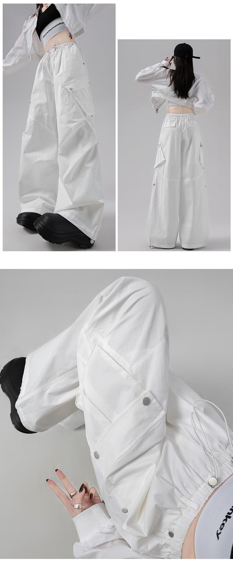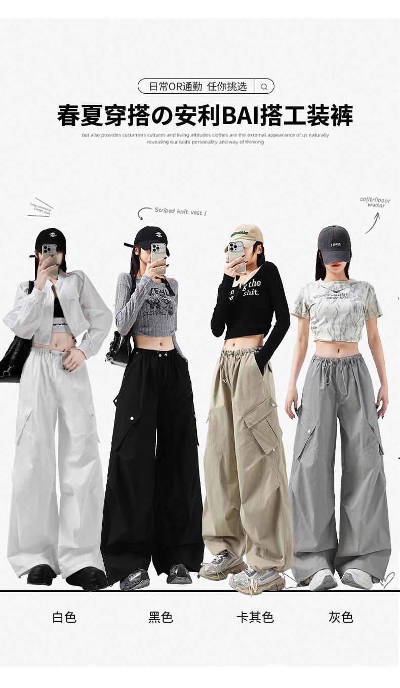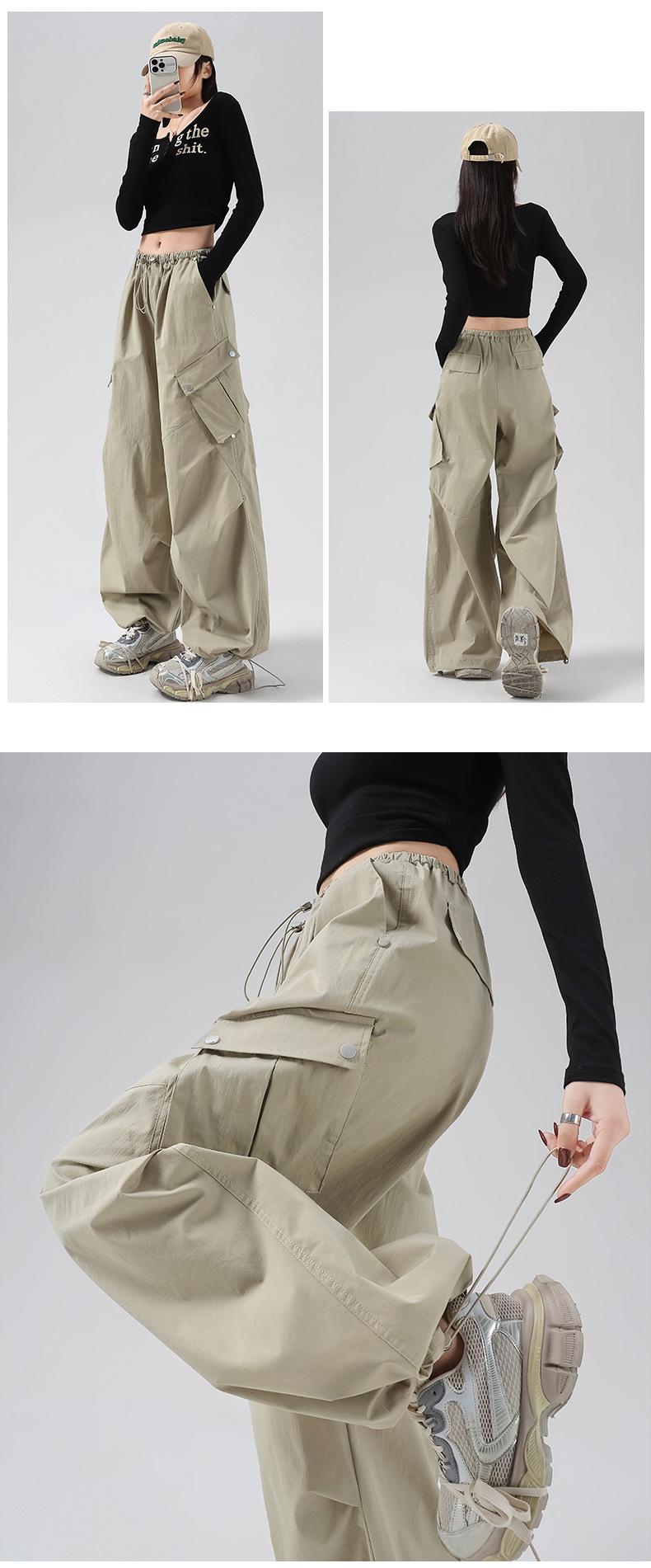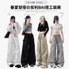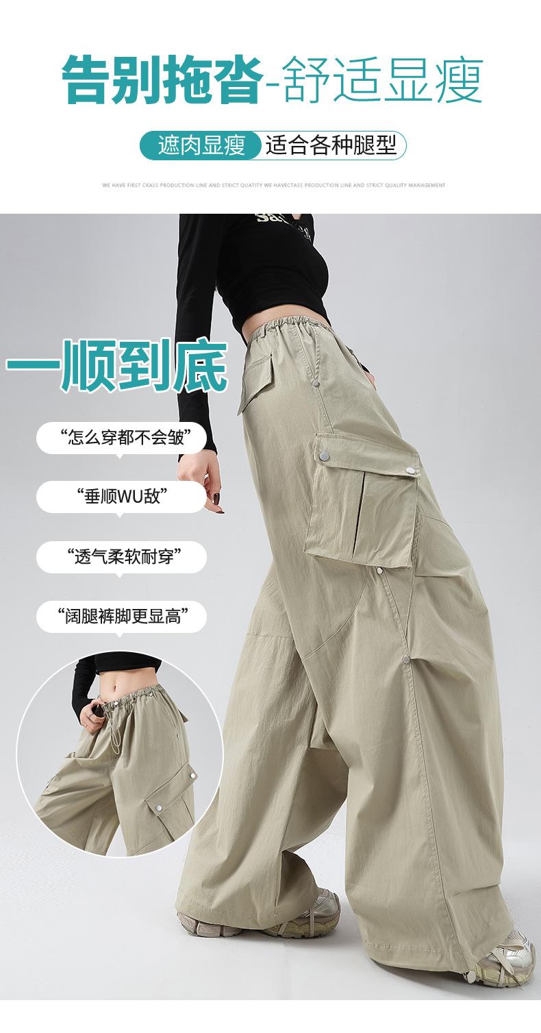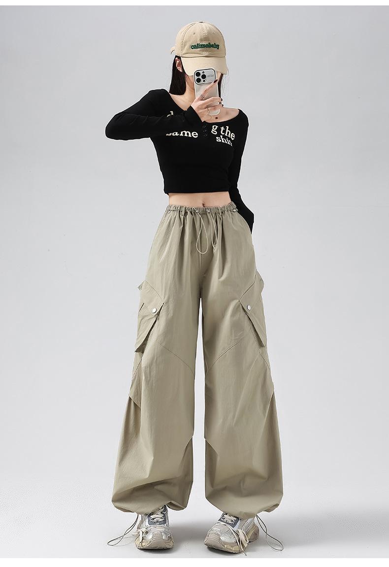 Mono de paracaídas americano para mujer, primavera y verano 2025, nuevo, cintura alta, pierna ancha, recto, informal, con punta para exteriores, pantalones deportivos