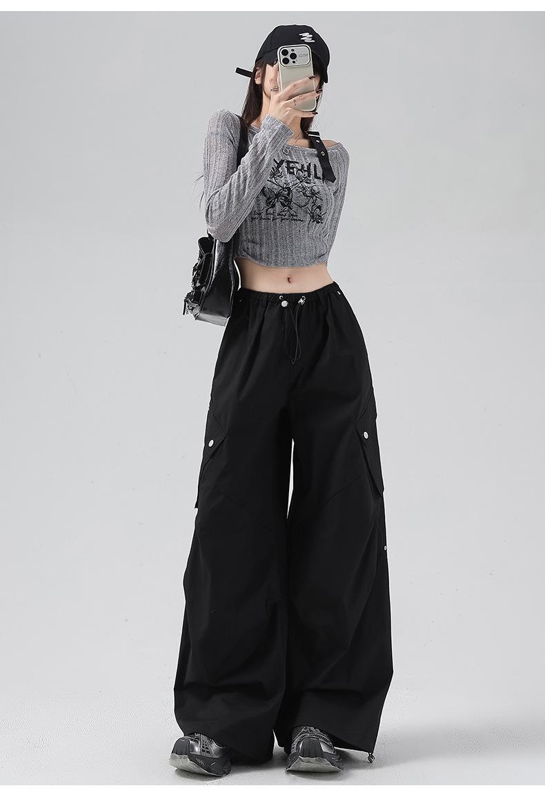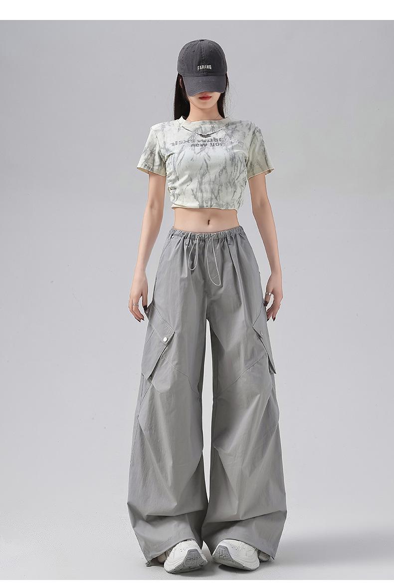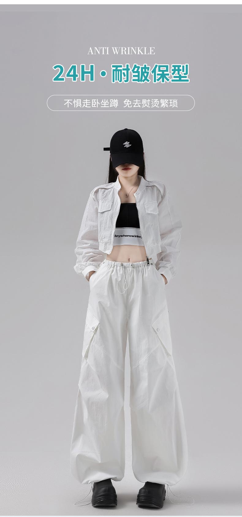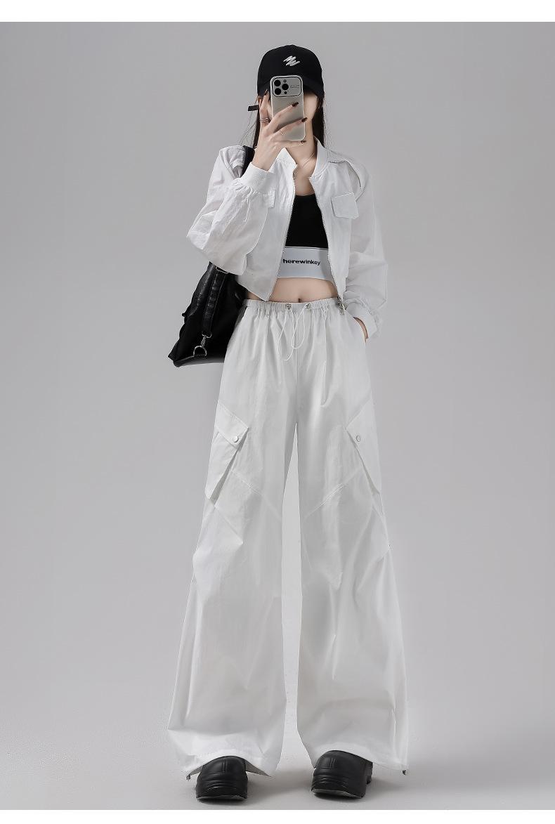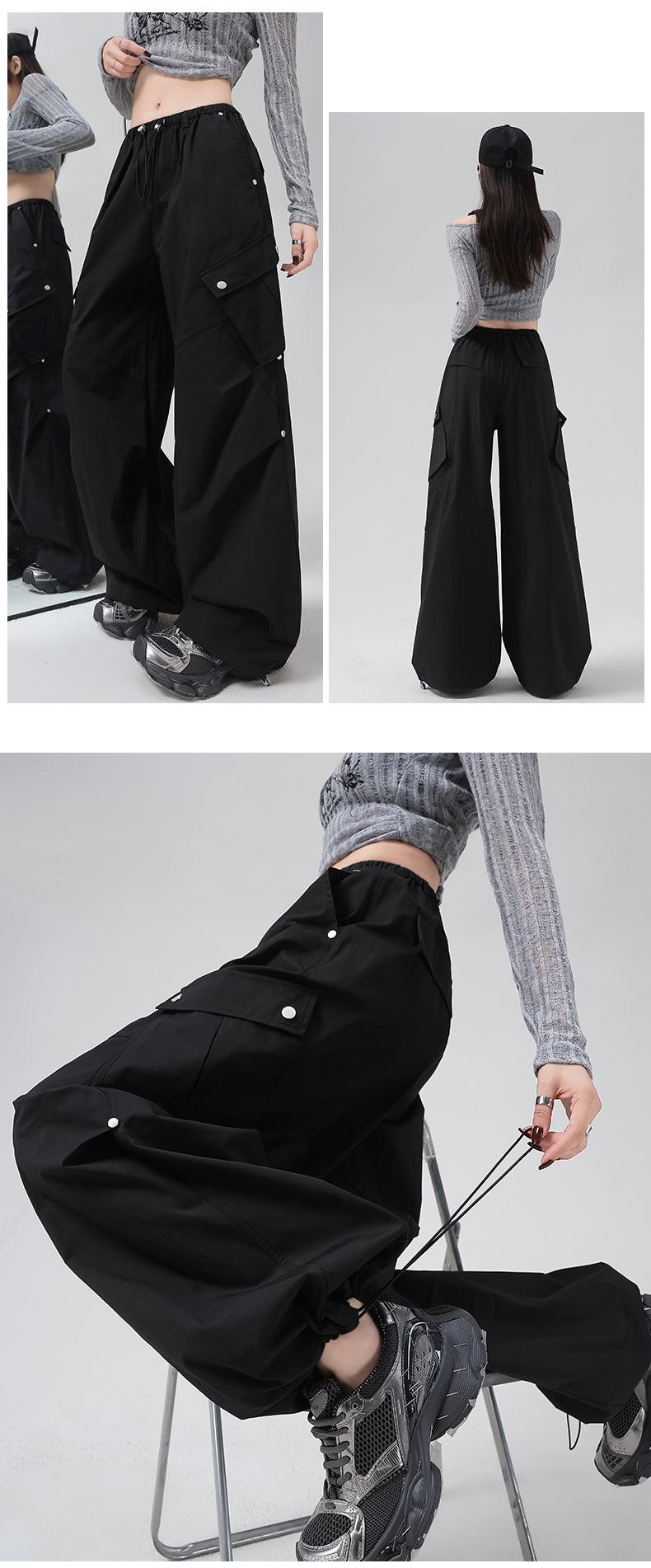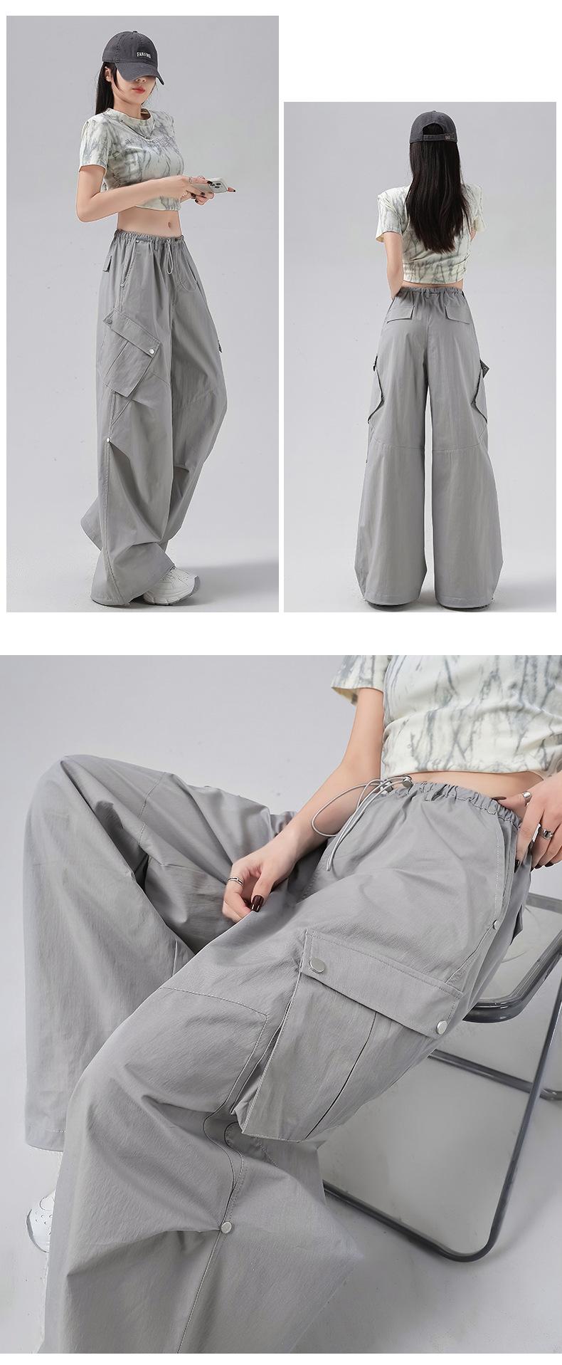 Mono de paracaídas americano para mujer, primavera y verano 2025, nuevo, cintura alta, pierna ancha, recto, informal, con punta para exteriores, pantalones deportivos