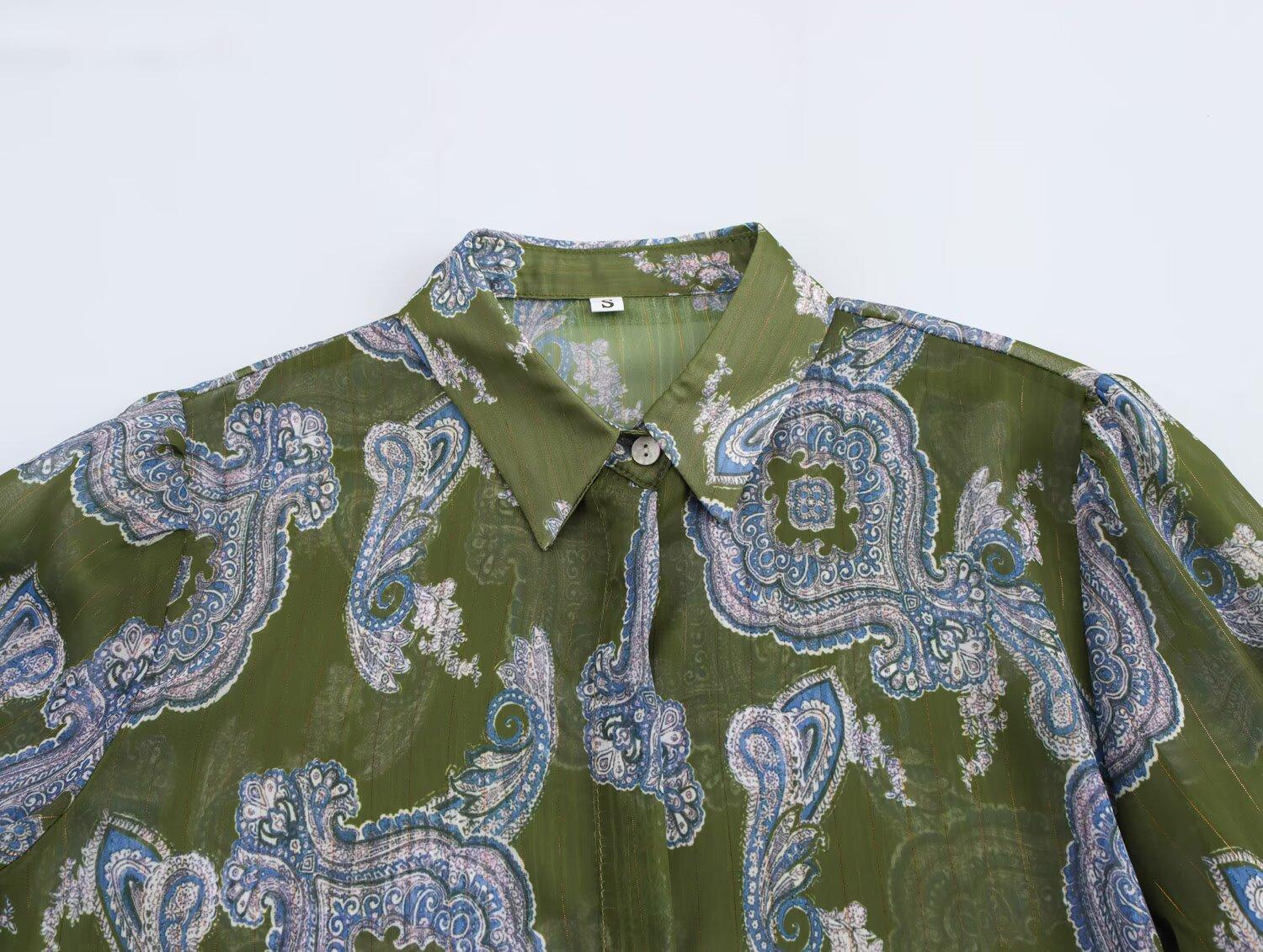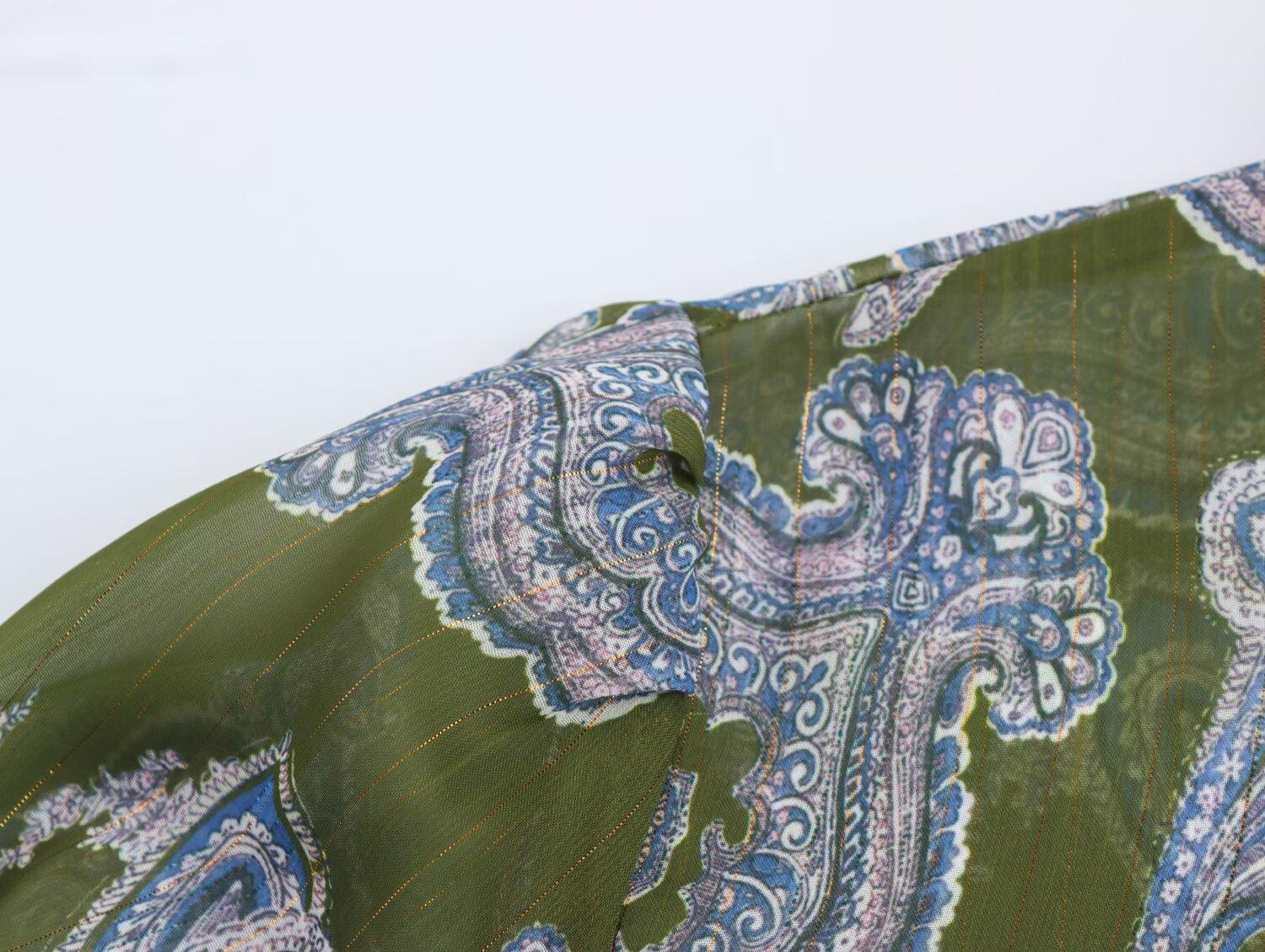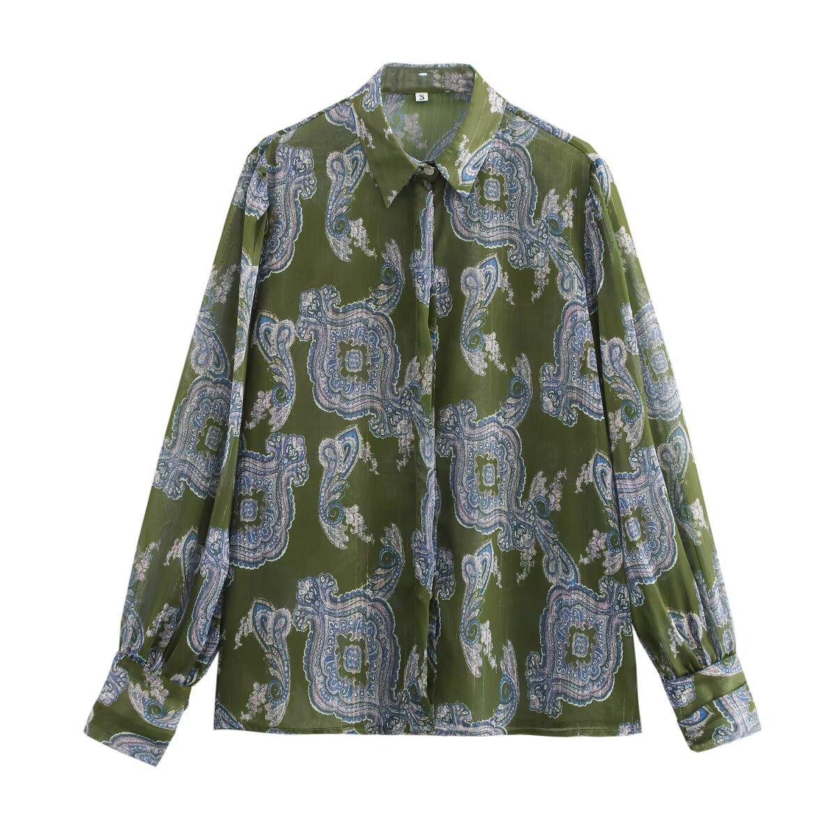 2025 primavera nuevo moda transfronteriza europea y americana para mujer camisa de manga larga estampada con líneas de color metálico w021 CD82007