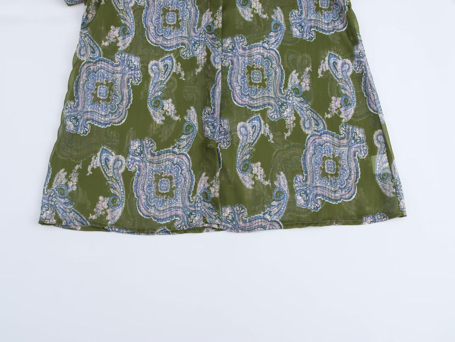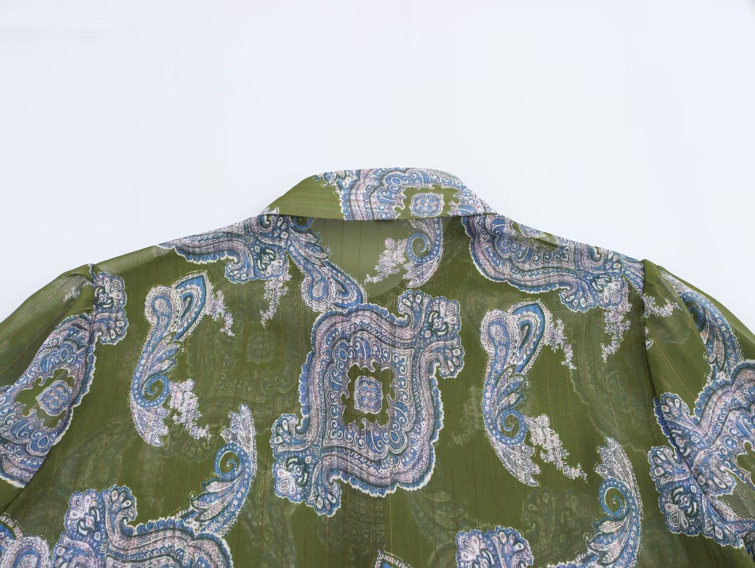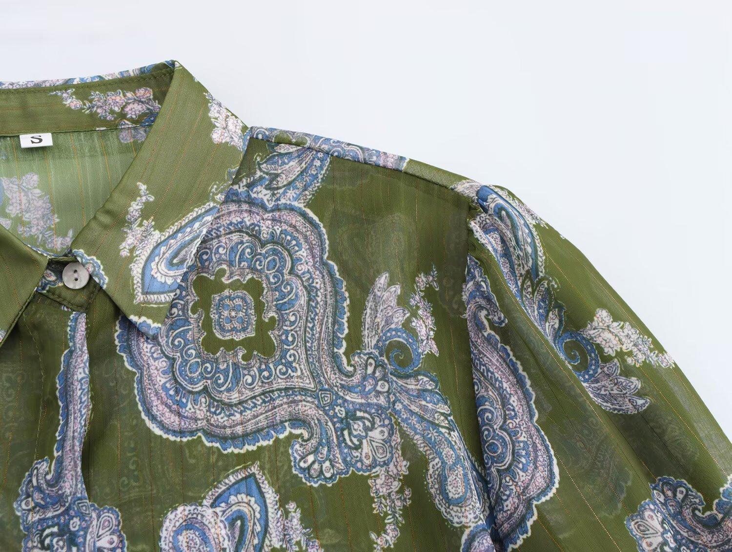 2025 primavera nuevo moda transfronteriza europea y americana para mujer camisa de manga larga estampada con líneas de color metálico w021 CD82007
