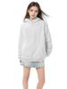 Suéter con capucha estilo americano retro gris para mujer, abrigo de primavera y otoño de gran tamaño con capucha y hombros finos.