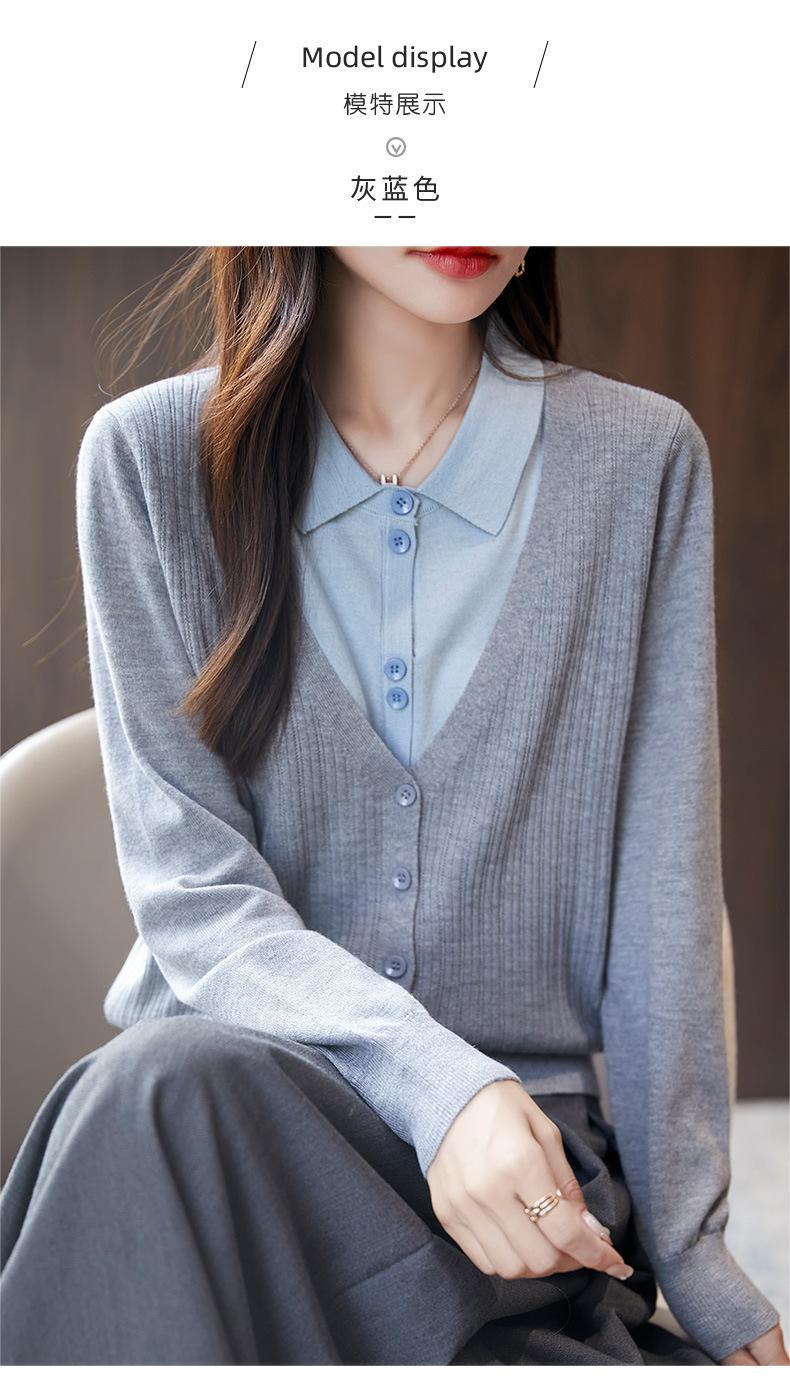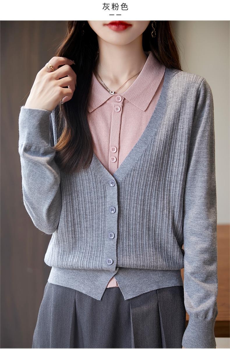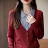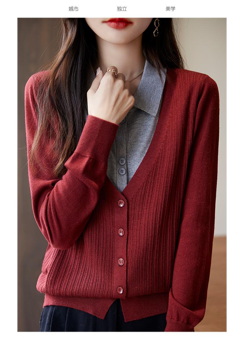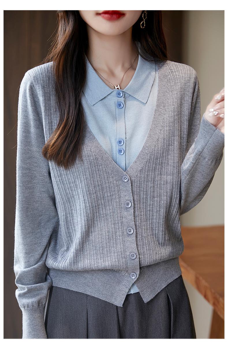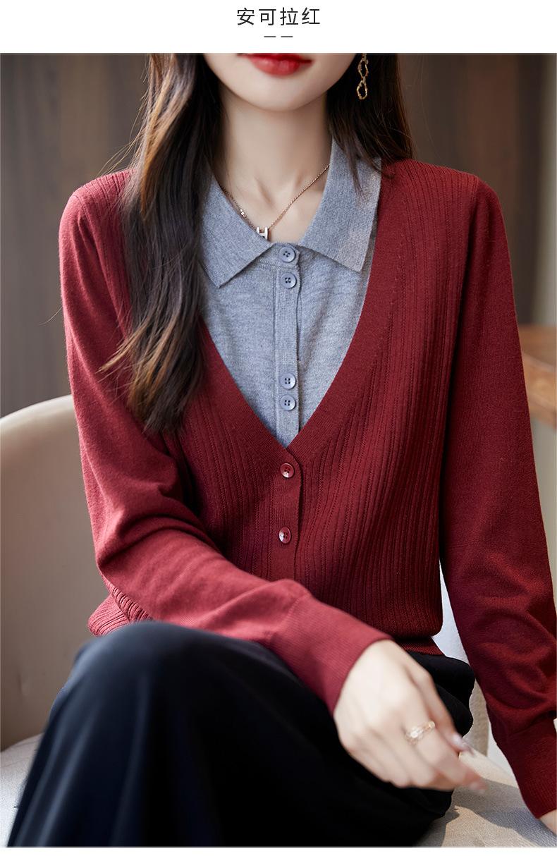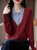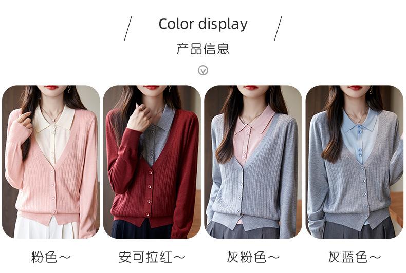 Suéter coreano de dos piezas con estampado de bloques de color para mujer, chaqueta de punto estilo occidental, otoño e invierno 2024