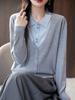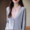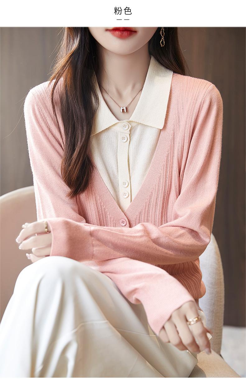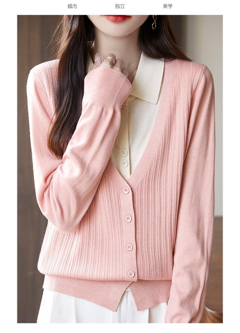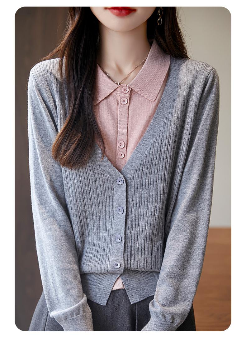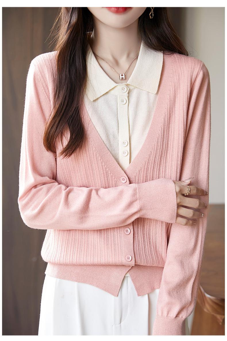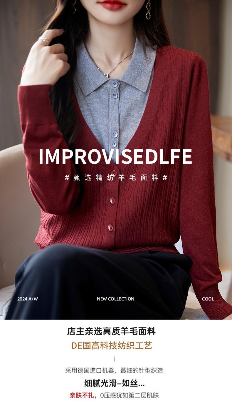 Suéter coreano de dos piezas con estampado de bloques de color para mujer, chaqueta de punto estilo occidental, otoño e invierno 2024