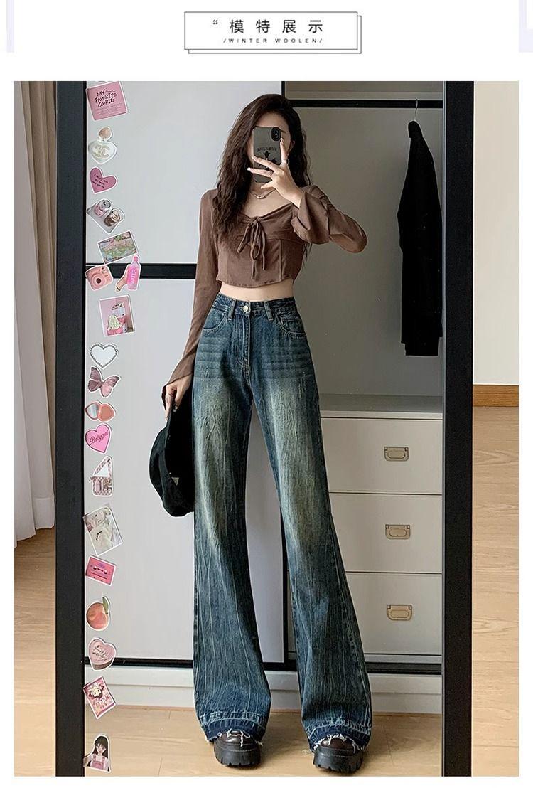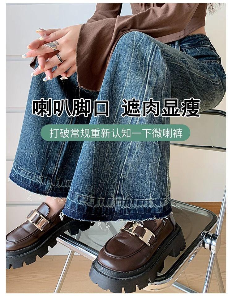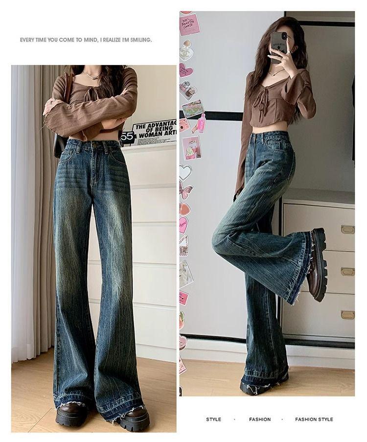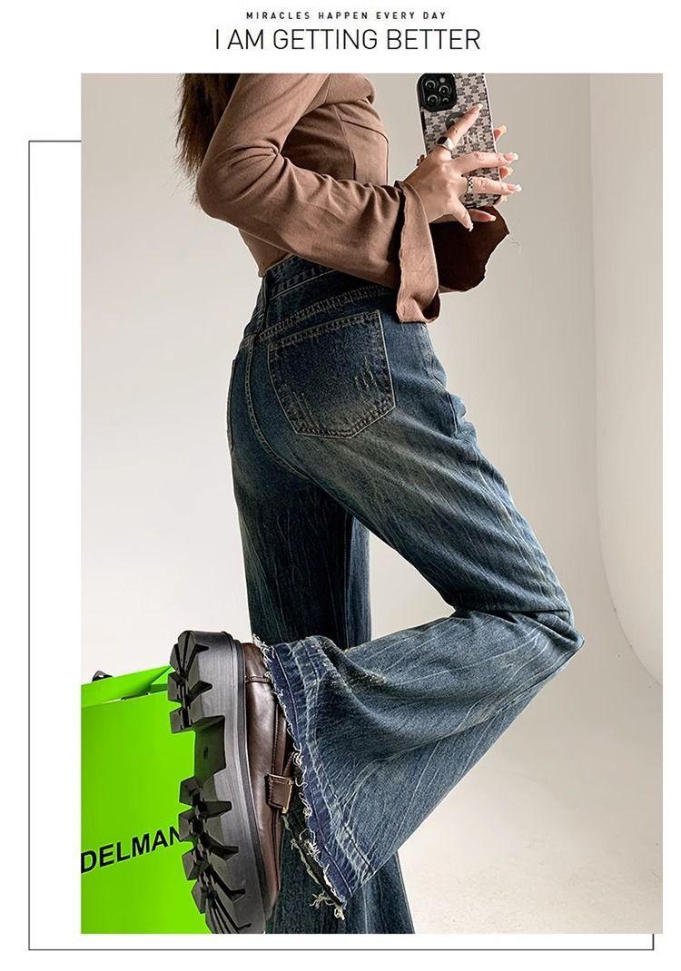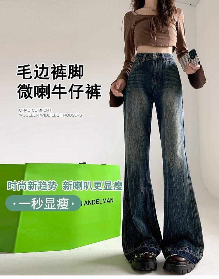 Pantalones vaqueros micro acampanados con diseño de calle Sense Rake para mujer, de primavera y otoño, estilo retro, de cintura alta, adelgazantes, con pernera ancha.