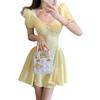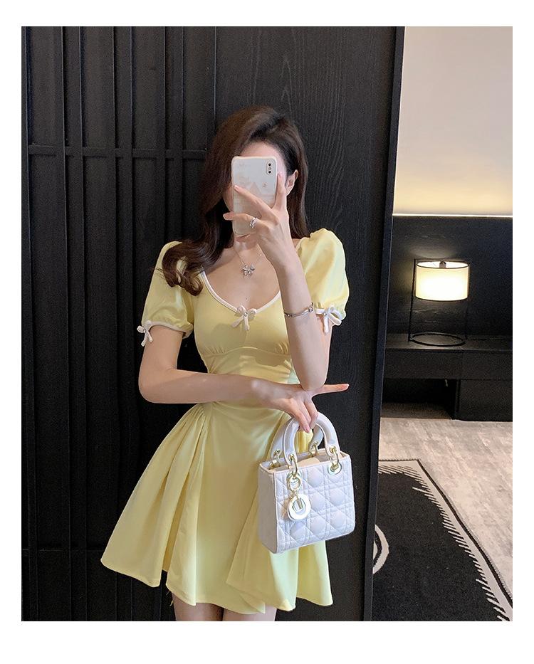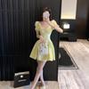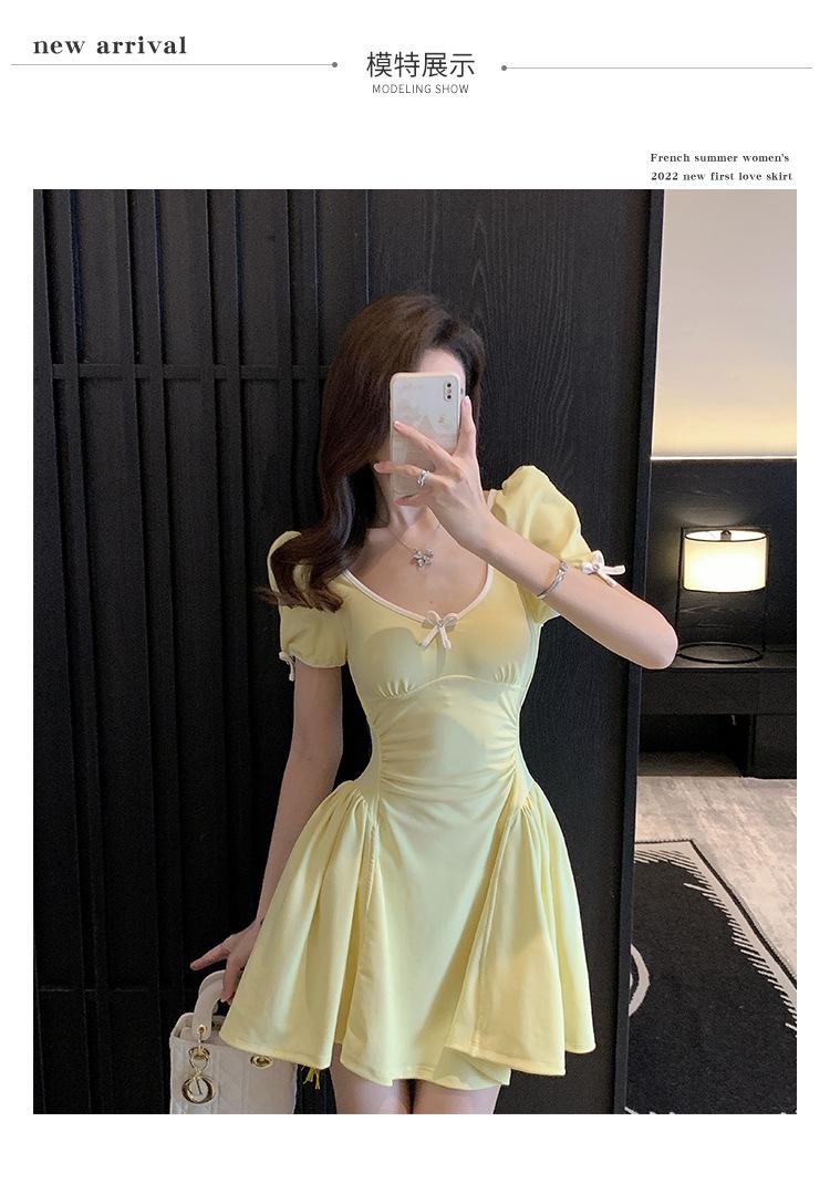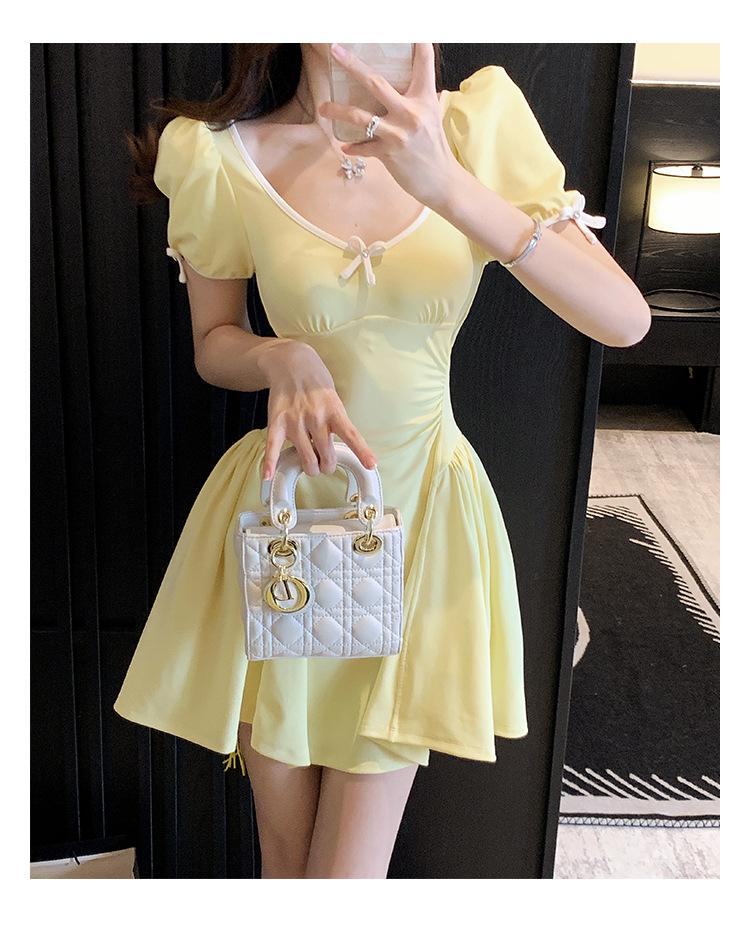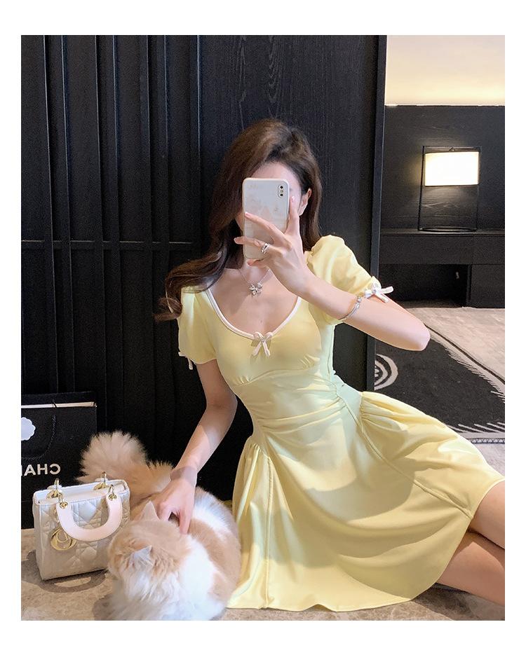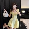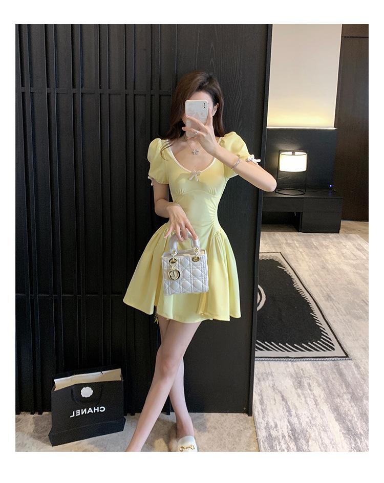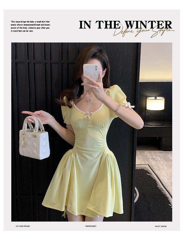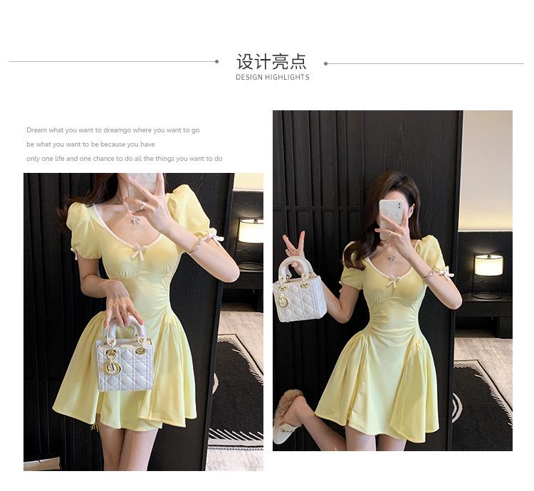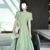 Vestido francés con mangas abullonadas, verano 2025, nuevo vestido para mujer, elegante, de moda, con cintura ajustada y falda adelgazante.