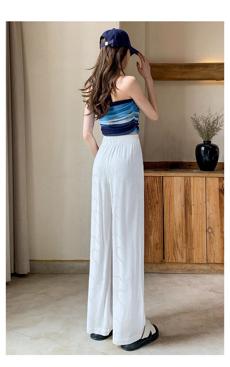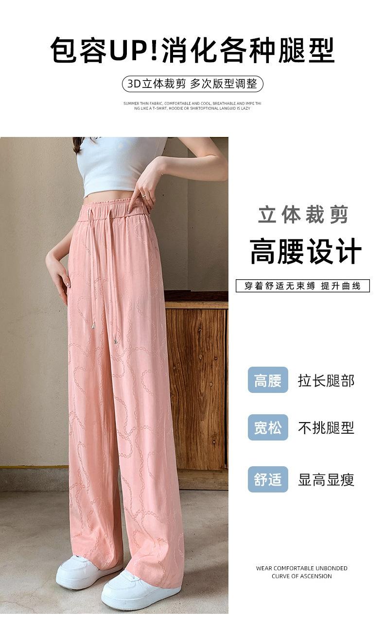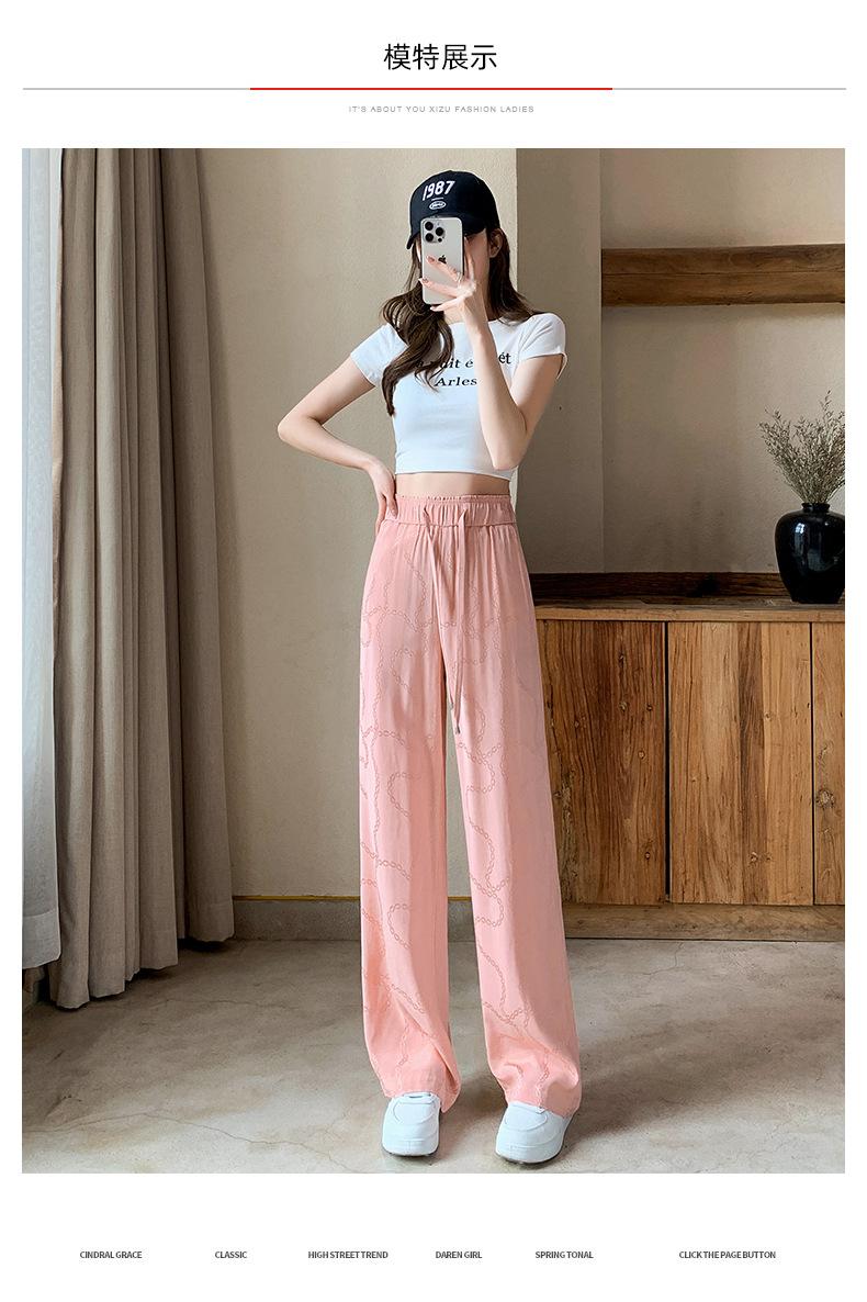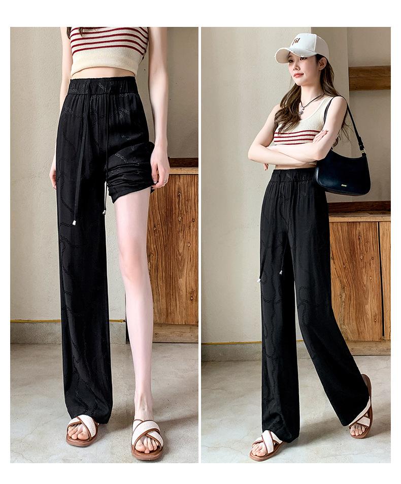 Pantalones de mujer de alta gama con sensación de caída, temperamento delgado, cintura alta, pierna ancha, pantalones casuales de verano 2025, versión estrecha, A3217
