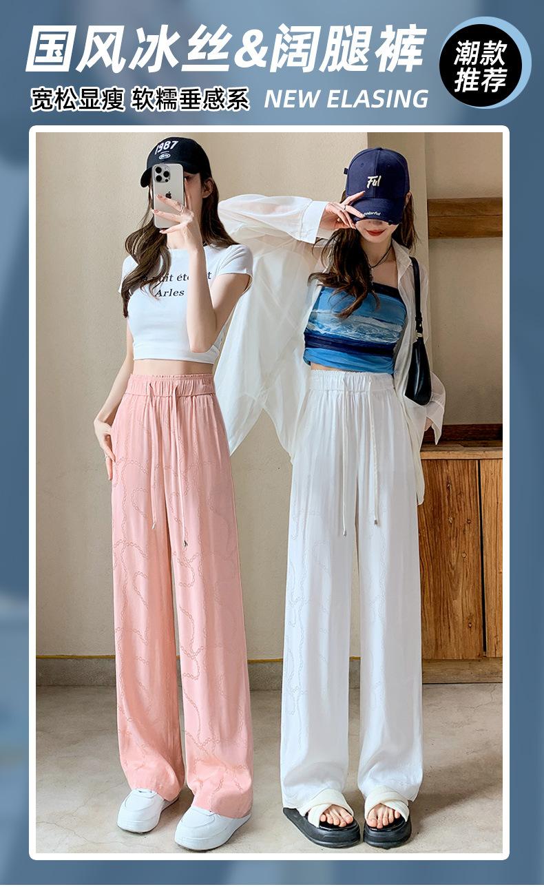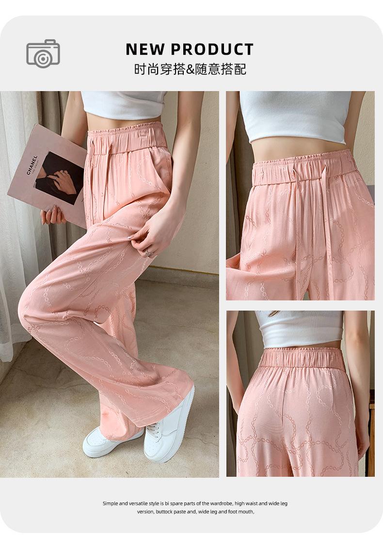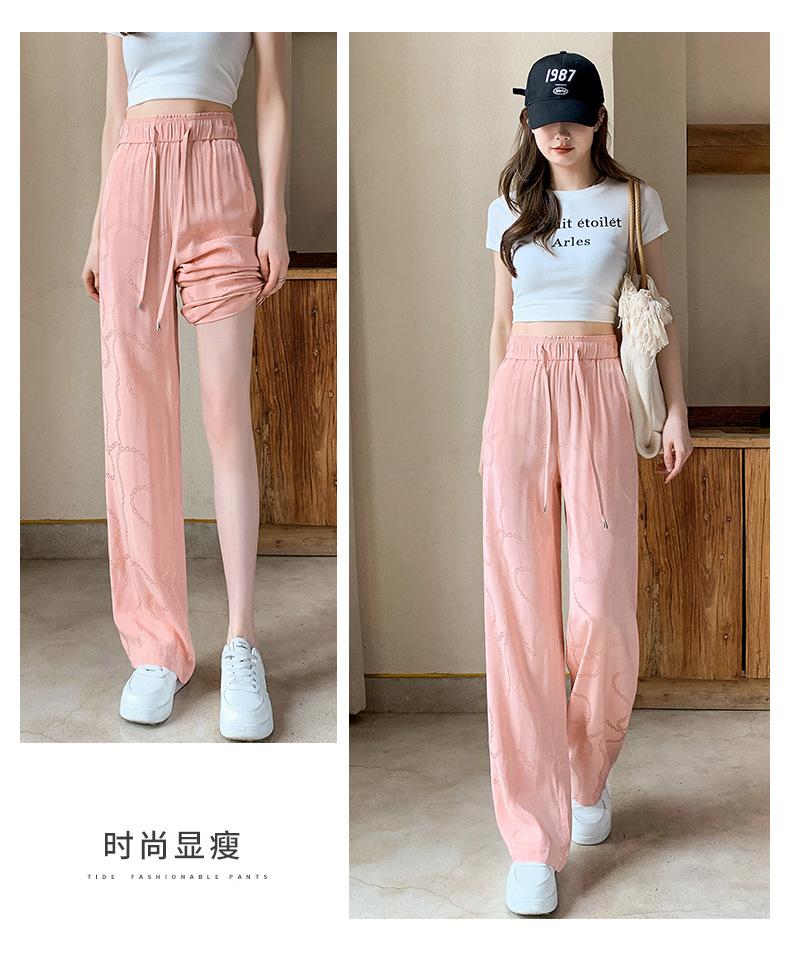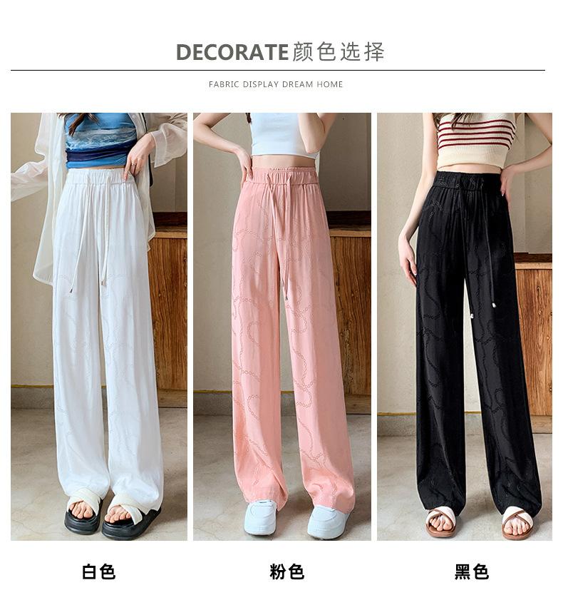 Pantalones de mujer de alta gama con sensación de caída, temperamento delgado, cintura alta, pierna ancha, pantalones casuales de verano 2025, versión estrecha, A3217