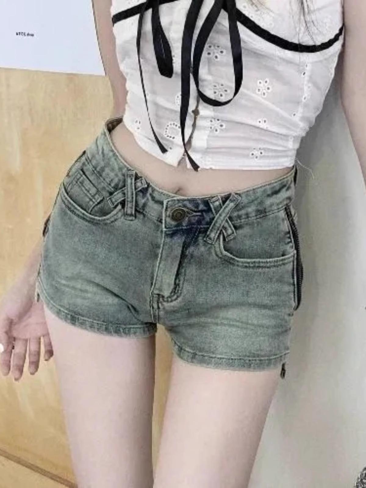 Pantalones cortos vaqueros vintage con cremallera lateral para mujer, verano 2025, de Pure Spice Girl, ajustados y ajustados.