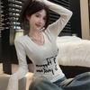 Camiseta de manga larga cruzada con cuello en V Sense de Niche Design para mujer, de primavera y otoño, ajustada, adelgazante, estilo Spice Girls Pure Desire Fashion Top Ins
