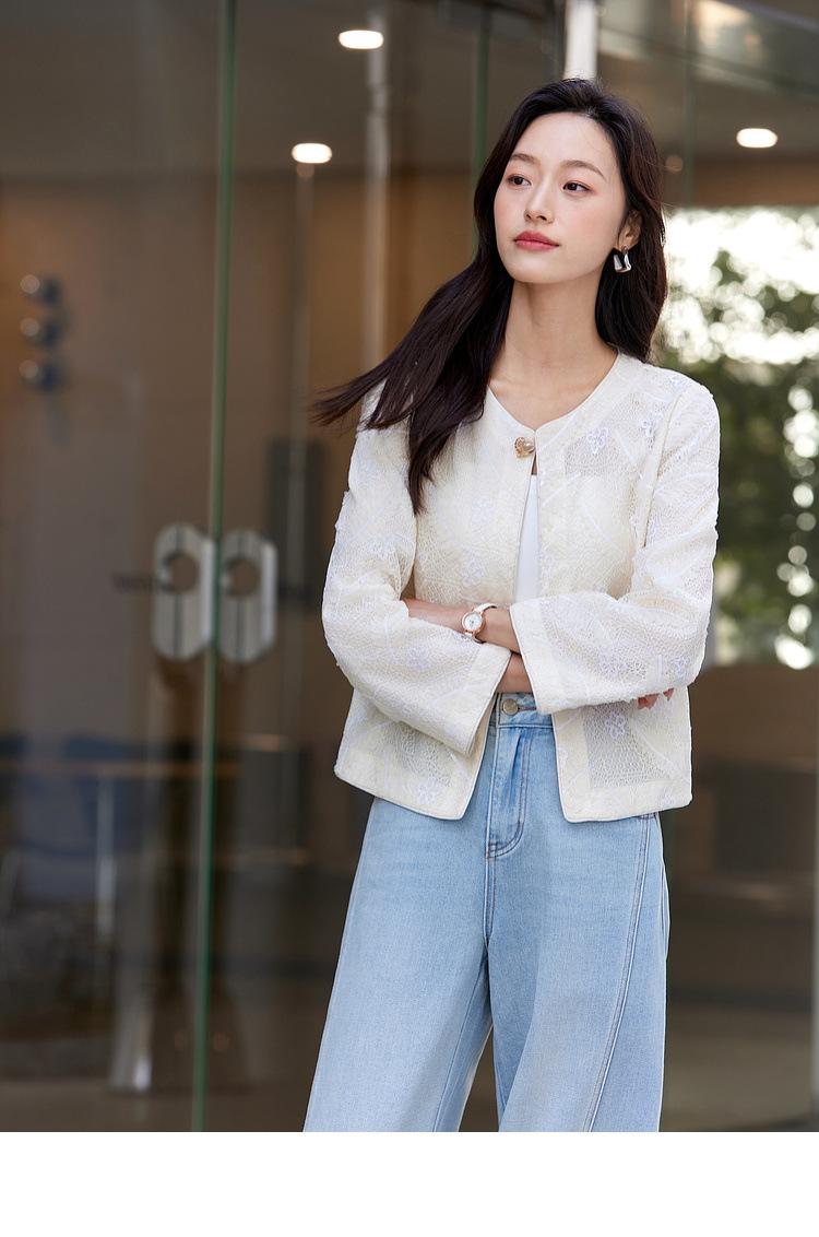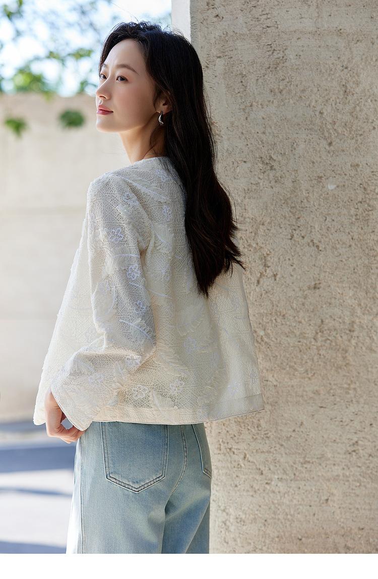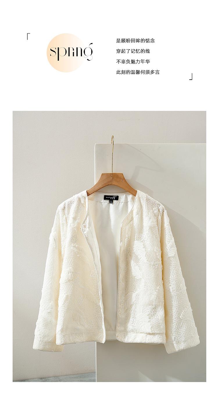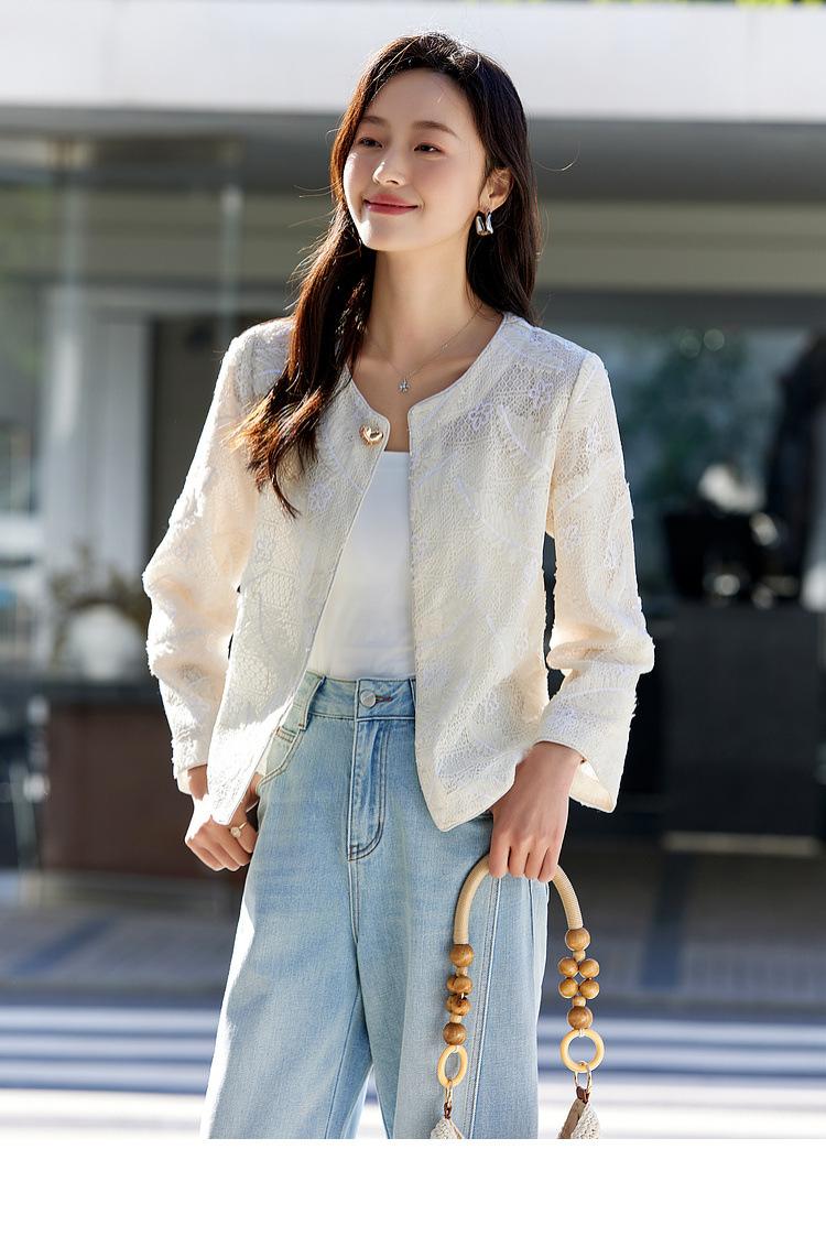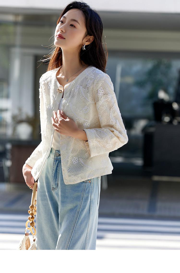Zhen Xi Nuevo Abrigo Corto Casual Recto de Encaje Bordado con Lentejuelas de Moda para Mujer de Manga Larga y Cuello Redondo CQ531