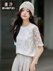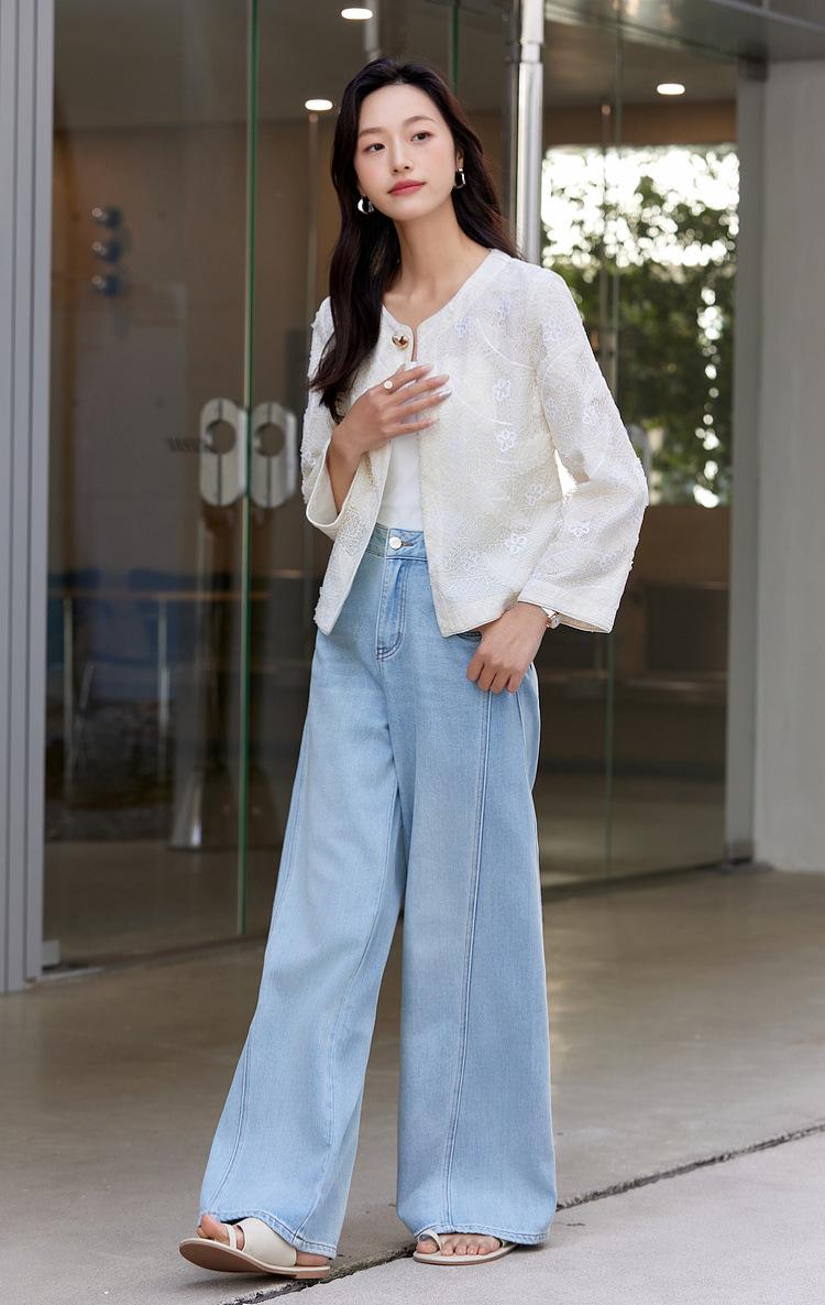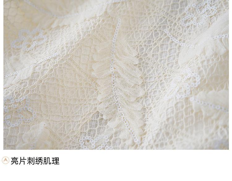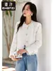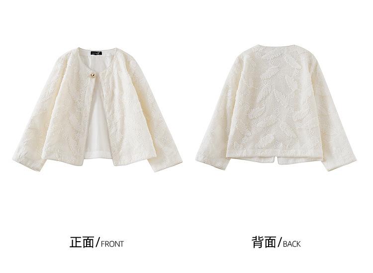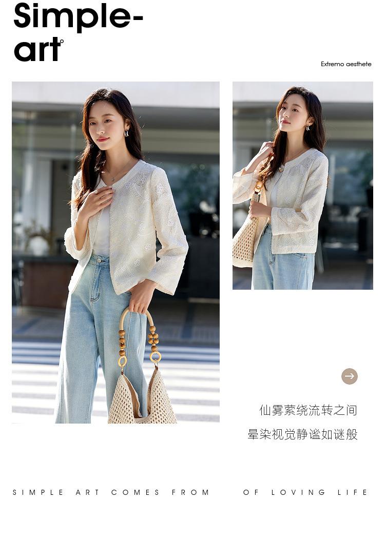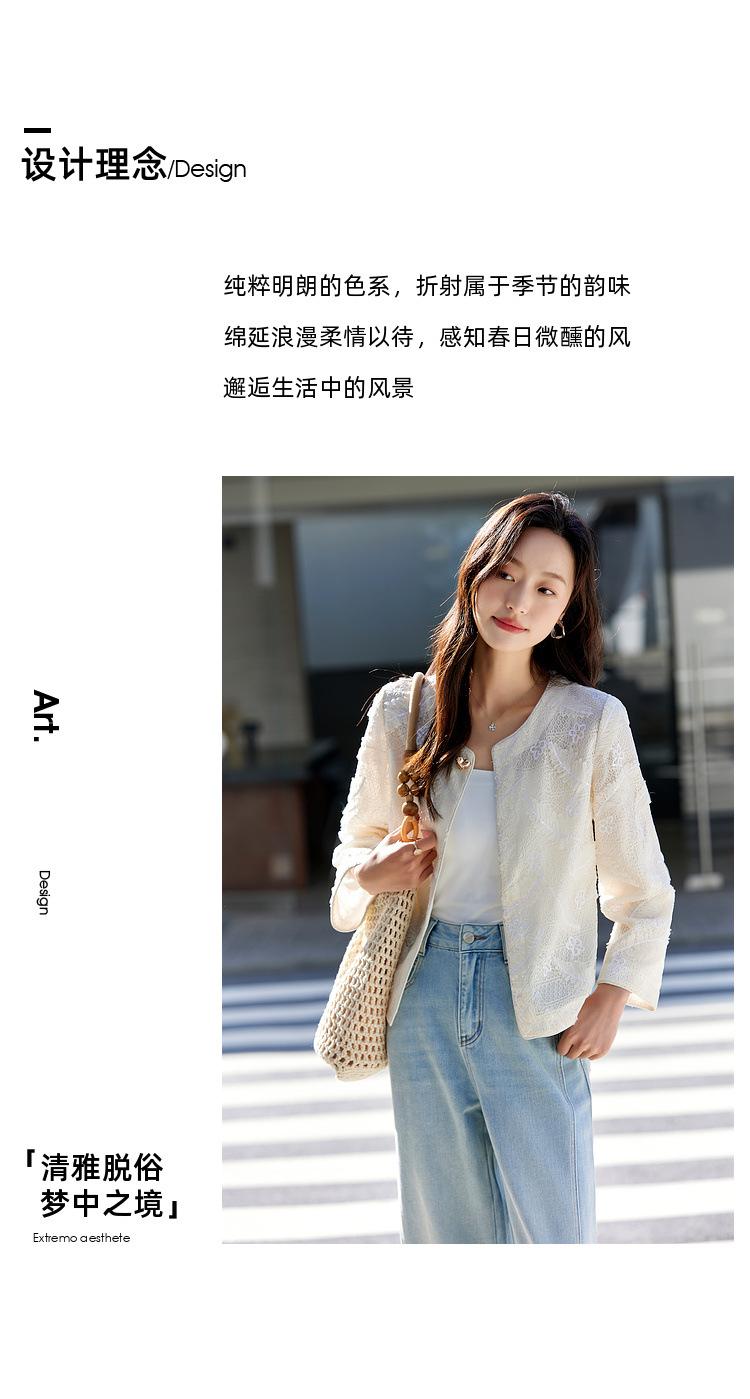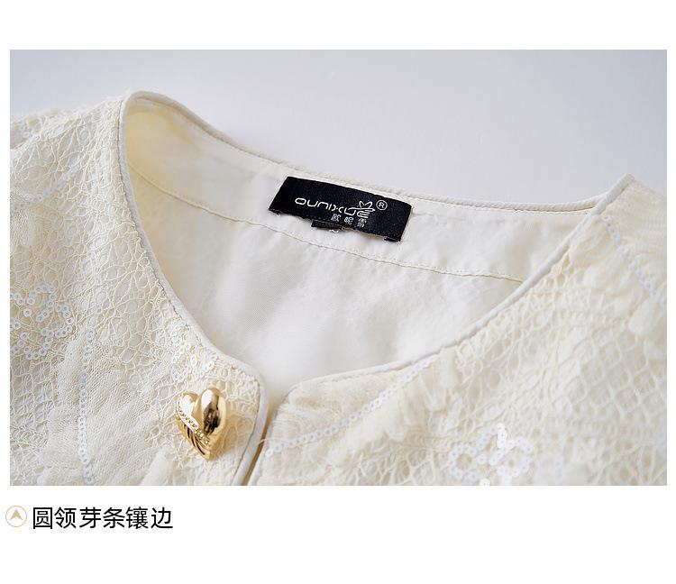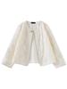 Zhen Xi Nuevo Abrigo Corto Casual Recto de Encaje Bordado con Lentejuelas de Moda para Mujer de Manga Larga y Cuello Redondo CQ531