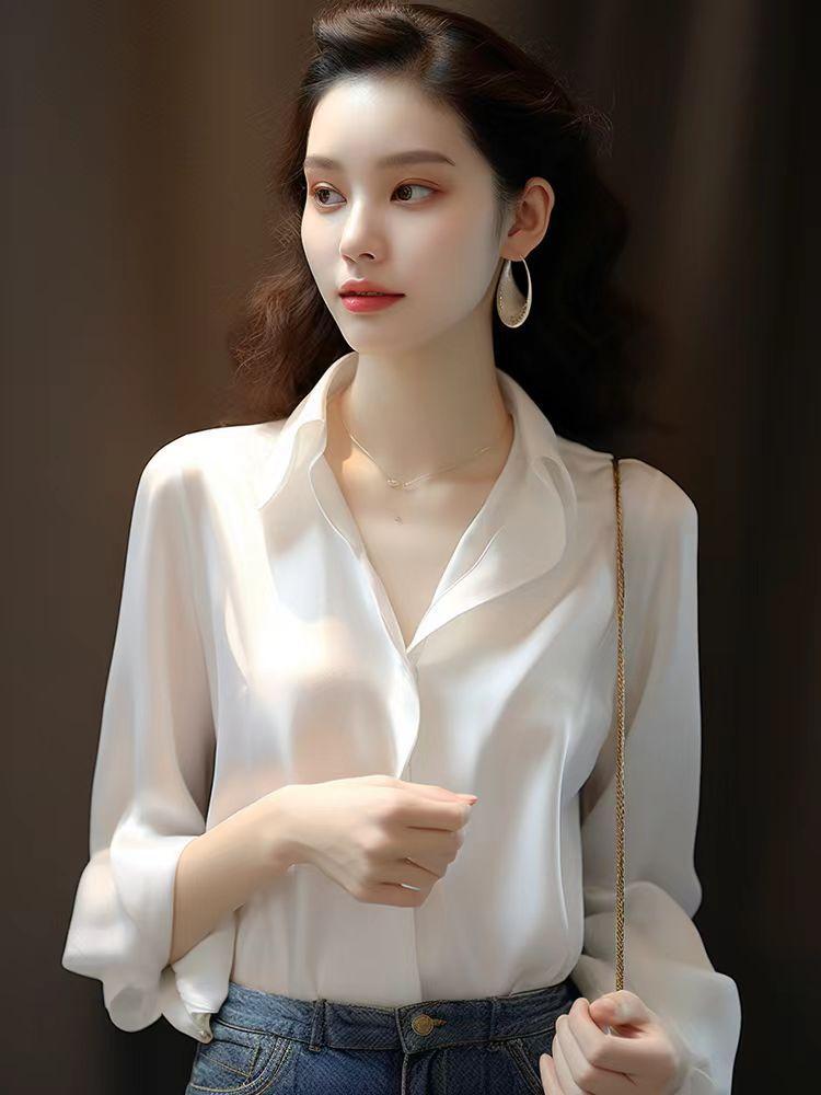 Camisa blanca estilo coreano elegante y relajada de primavera para mujer, camisa blanca estilo francés para mujer.