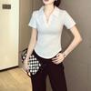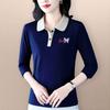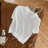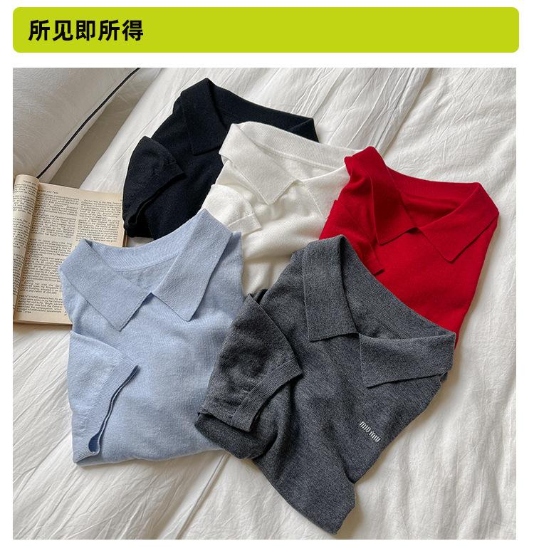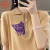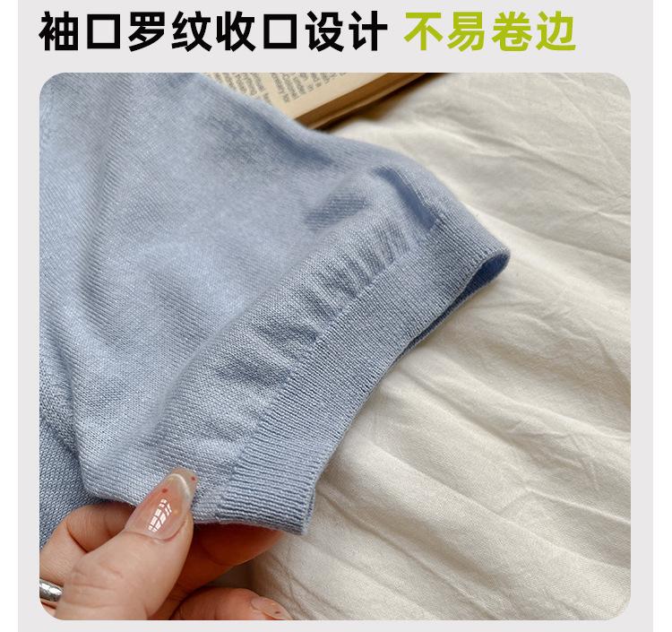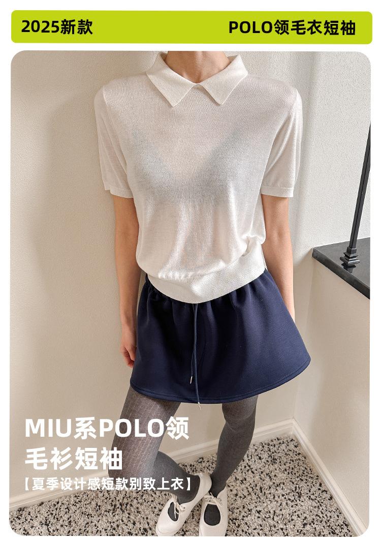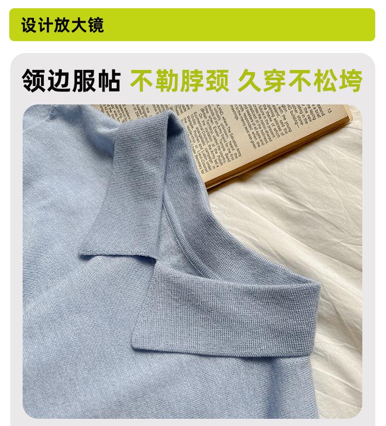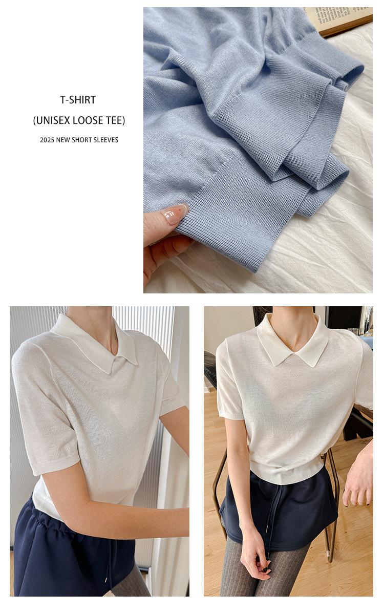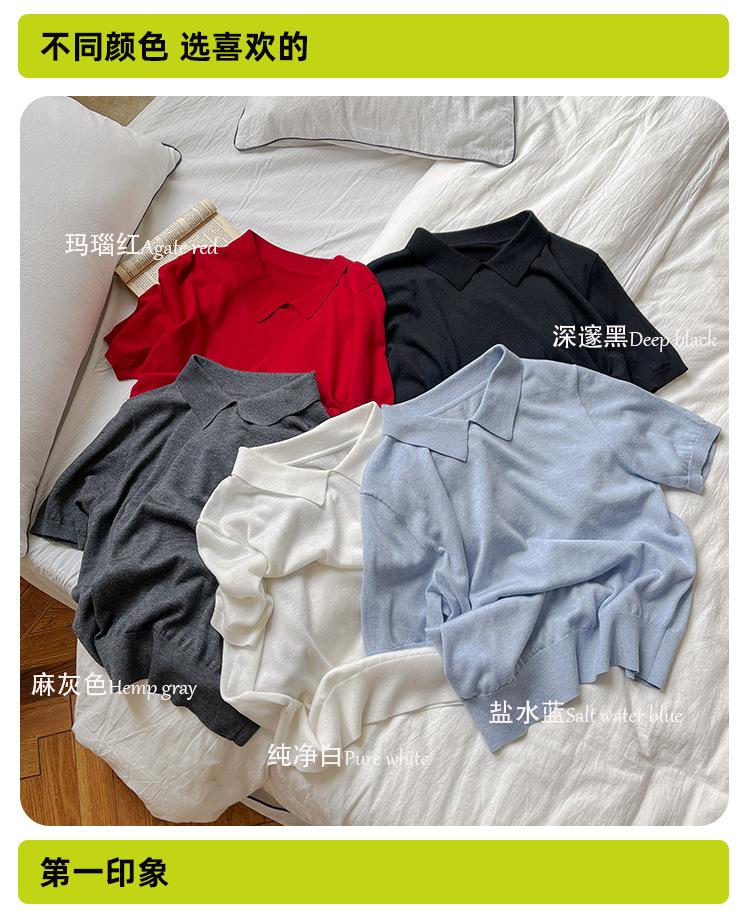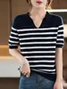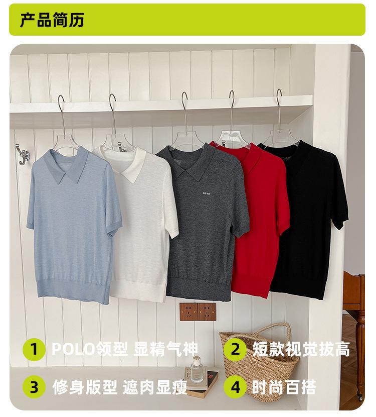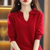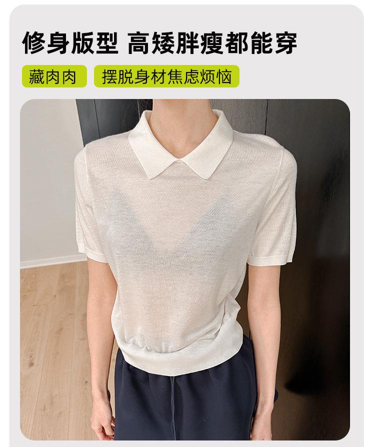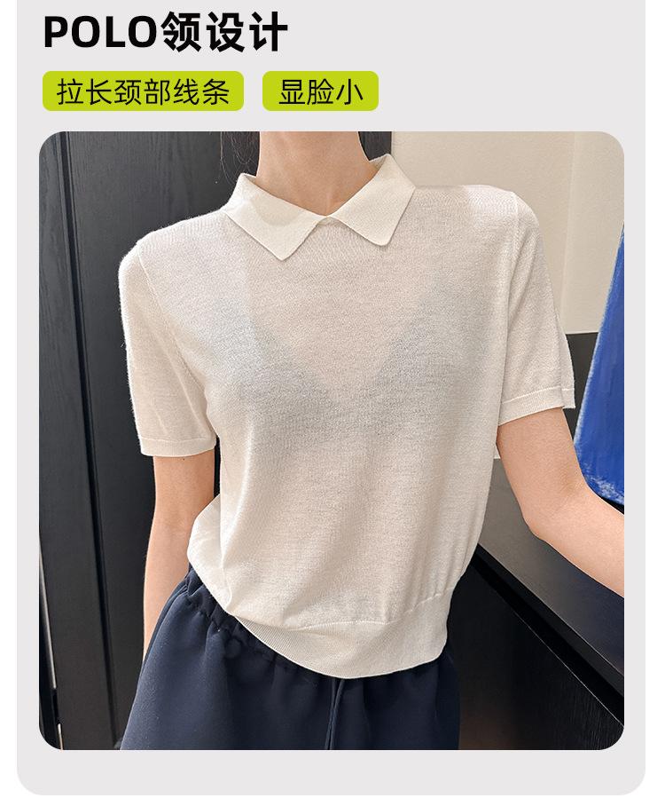 Suéter Polo de Primavera Camiseta de Manga Corta Lana de Seda para Mujer Suave Amigable con la Piel Transpirable Ropa Interior Top para Mujer