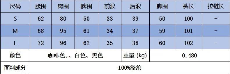 White top, Black top, Brown top, White pants, Black pants, Brown pants