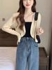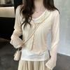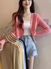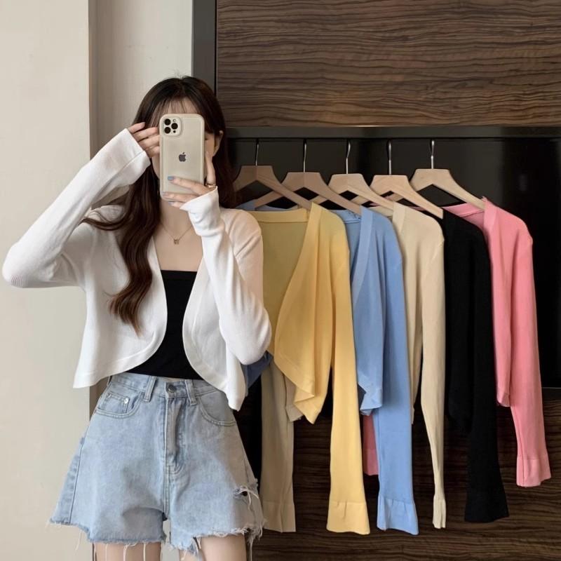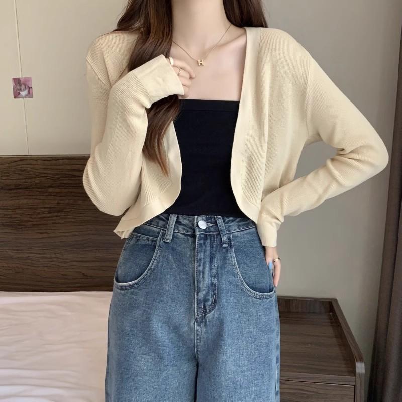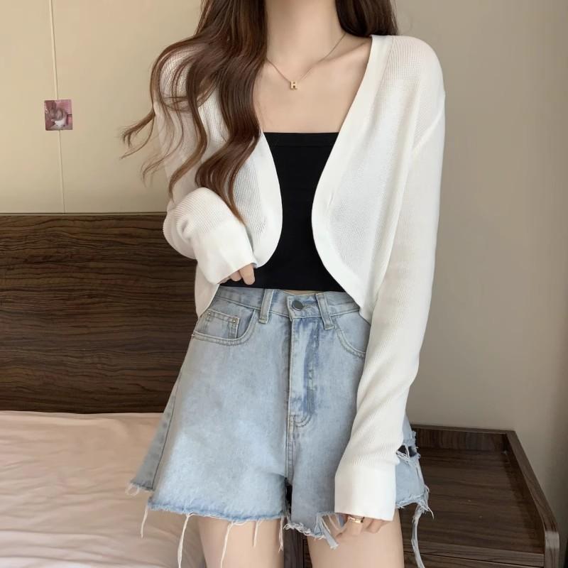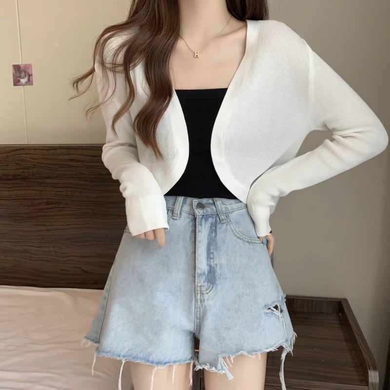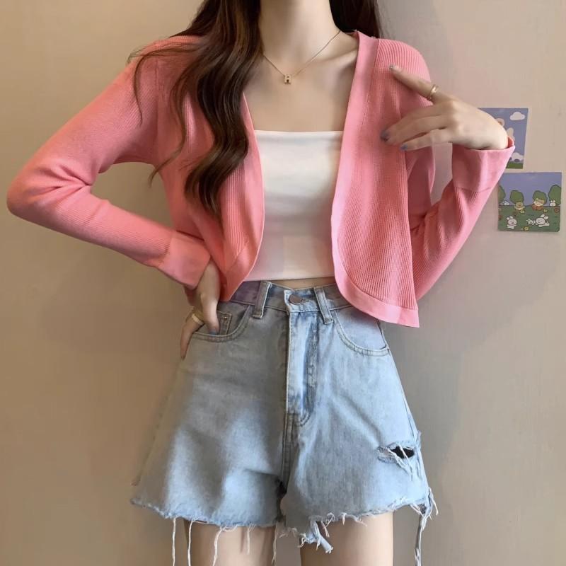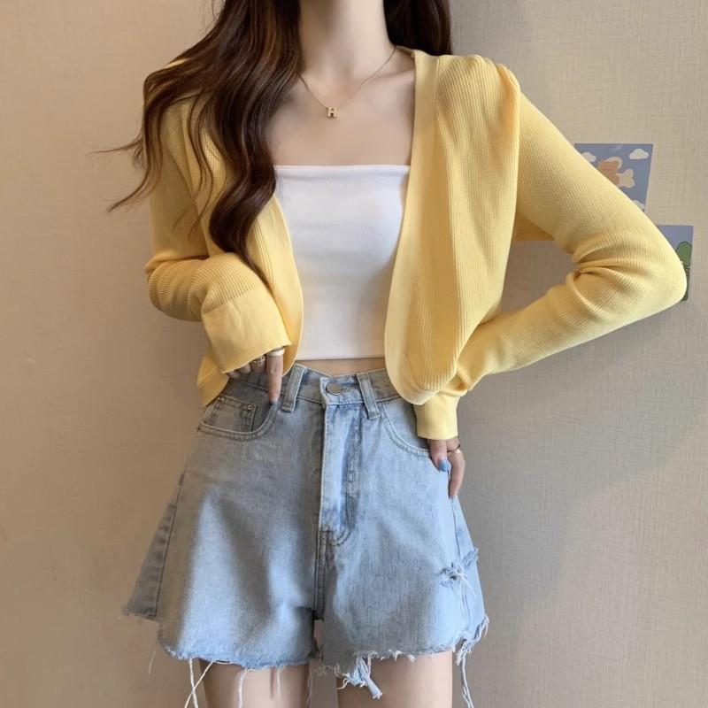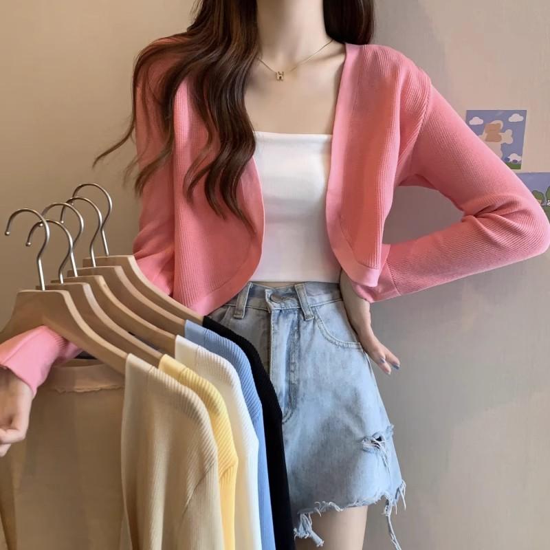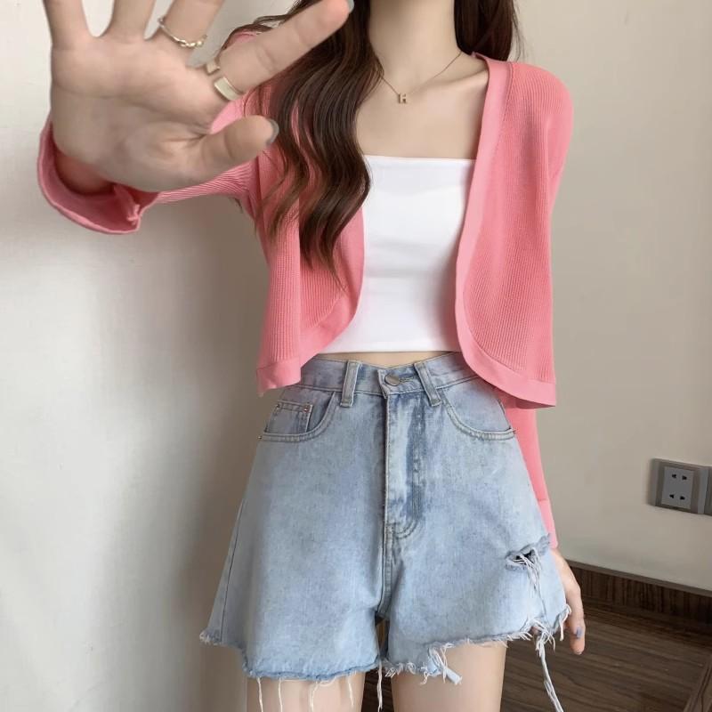 Cárdigan de punto de seda helada de verano para mujer, con protección solar, fino, con tirantes, holgado, exterior, corto, de manga larga, pequeño chaleco.
