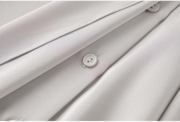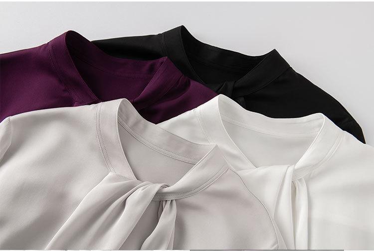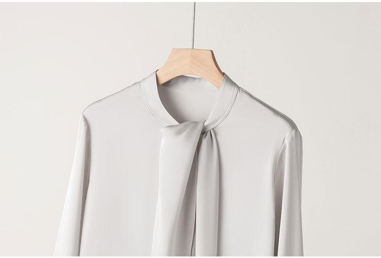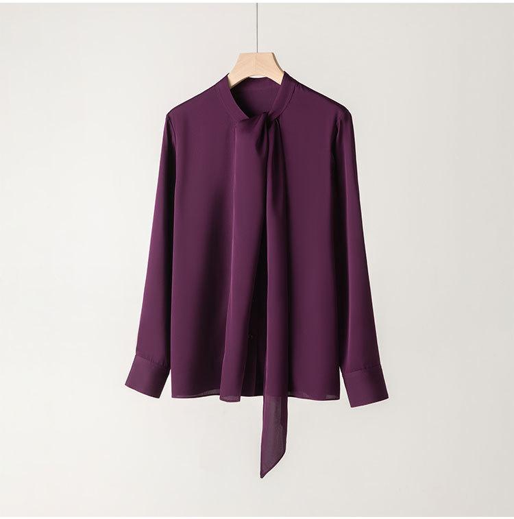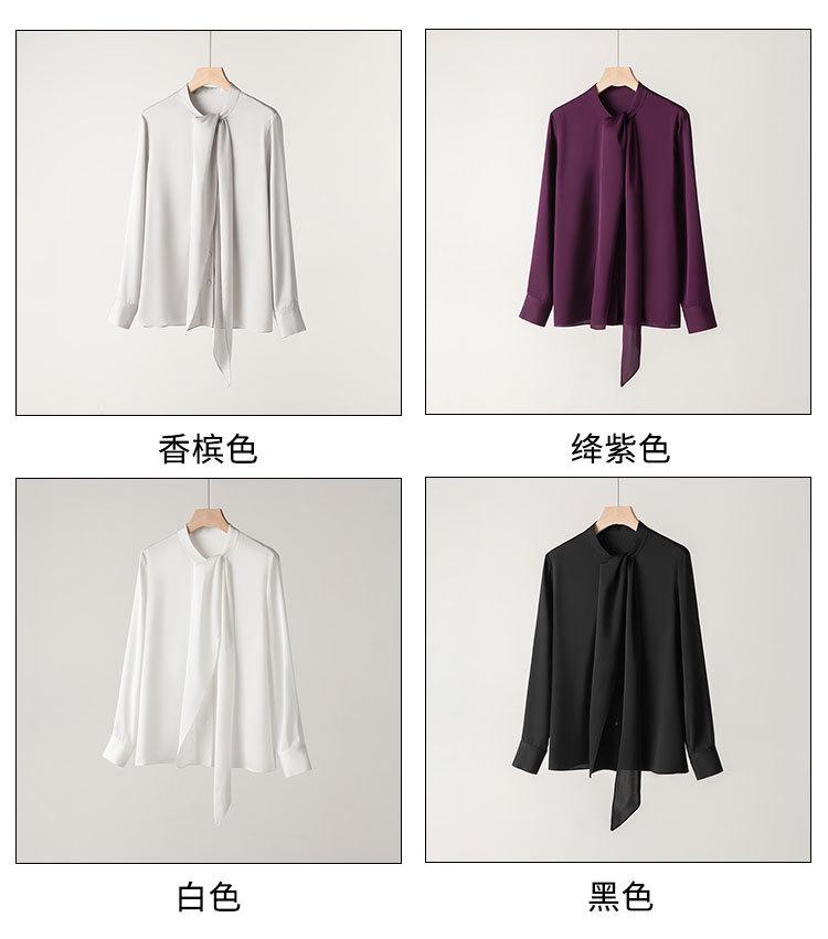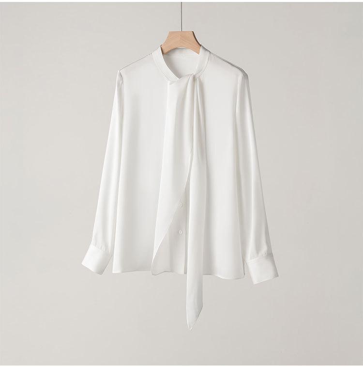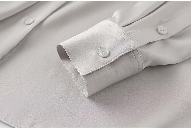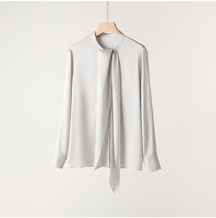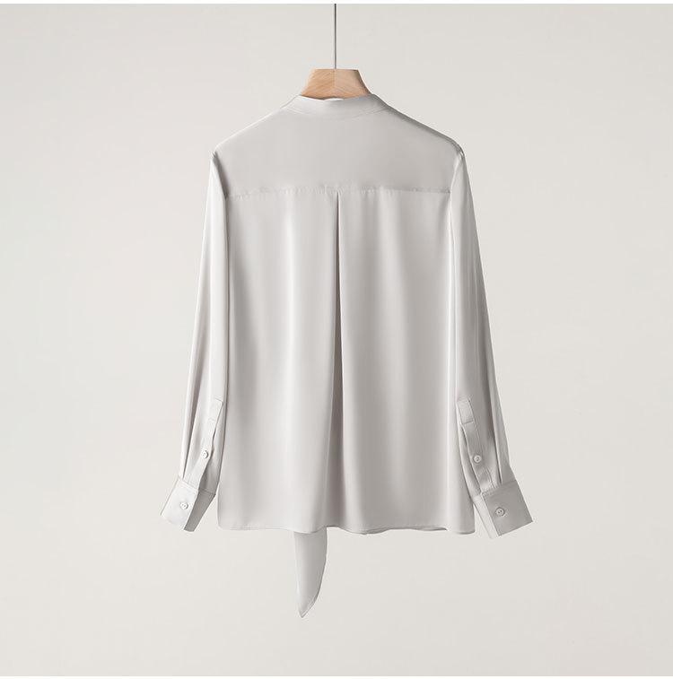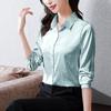 Camisa de seda nueva primavera 2025 para mujer, camisa de seda morera de manga larga, blusa elegante y adelgazante de color liso para uso diario.