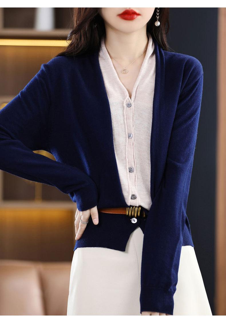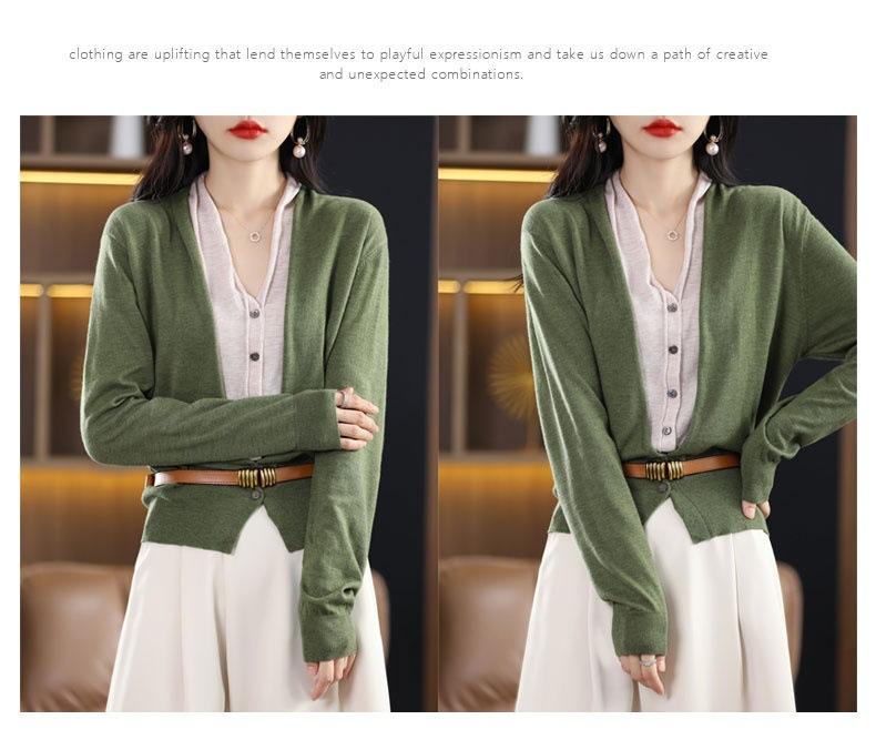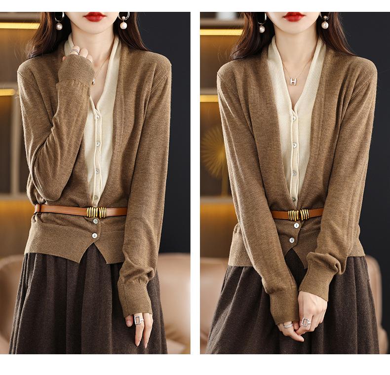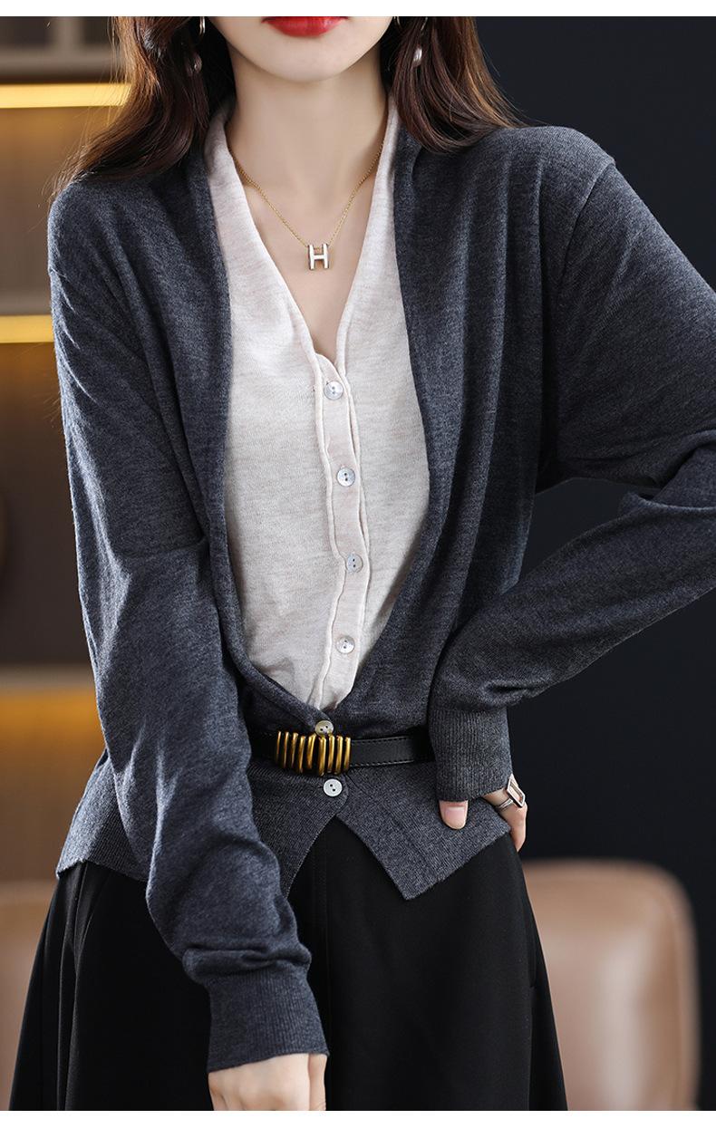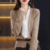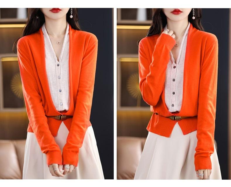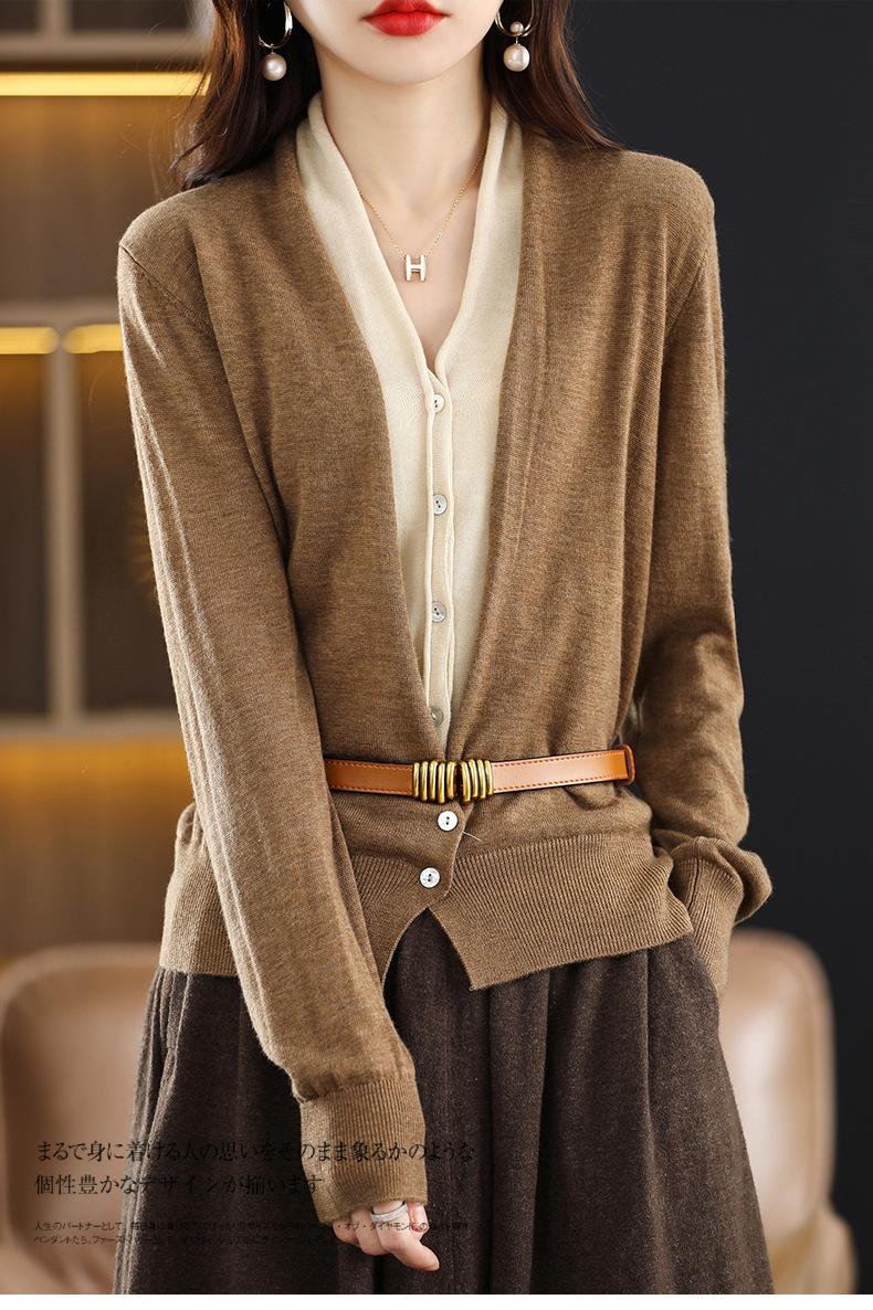 Cárdigan de punto de dos piezas con cuello en V para mujer, suéter elegante corto de punto fino y a la moda para primavera y otoño.
