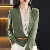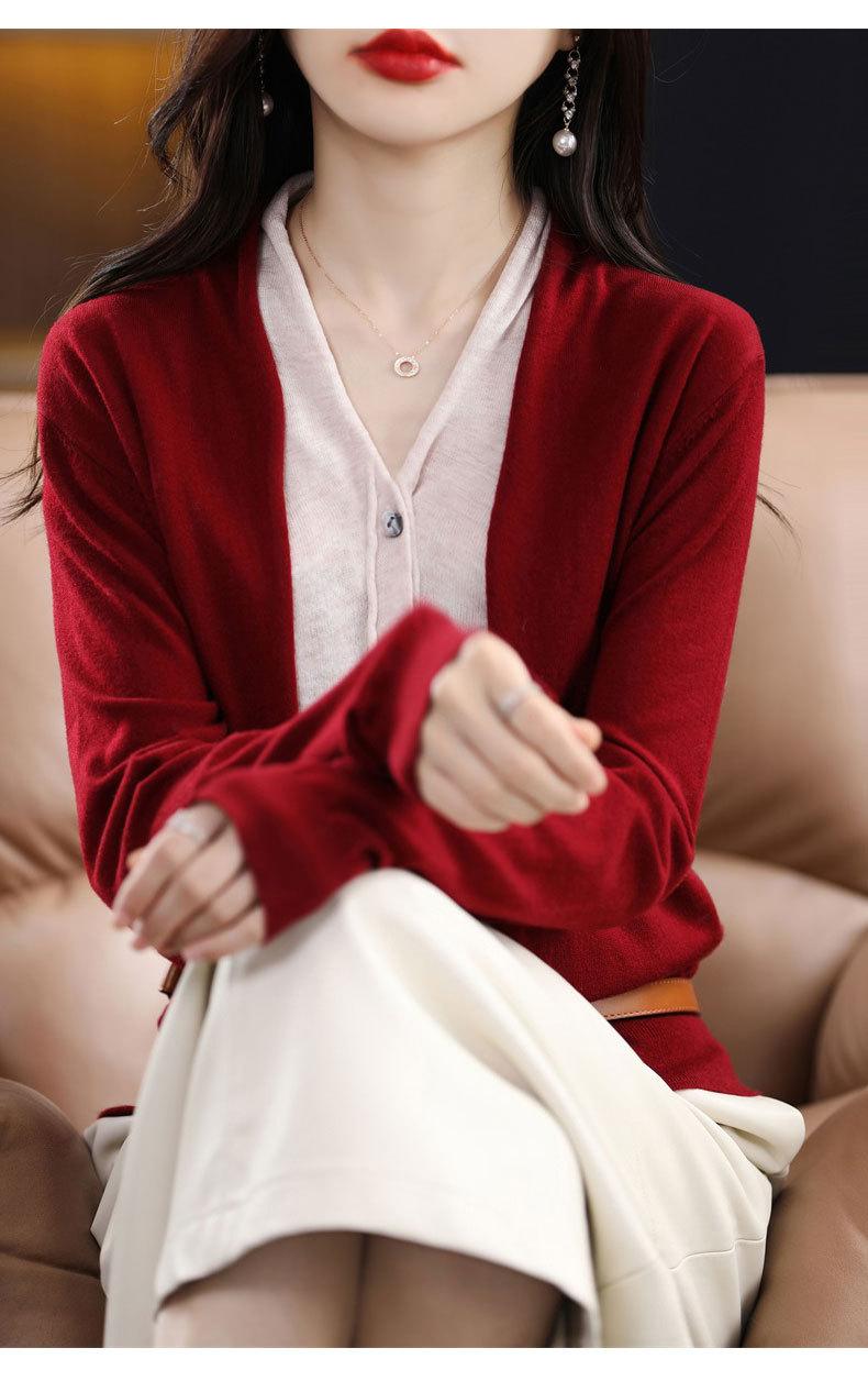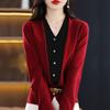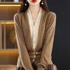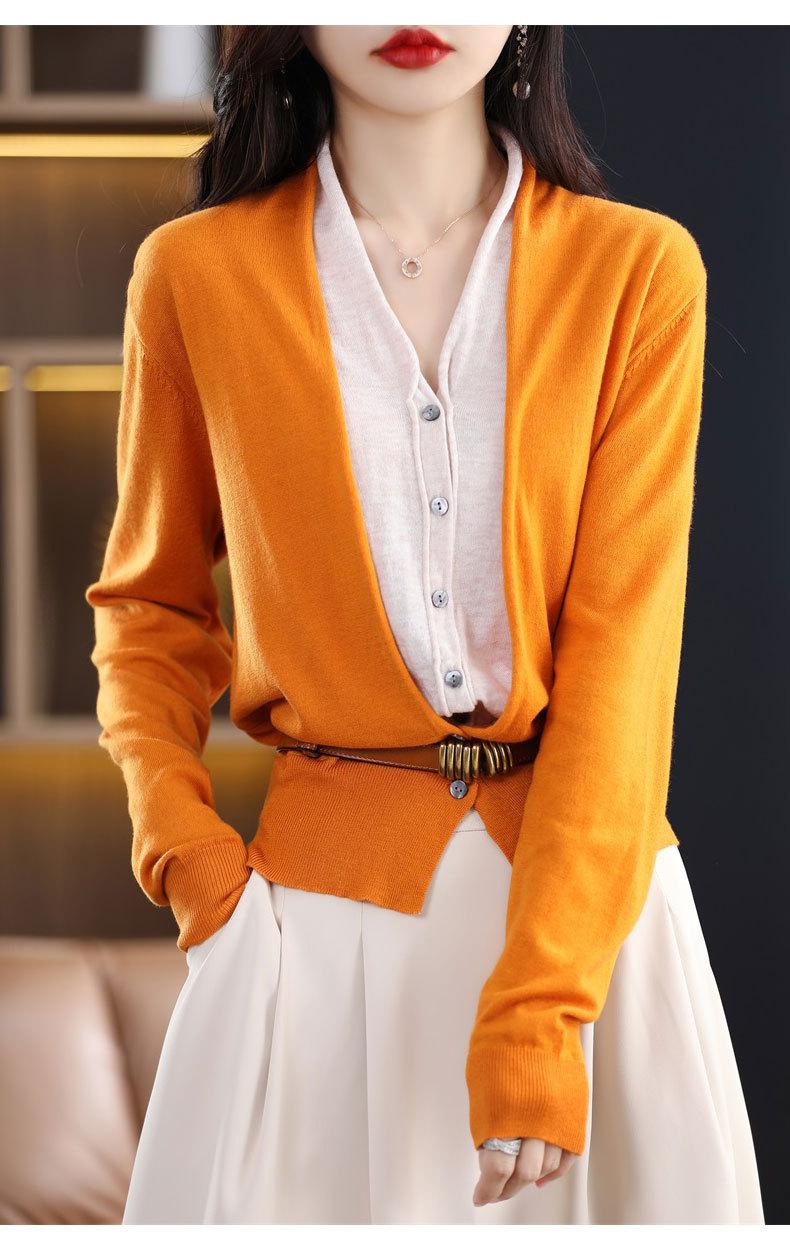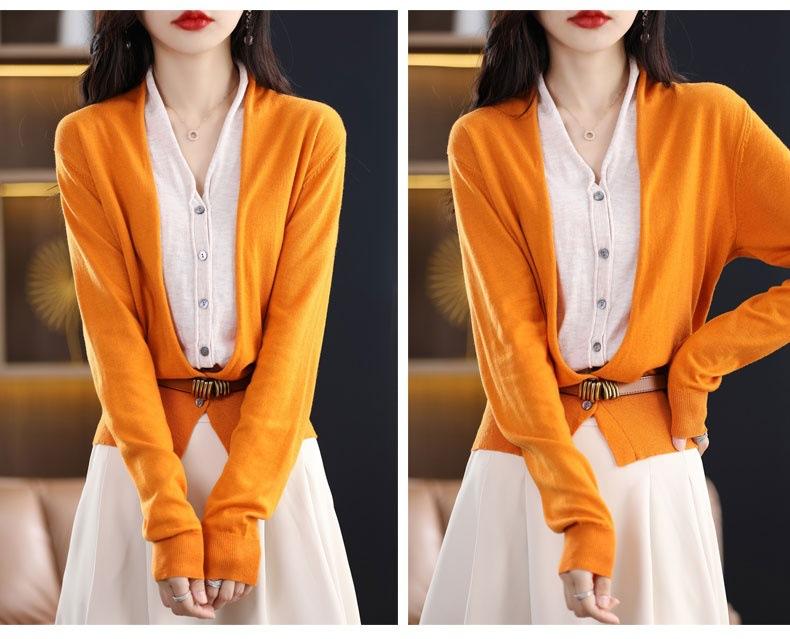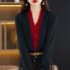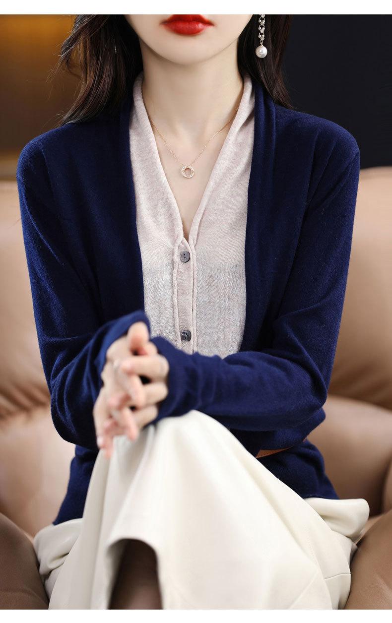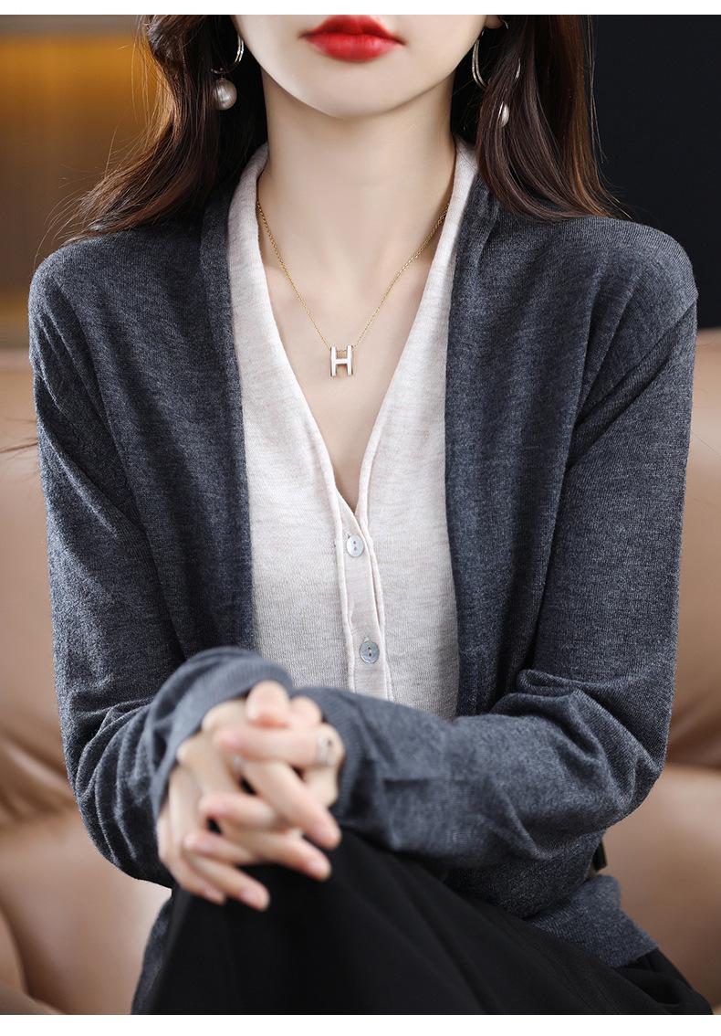 Cárdigan de punto de dos piezas con cuello en V para mujer, suéter elegante corto de punto fino y a la moda para primavera y otoño.