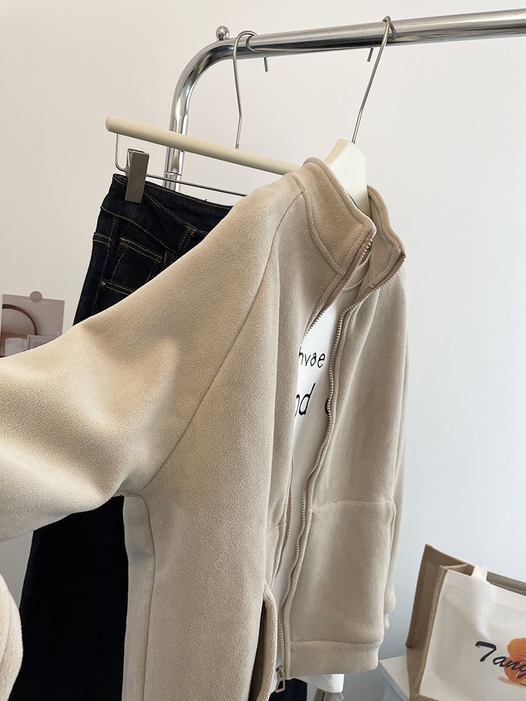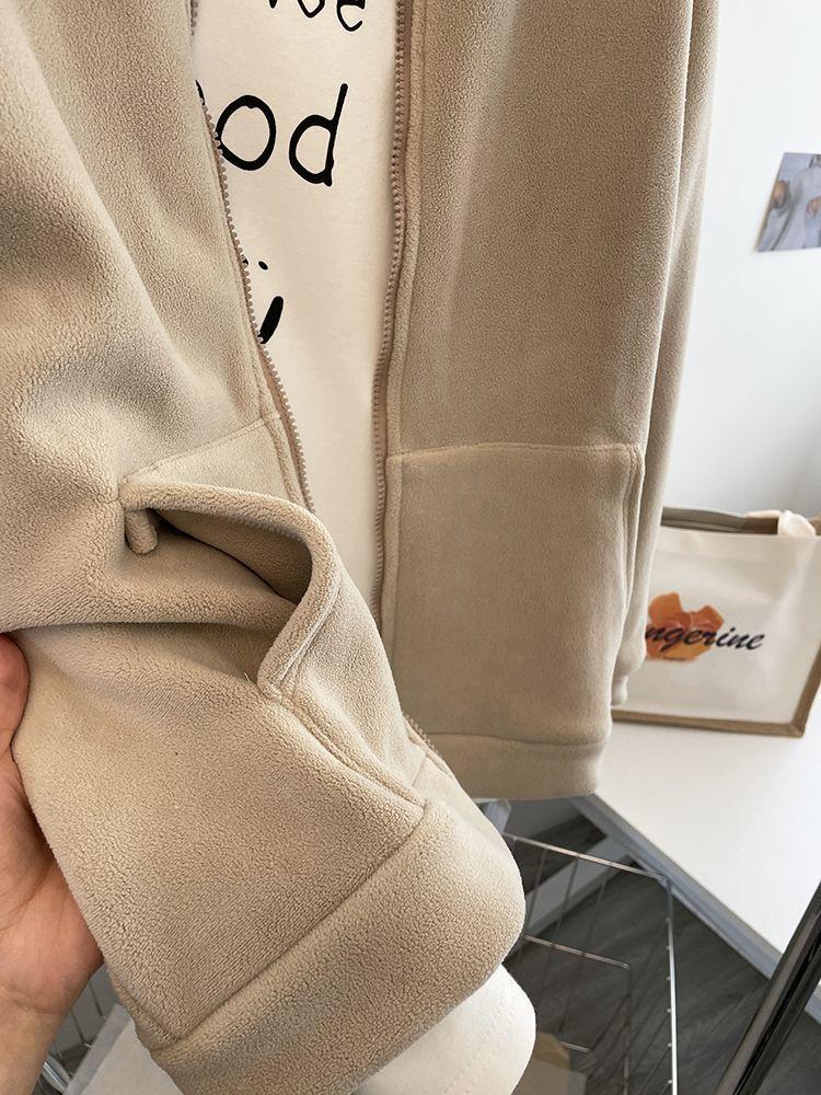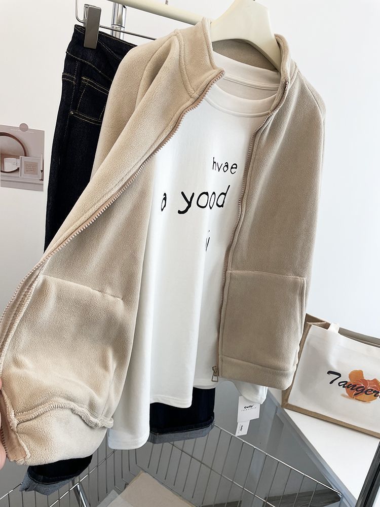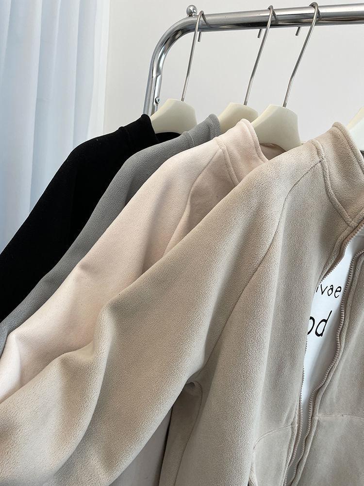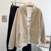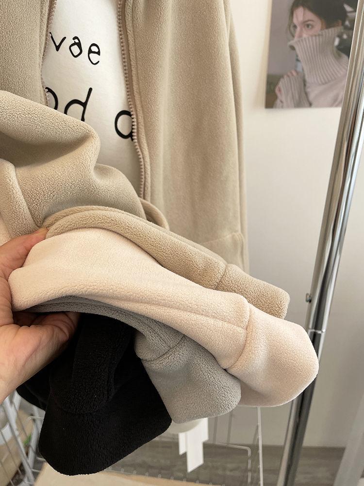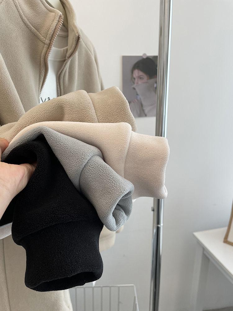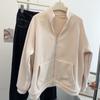 Chaqueta tipo suéter de terciopelo doble con cuello cálido y cremallera para mujer, otoño e invierno, forro polar, cárdigan informal holgado de polar