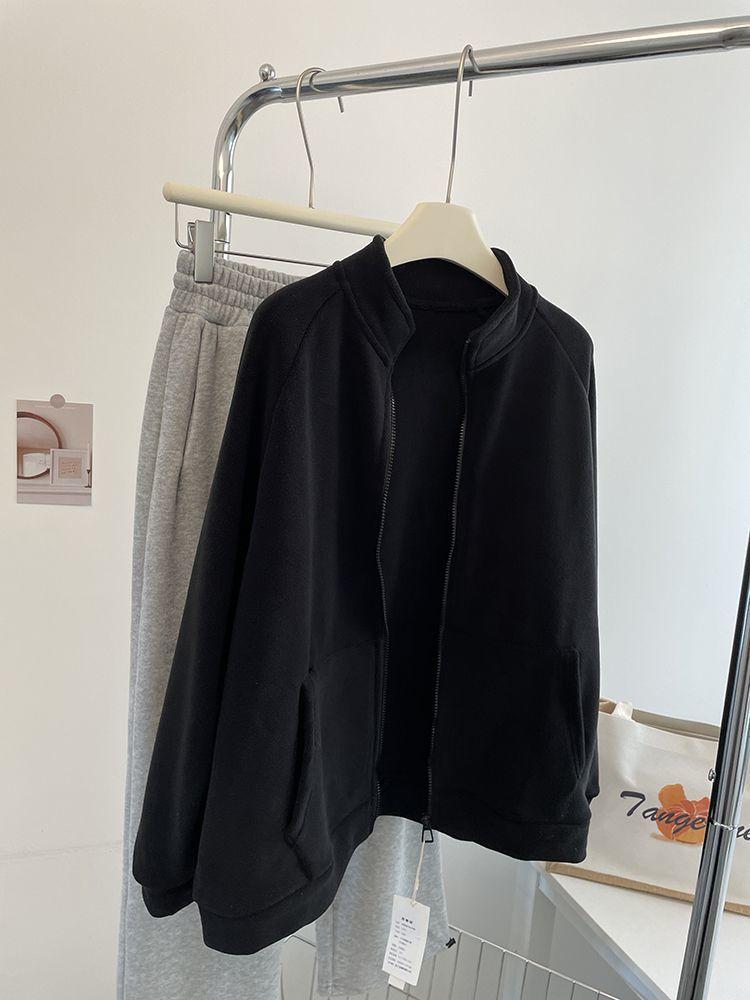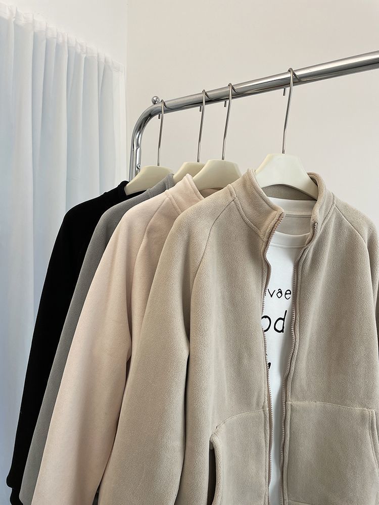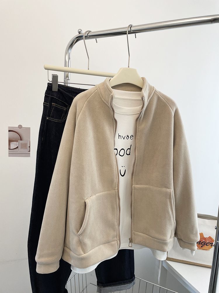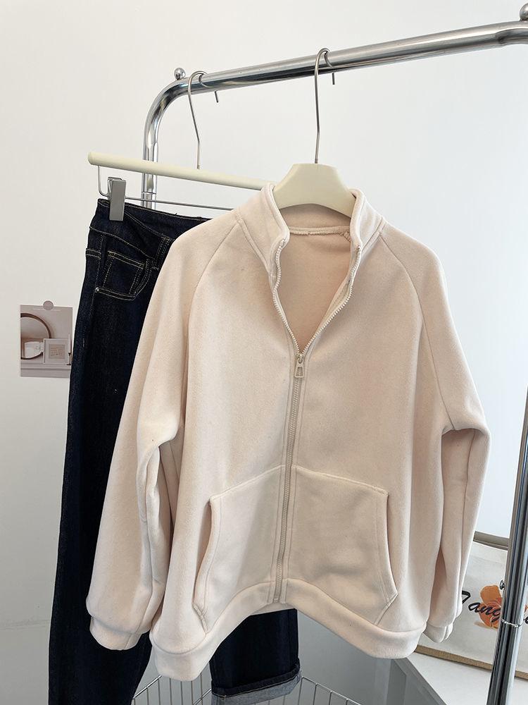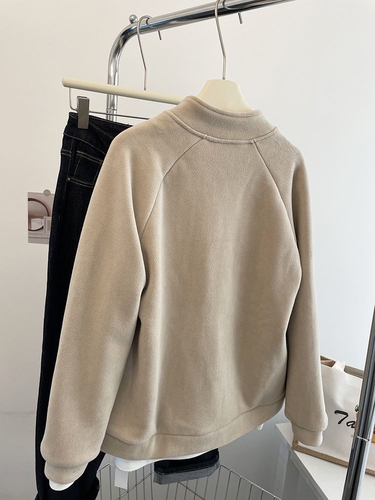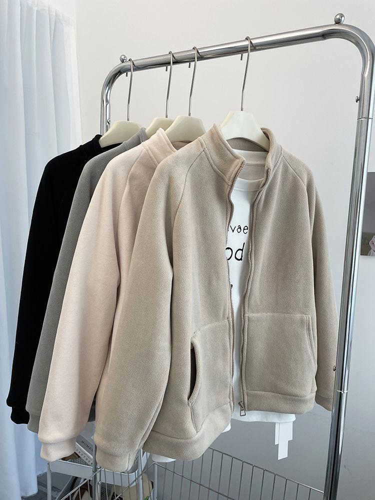 Chaqueta tipo suéter de terciopelo doble con cuello cálido y cremallera para mujer, otoño e invierno, forro polar, cárdigan informal holgado de polar