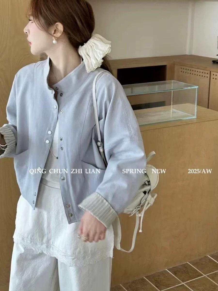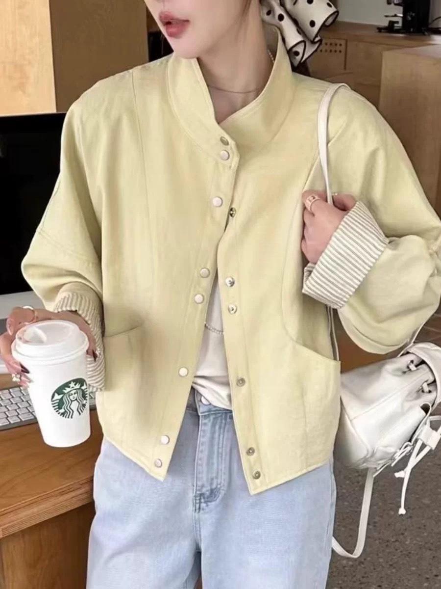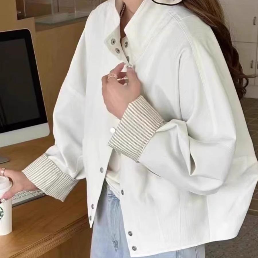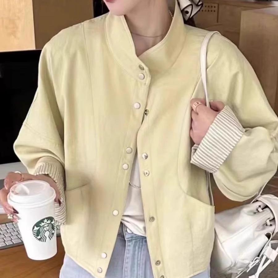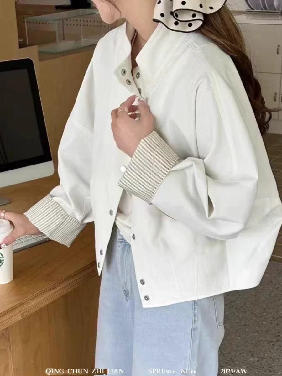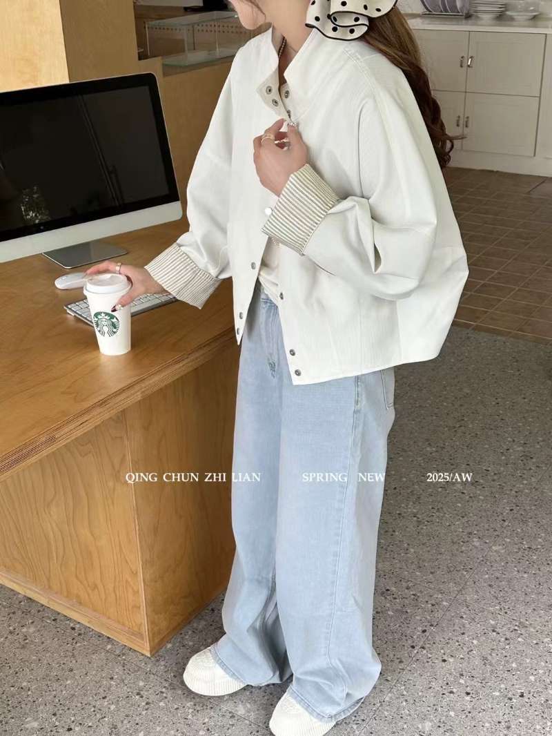 Coreano "sentido del diseño puños cosidos cuello a rayas uniforme de béisbol abrigo corto de mujer 2025 primavera nuevo abrigo