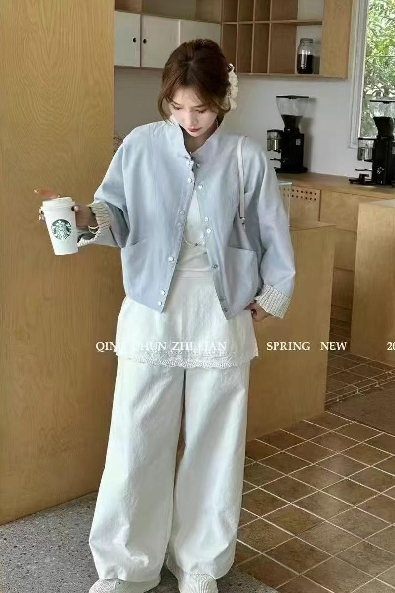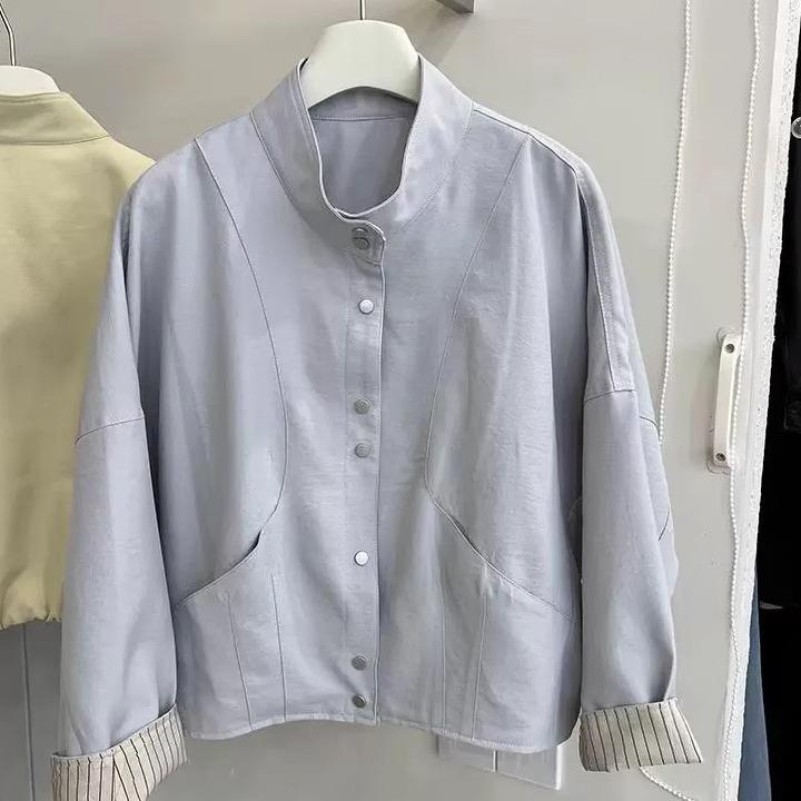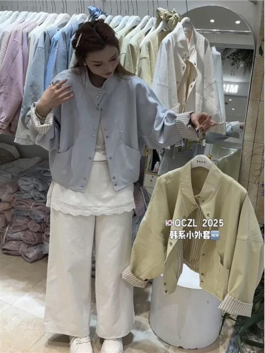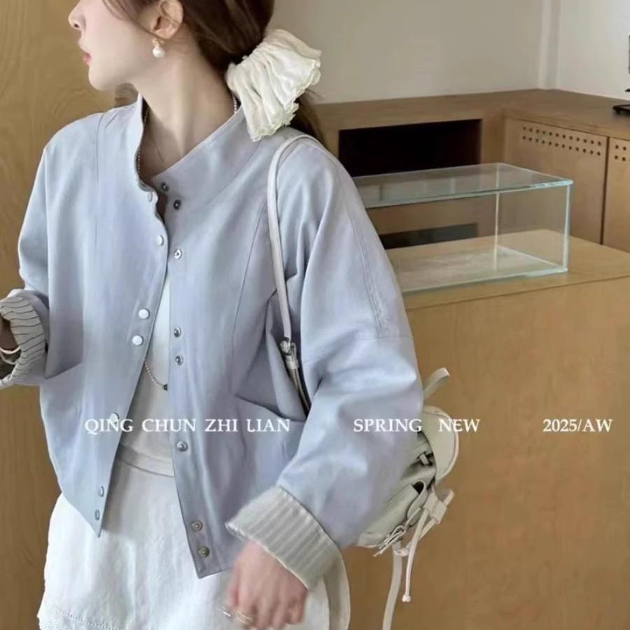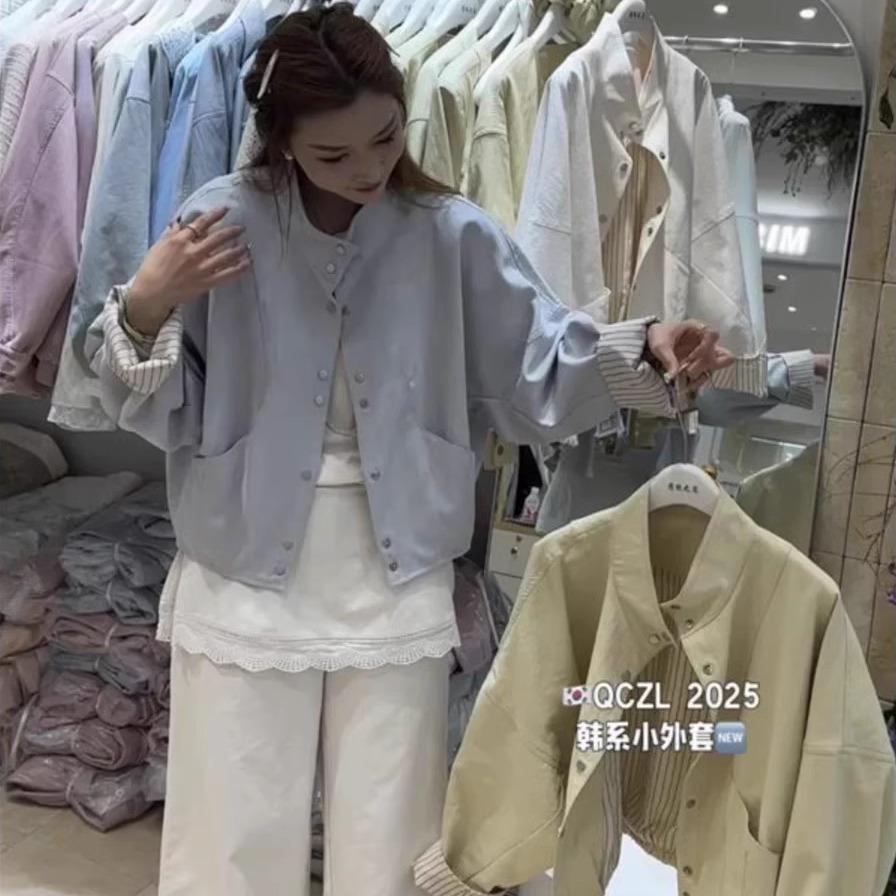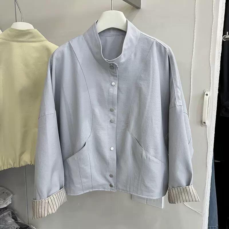 Coreano "sentido del diseño puños cosidos cuello a rayas uniforme de béisbol abrigo corto de mujer 2025 primavera nuevo abrigo
