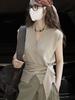 Chaleco largo de cuello cuadrado para mujer, nuevo estilo, combina con todo, color liso, estilo coreano, reductor de edad con almohadilla para el pecho para uso exterior.