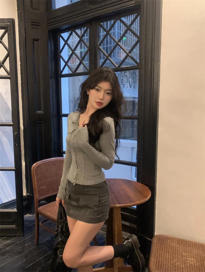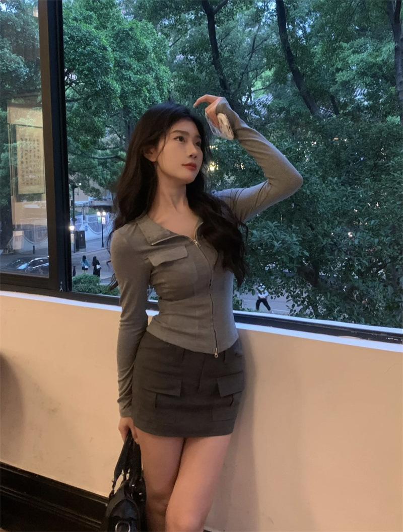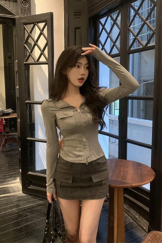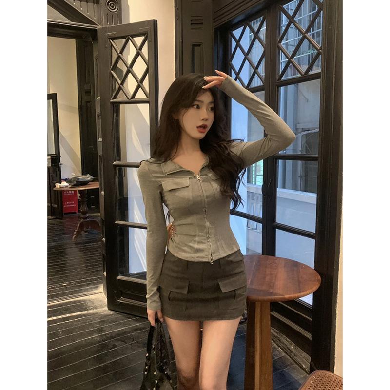 Camiseta de manga larga ajustada y elegante con cremallera para chicas calientes, otoño 2024, nuevo estilo, combina con todo, moda sexy, puro deseo.