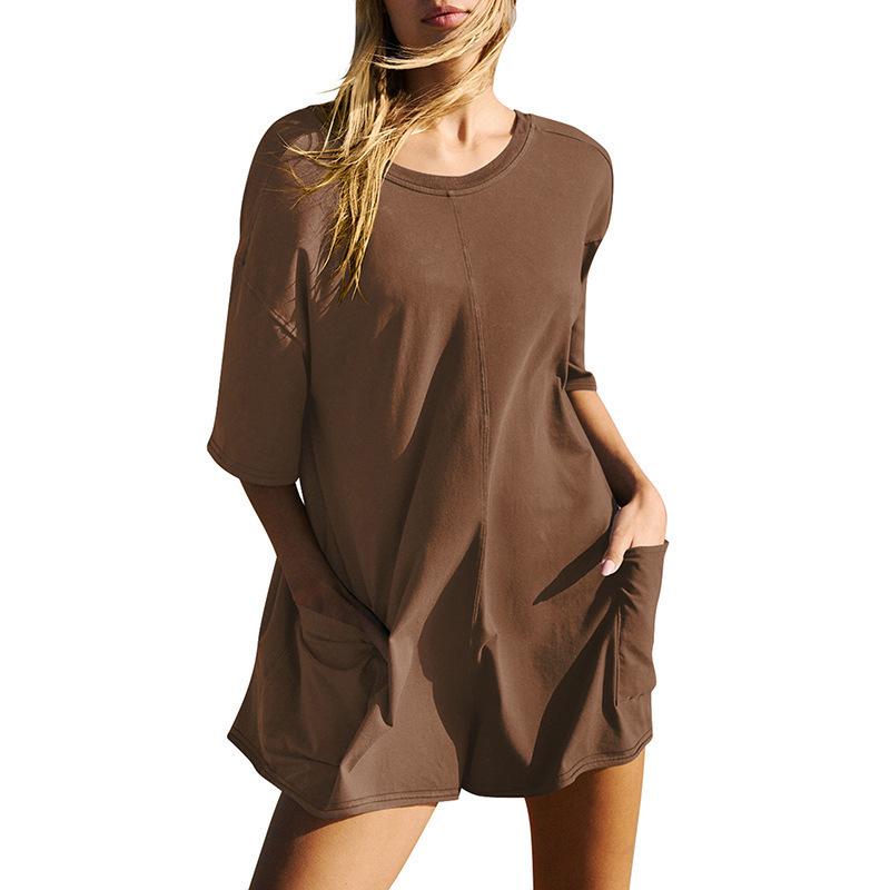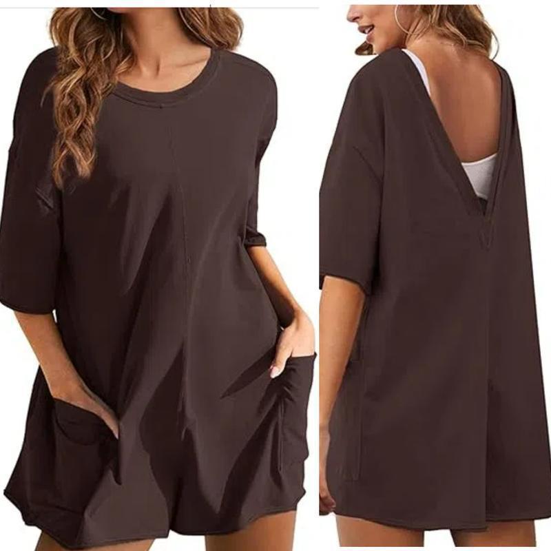 Mono holgado informal con bolsillo, cuello en V, espalda descubierta y manga corta para mujer europea y americana, verano 2024, nuevo de Amazon