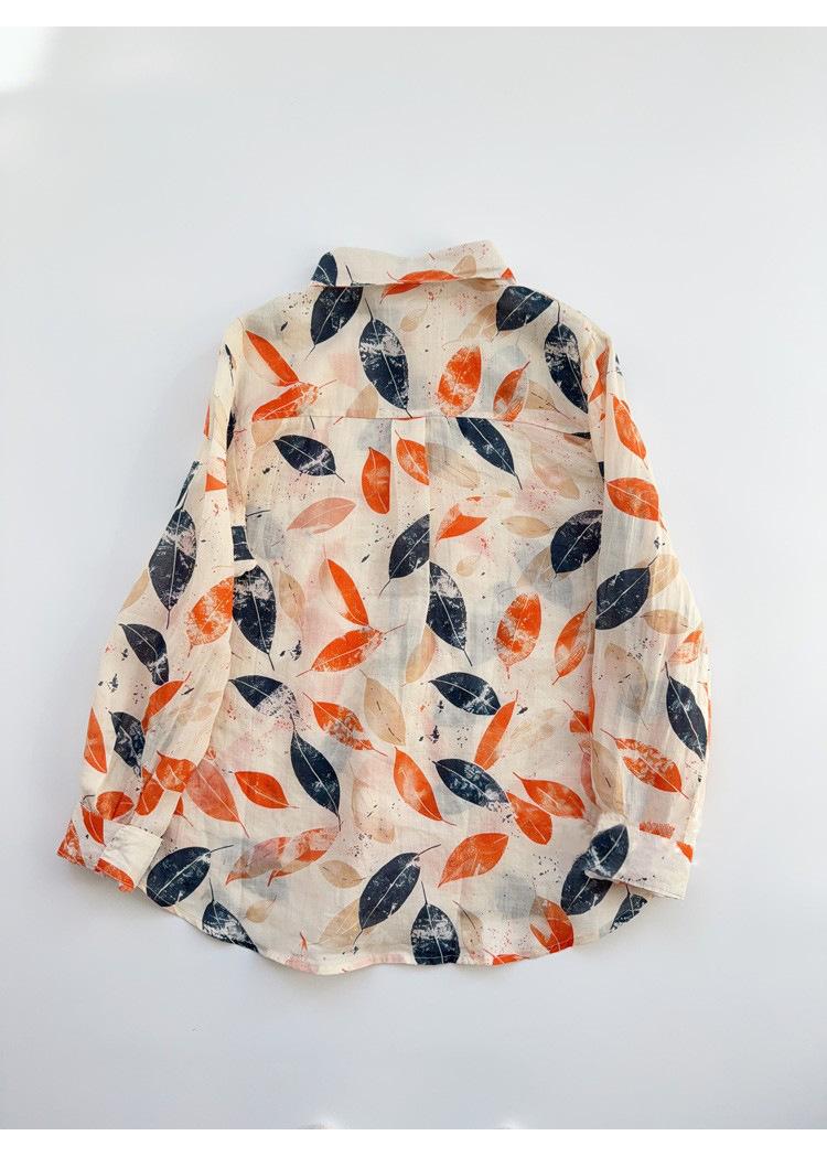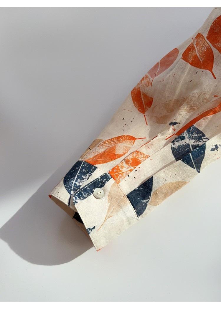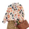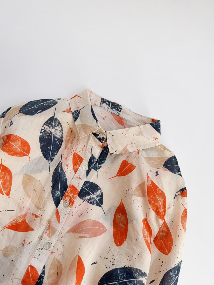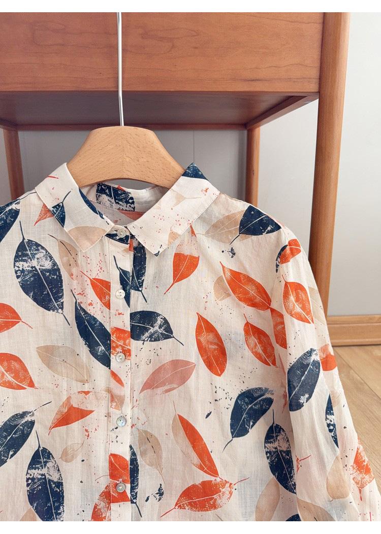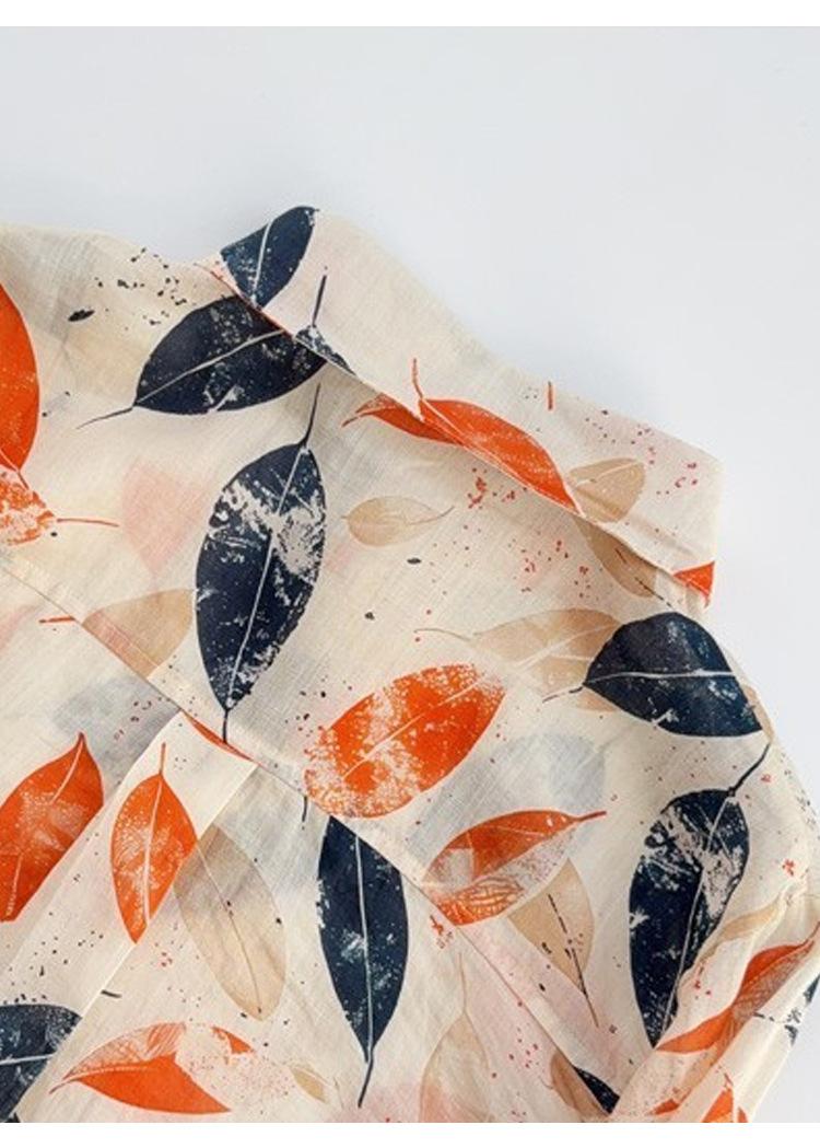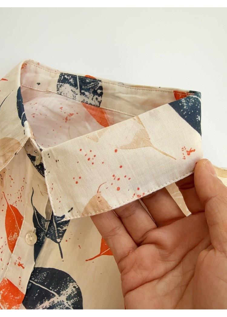 En stock 2025 Camisa Estampada de Hojas Estilo Francés Pequeña de Alta Calidad Combinable Delgada Floral Top de Verano para Mujer
