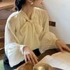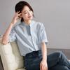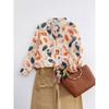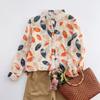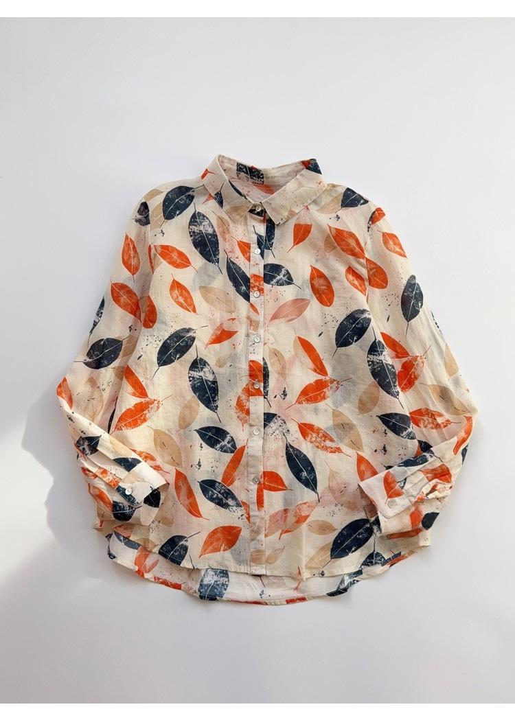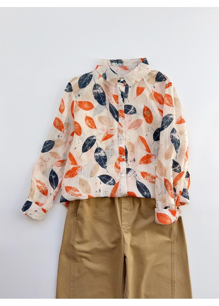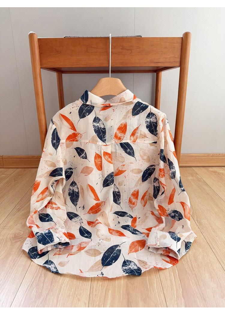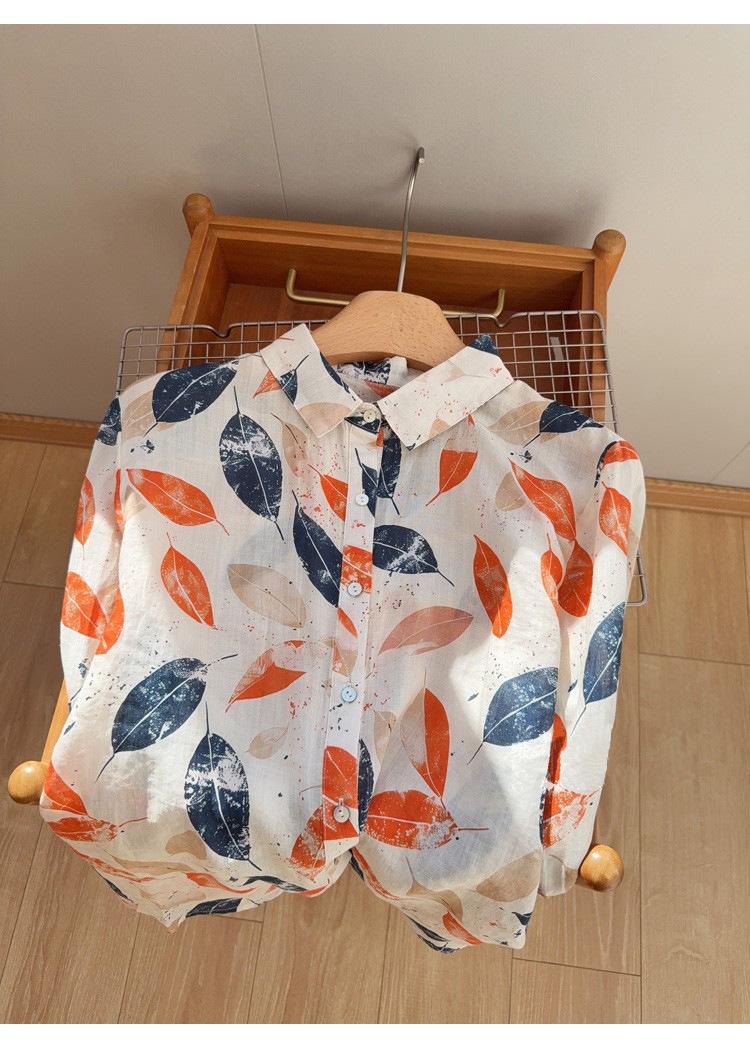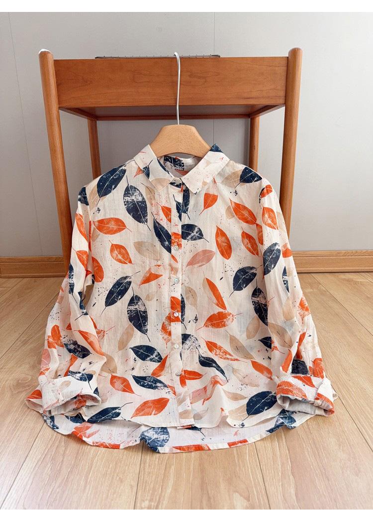 En stock 2025 Camisa Estampada de Hojas Estilo Francés Pequeña de Alta Calidad Combinable Delgada Floral Top de Verano para Mujer